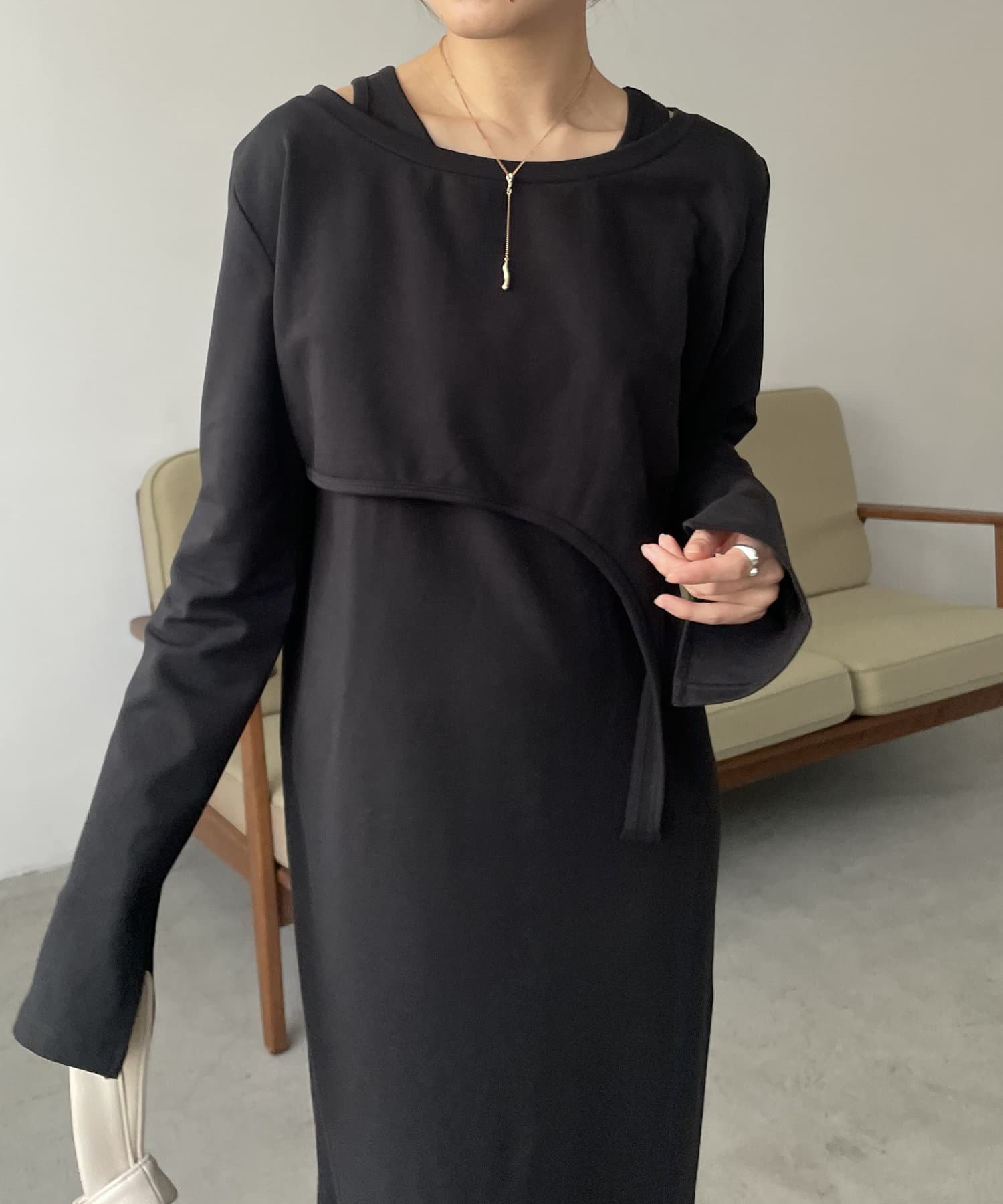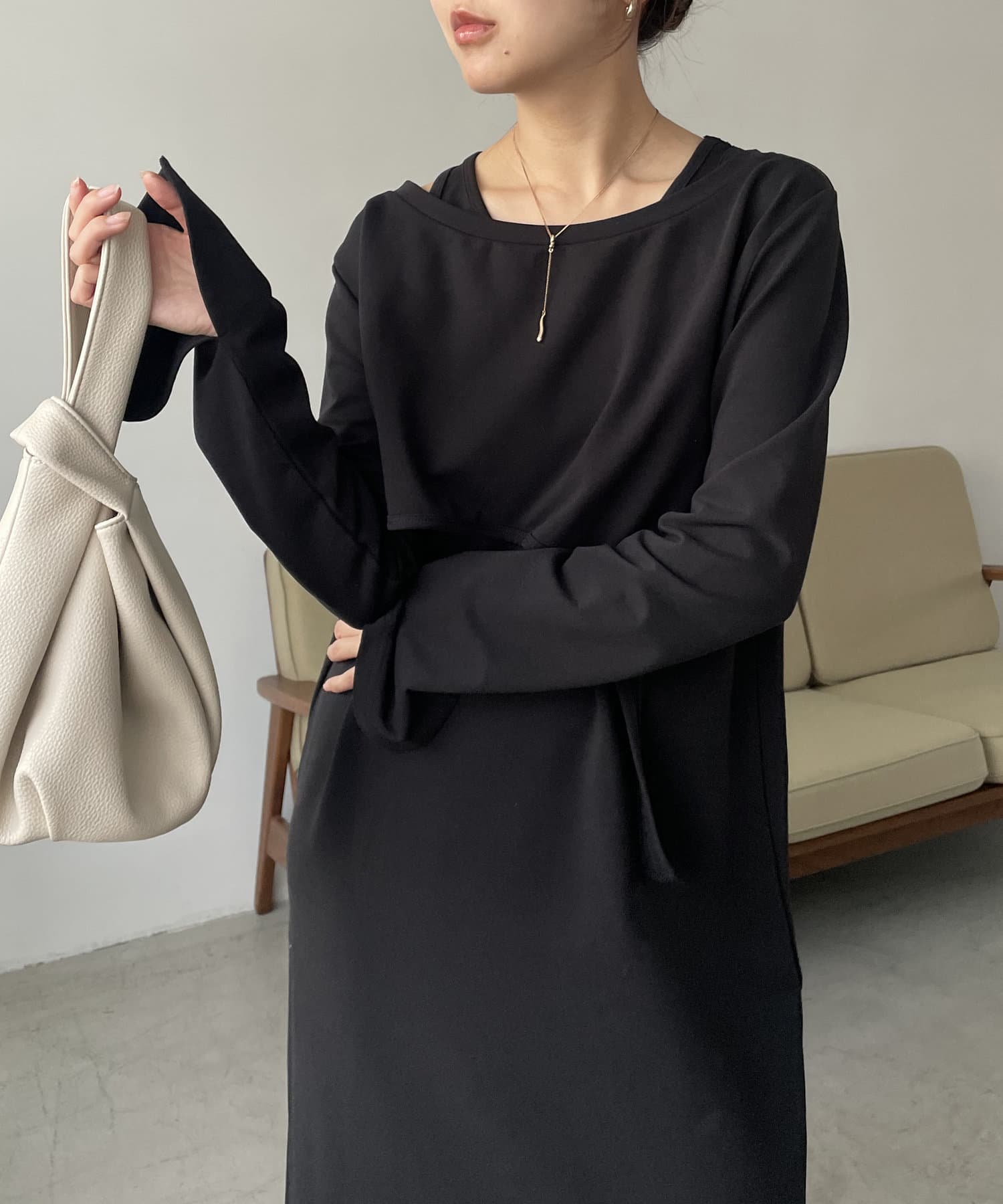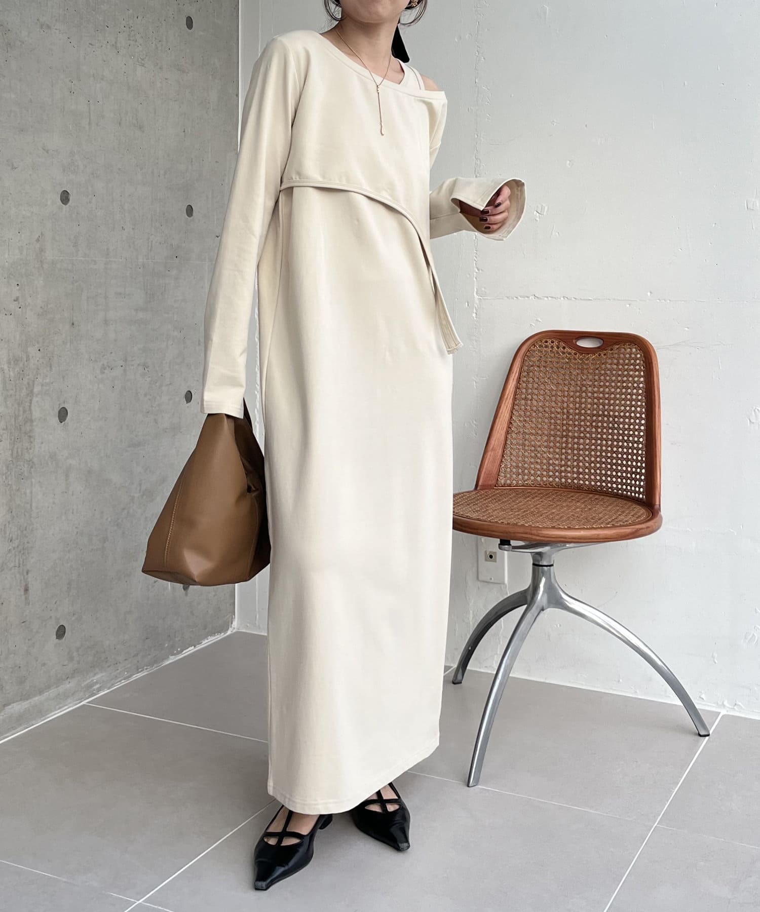 【低身長サイズあり】ライトスウェットアシメレイヤードワンピース