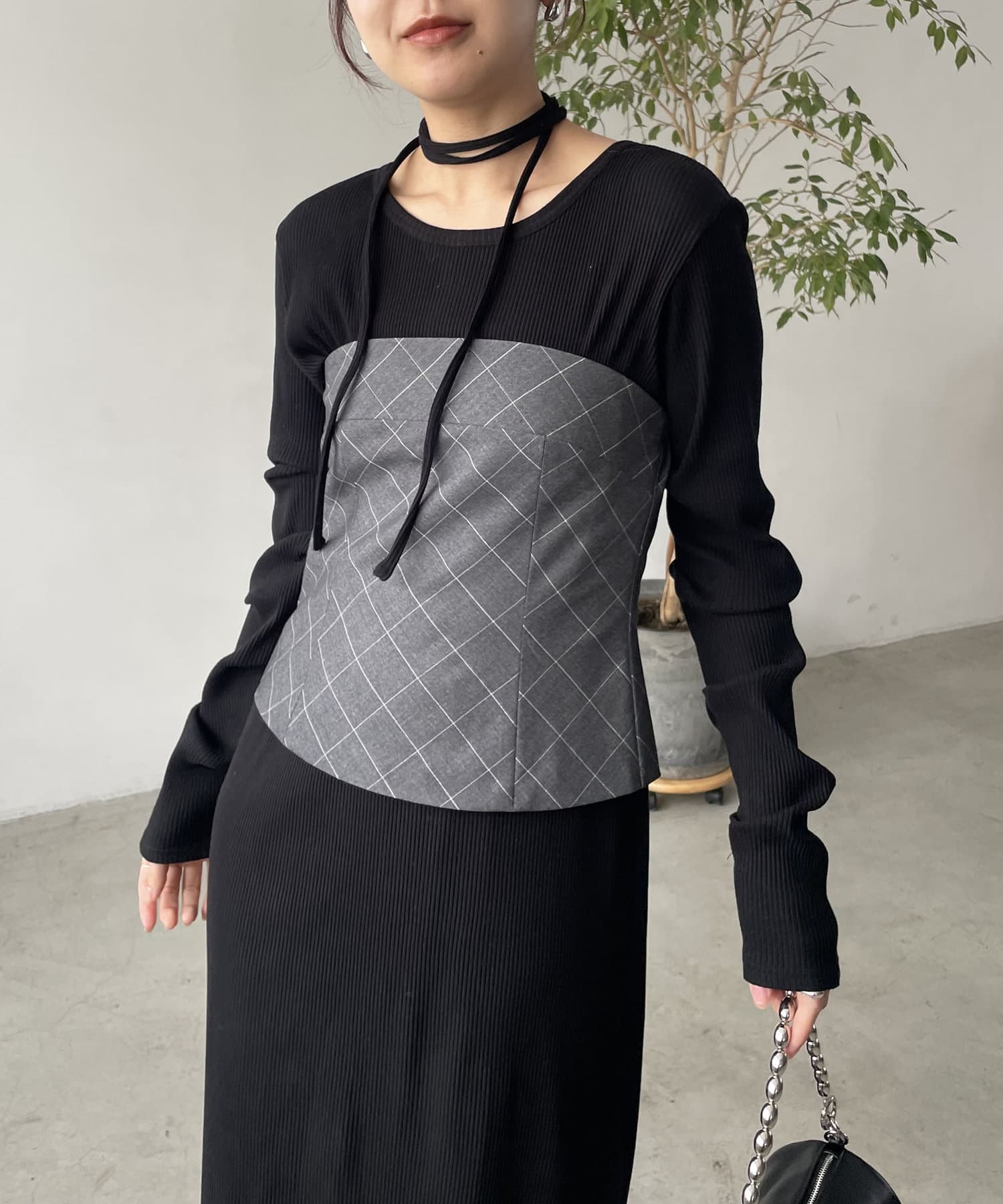 【グレー着用アイテム①】チョーカーSETリブワンピース