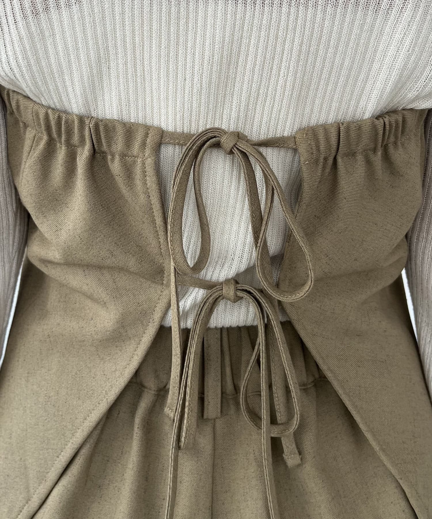 いつもの服装に1枚足すだけでおしゃれに見える!サイズ調整は紐でできるのでどの方でも合わせられる!が、ずり落ちてしまうので安全ピンで留めてます!笑