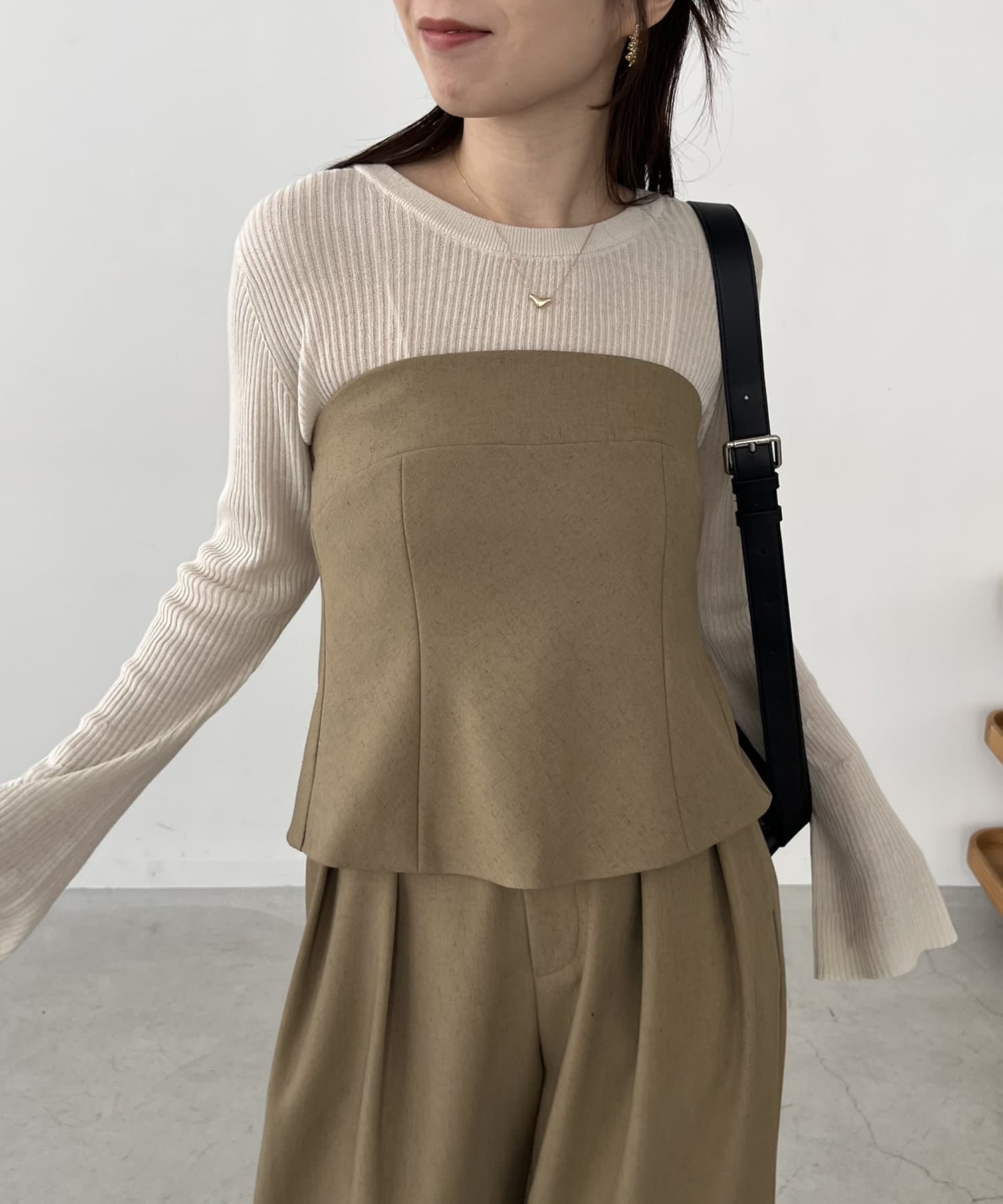 【ベージュ着用アイテム】WAVEビスチェSETニット