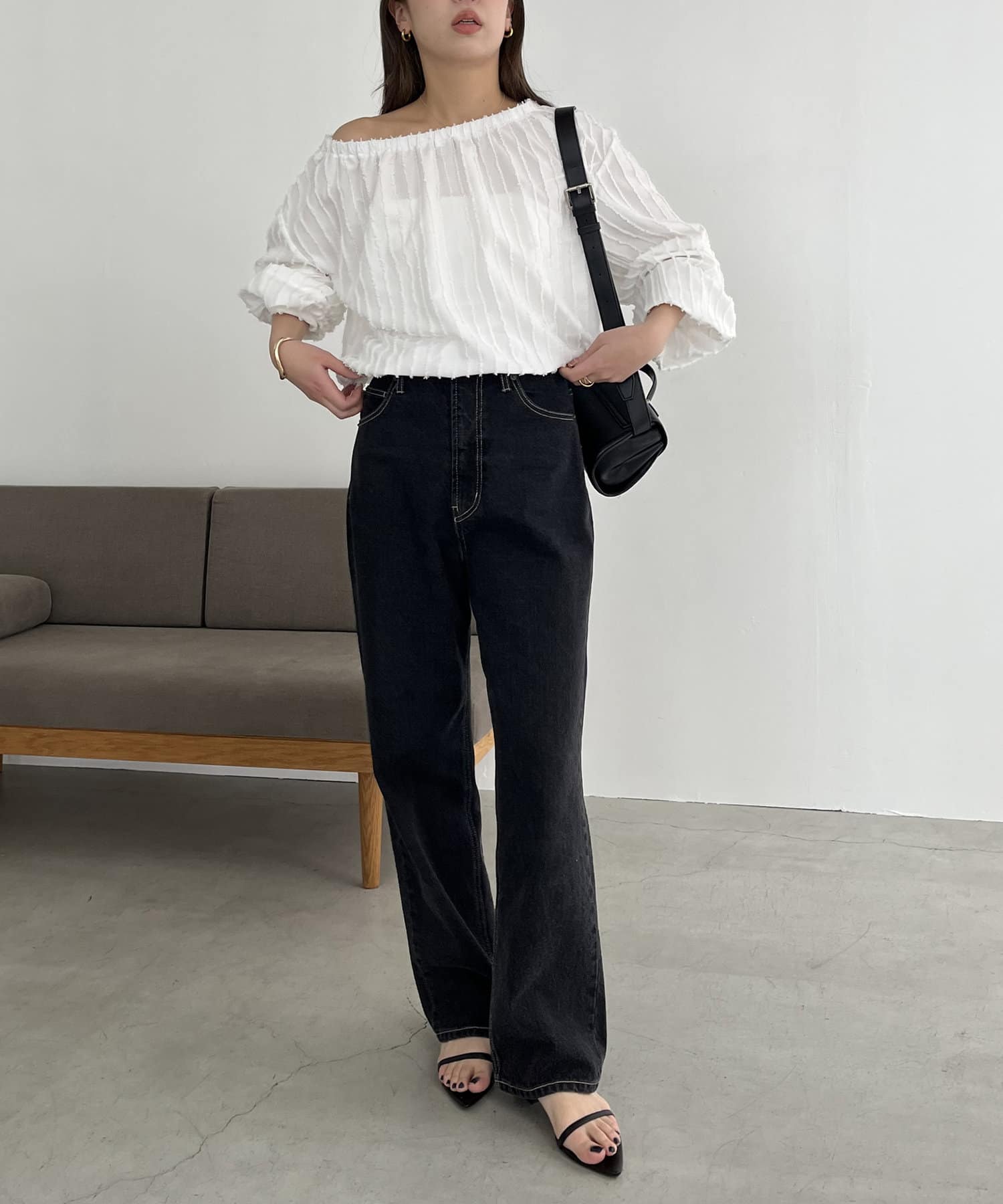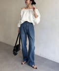 【ホワイト着用アイテム②】13ozハイウエストストレートデニム