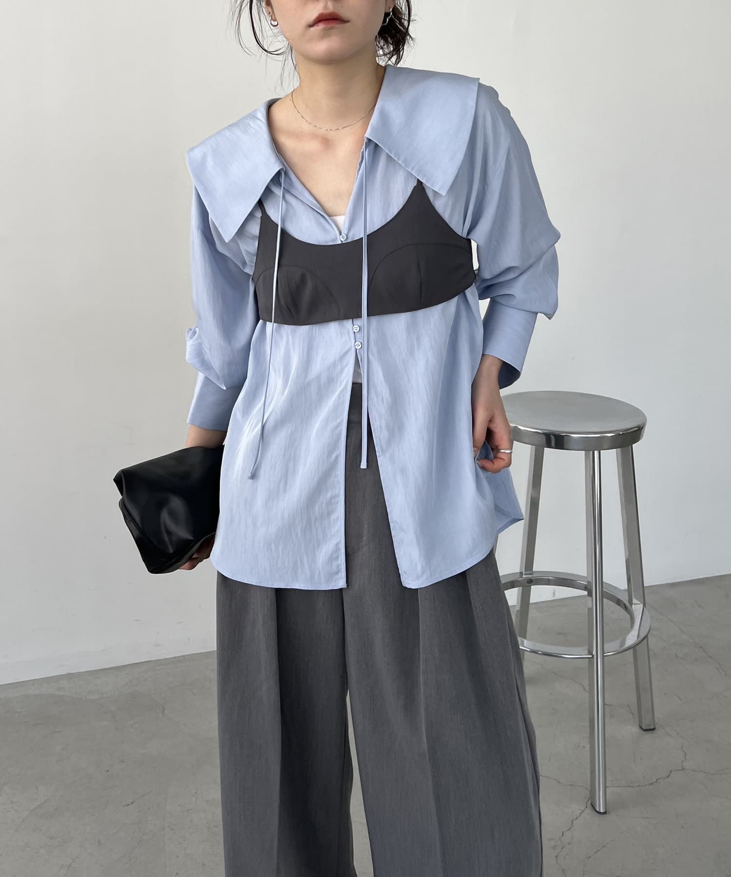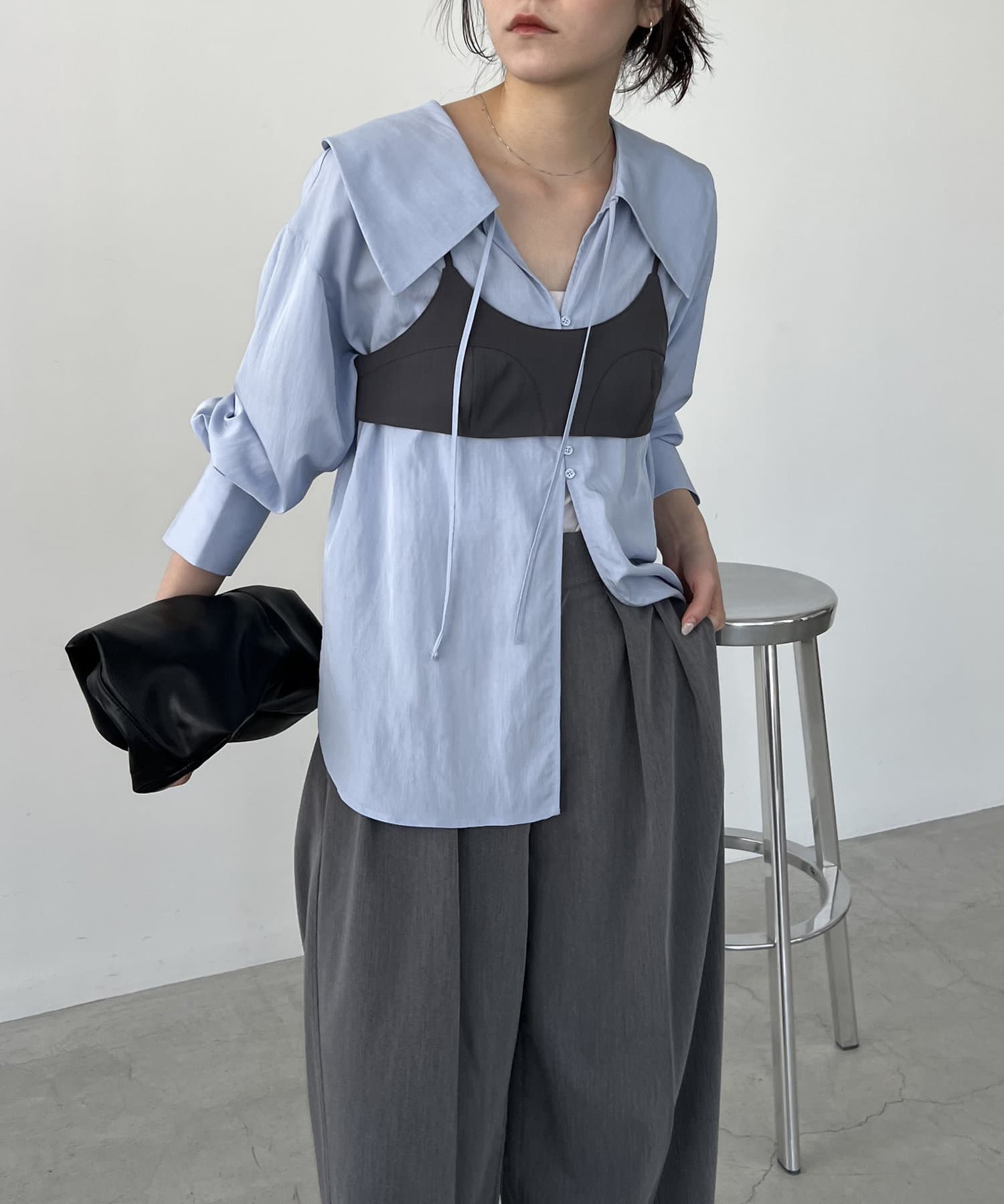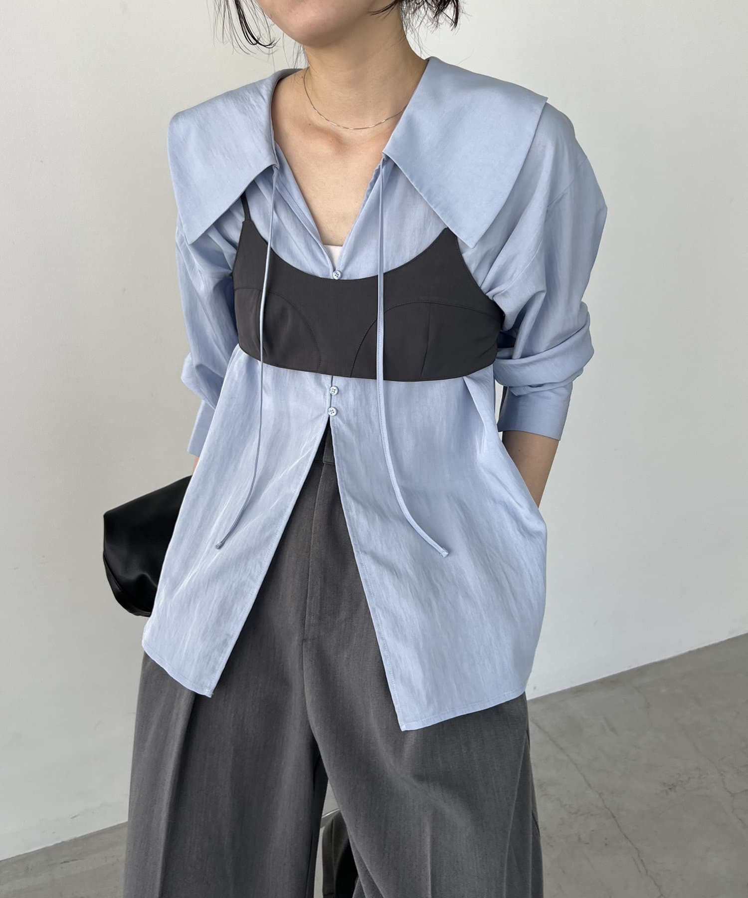 【セットアイテム】ビスチェ付BIG襟シャツ