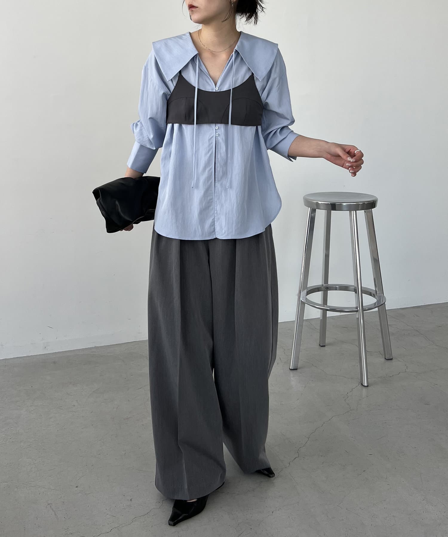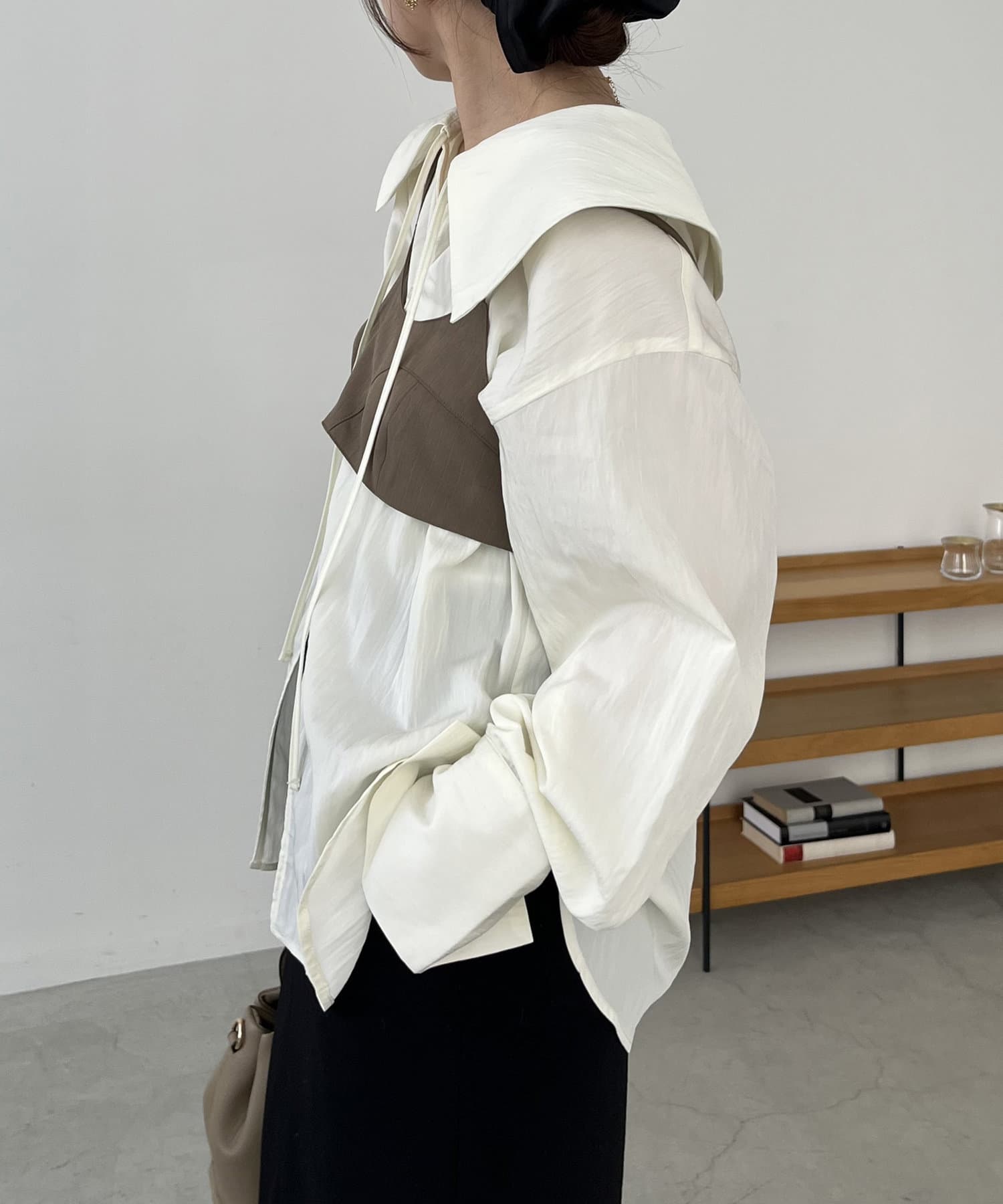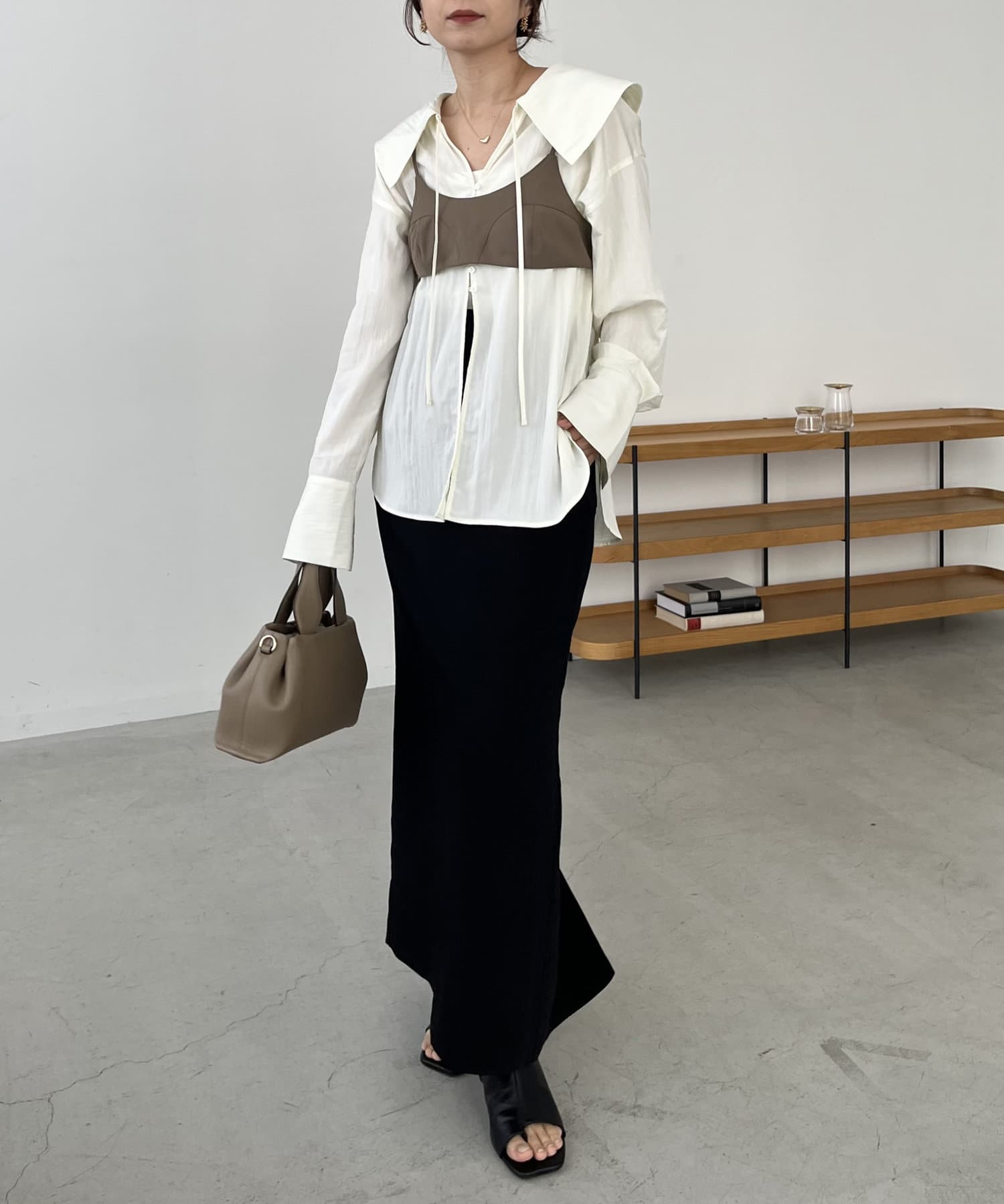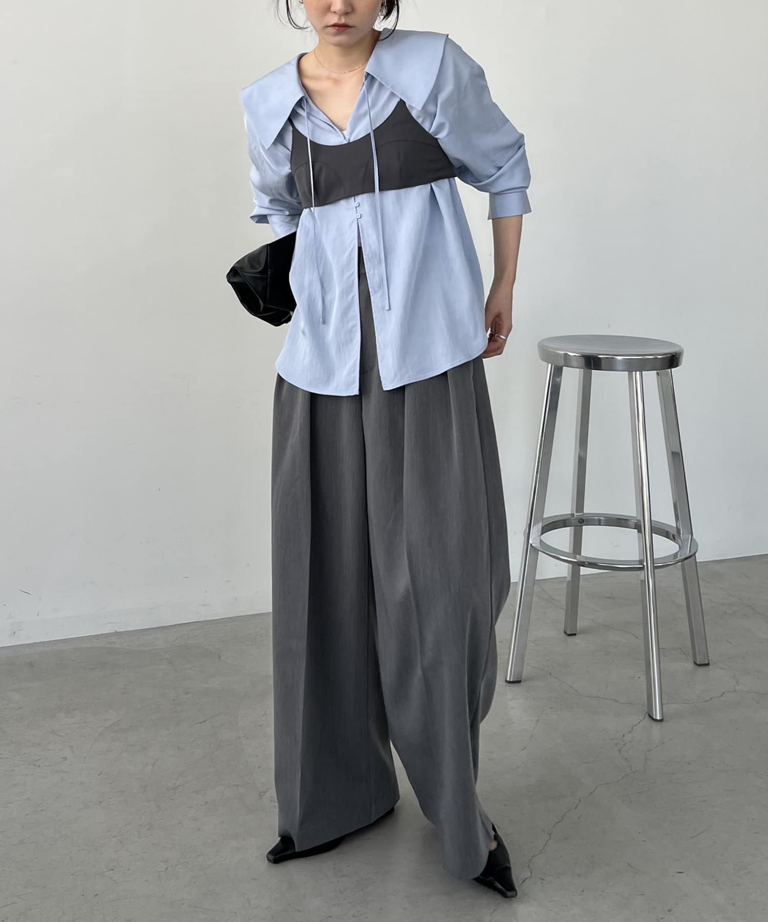 【セットアイテム】ビスチェ付BIG襟シャツ