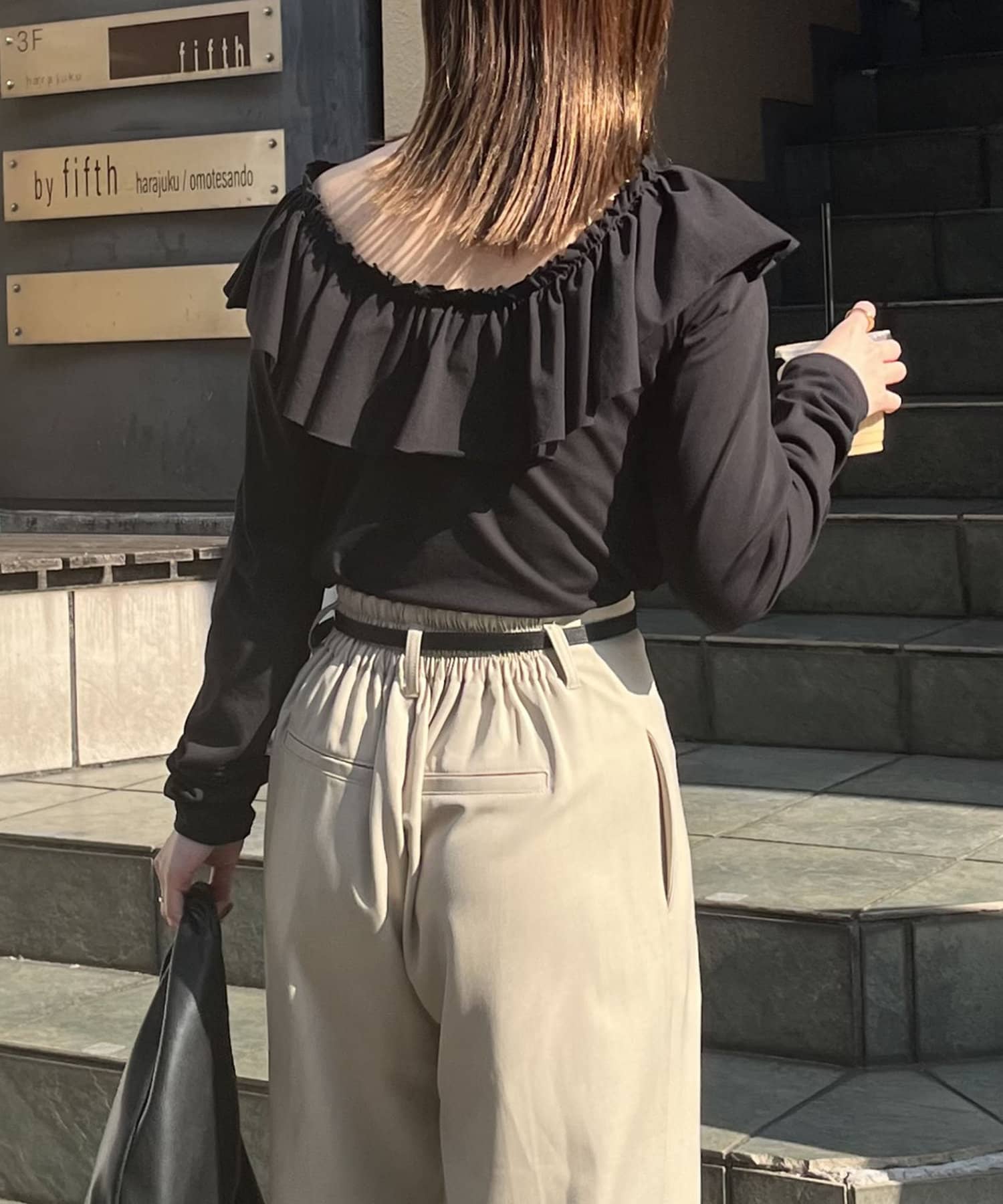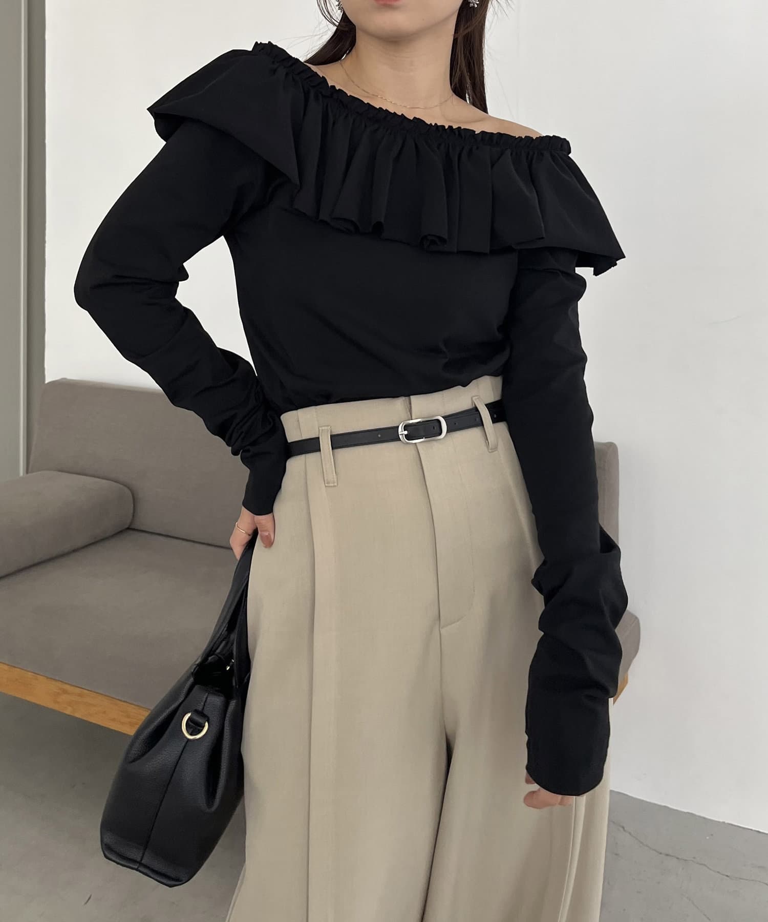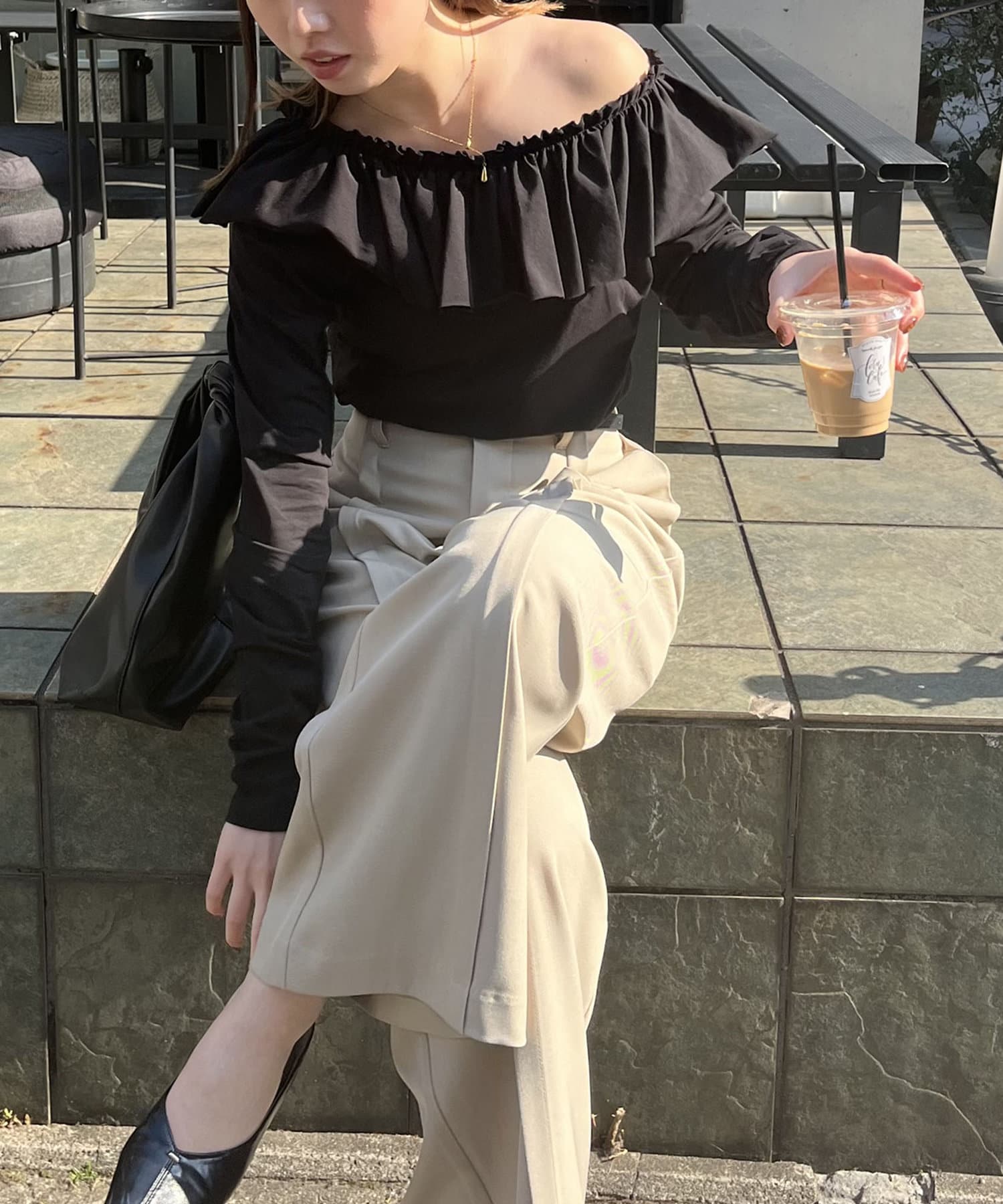 ・ワイドパンツ合わせで甘すぎない大人コーデに