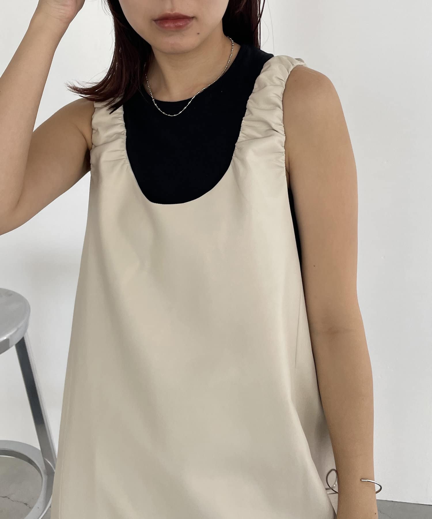 ・ラムレザーのような柔らかな質感の合皮を使用したミニドレス