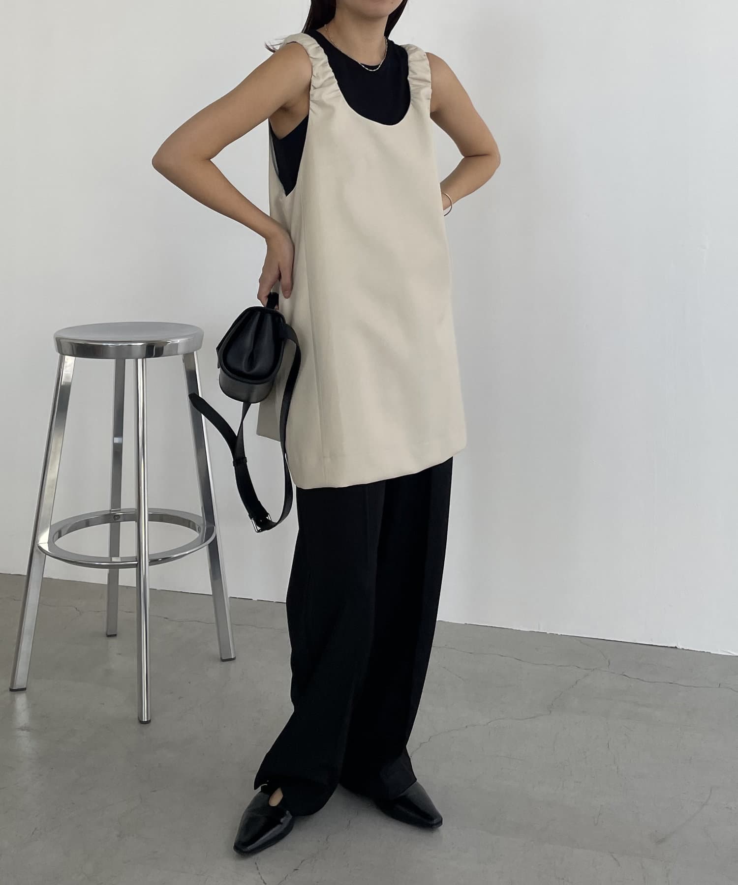 ・短めの丈でチュニックアイテムとしてレイヤードしていただくスタイリングがおすすめ