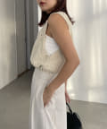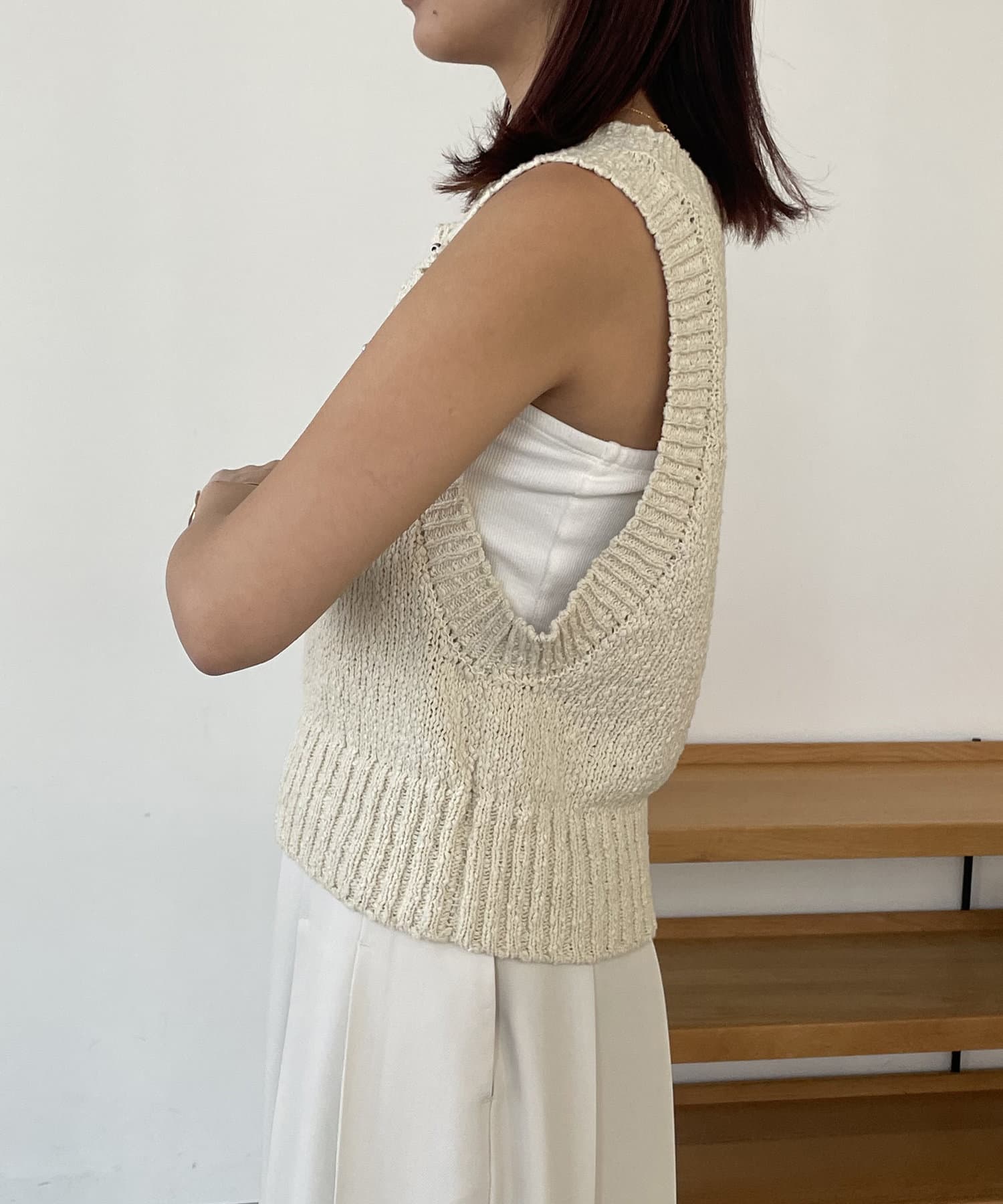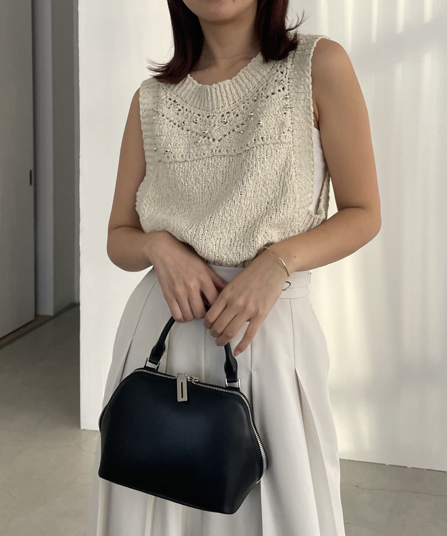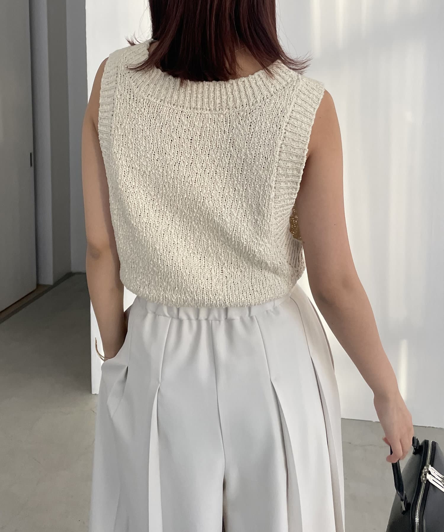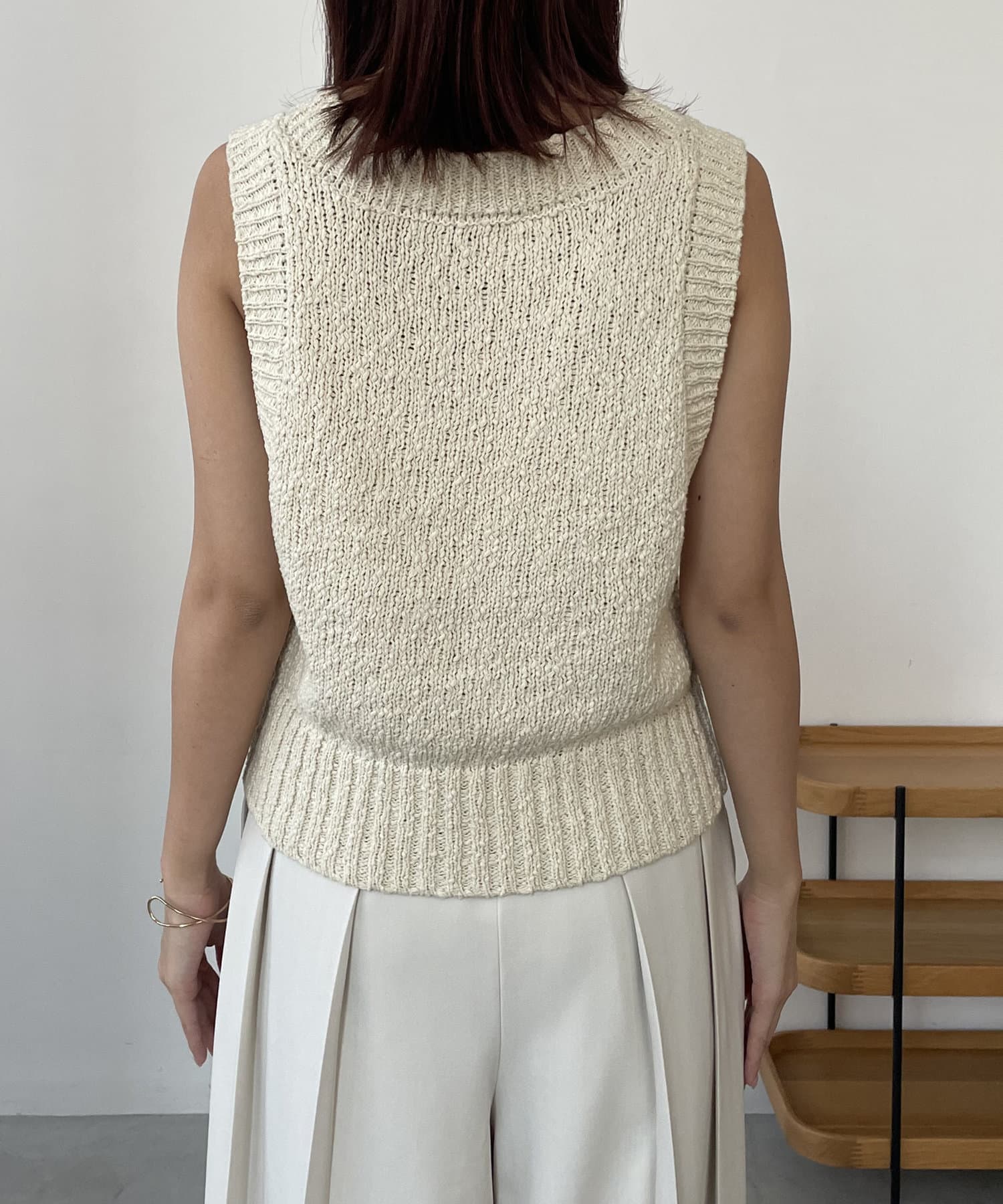 ・シルバーのメタルビーズを散らばせ、遊び心を加えたニットベスト