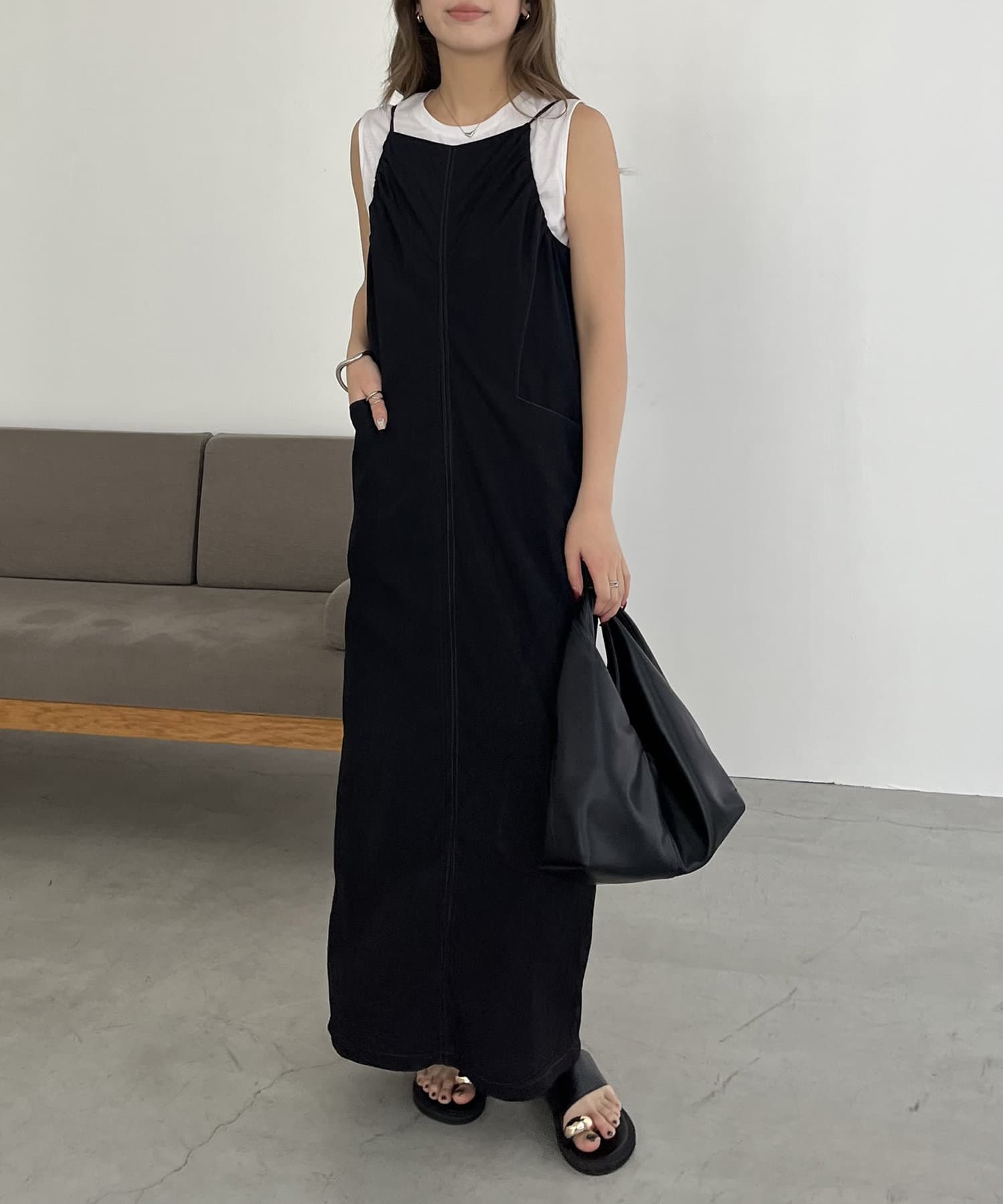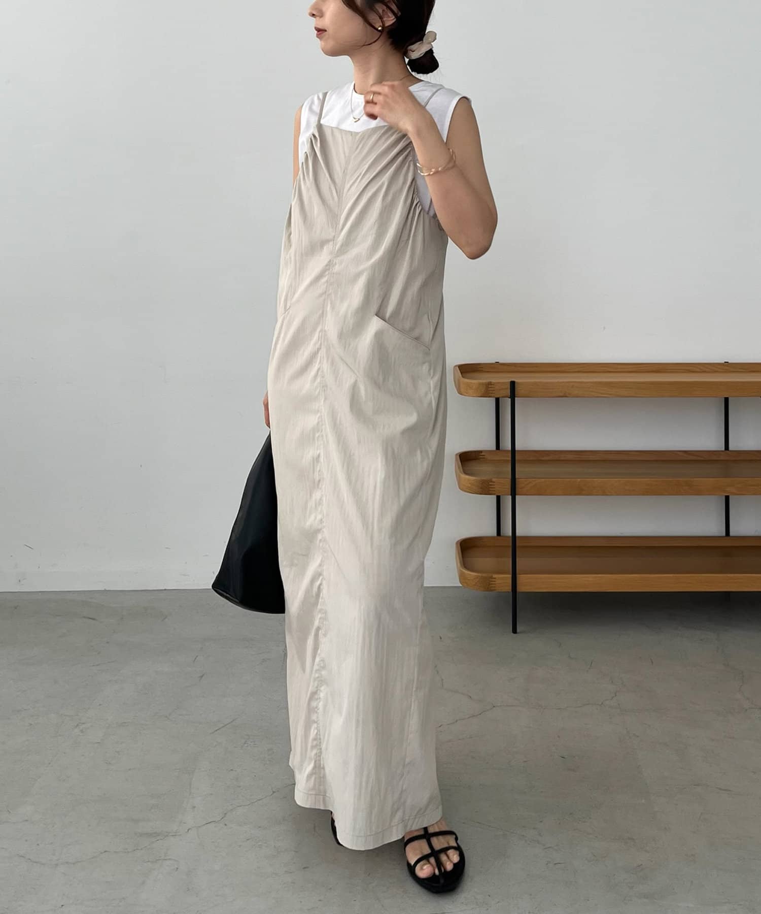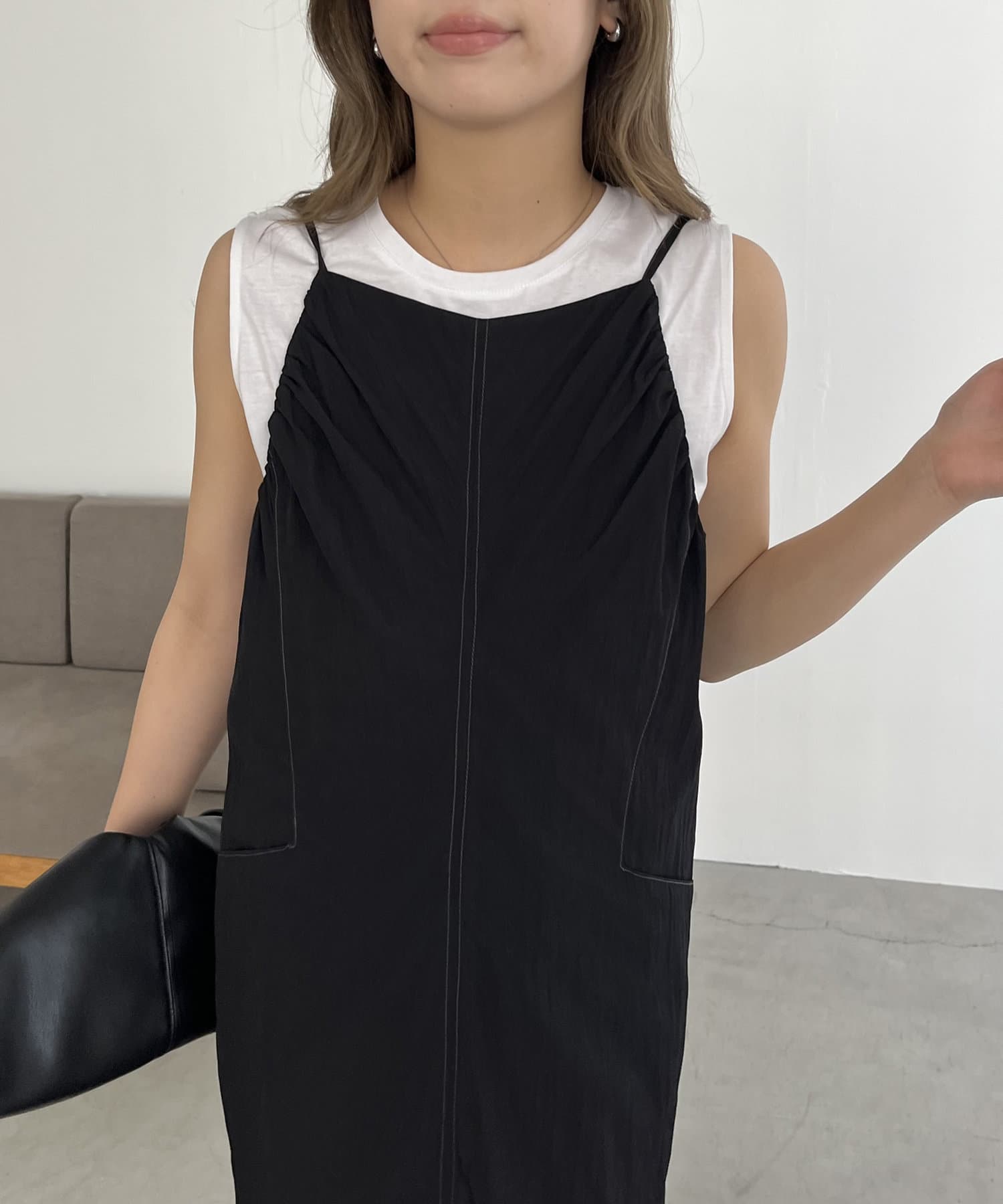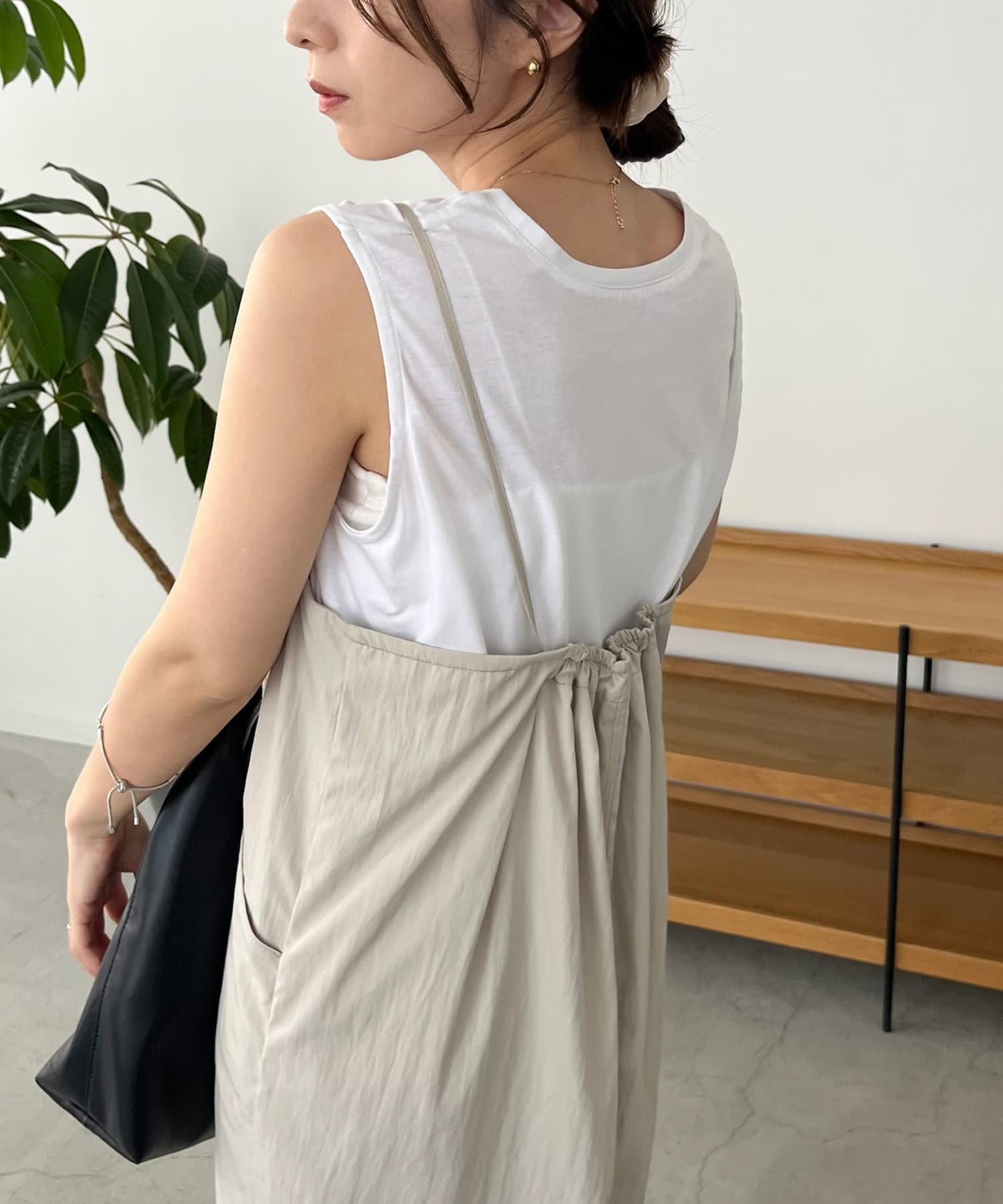 ・表面感のある素材で大人カジュアルに着られるキャミワンピース