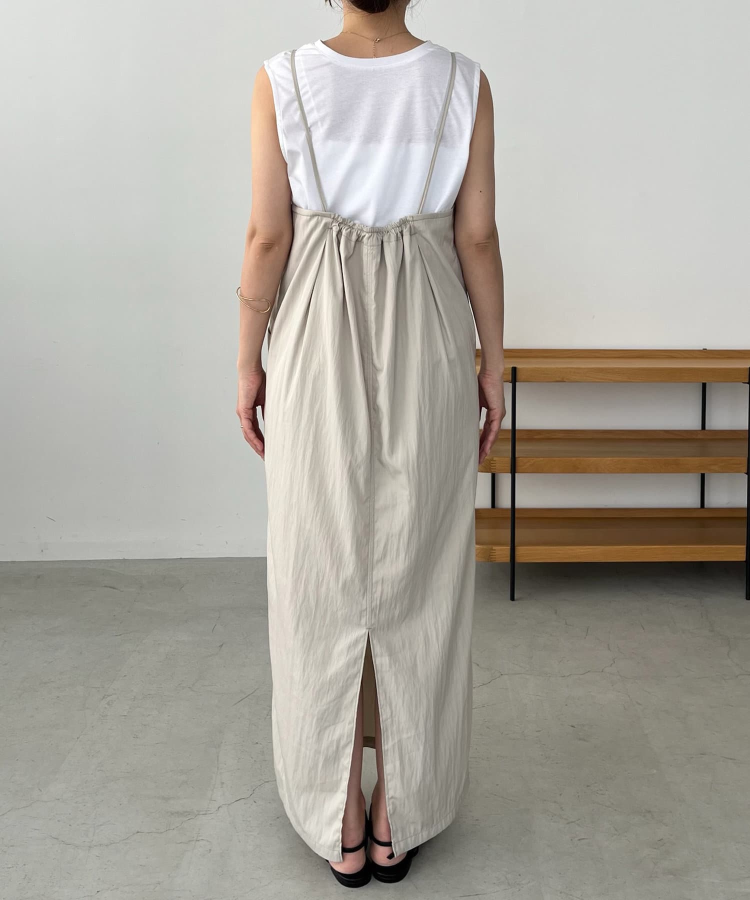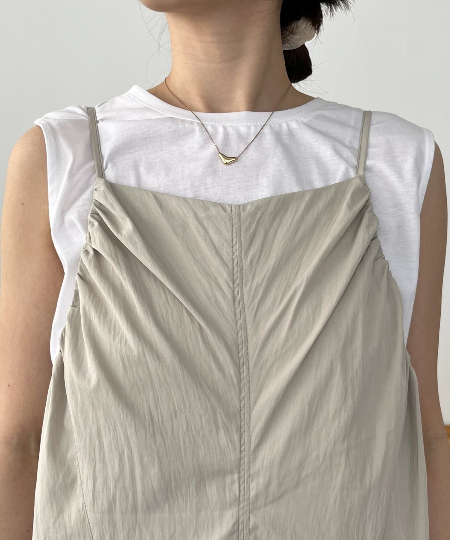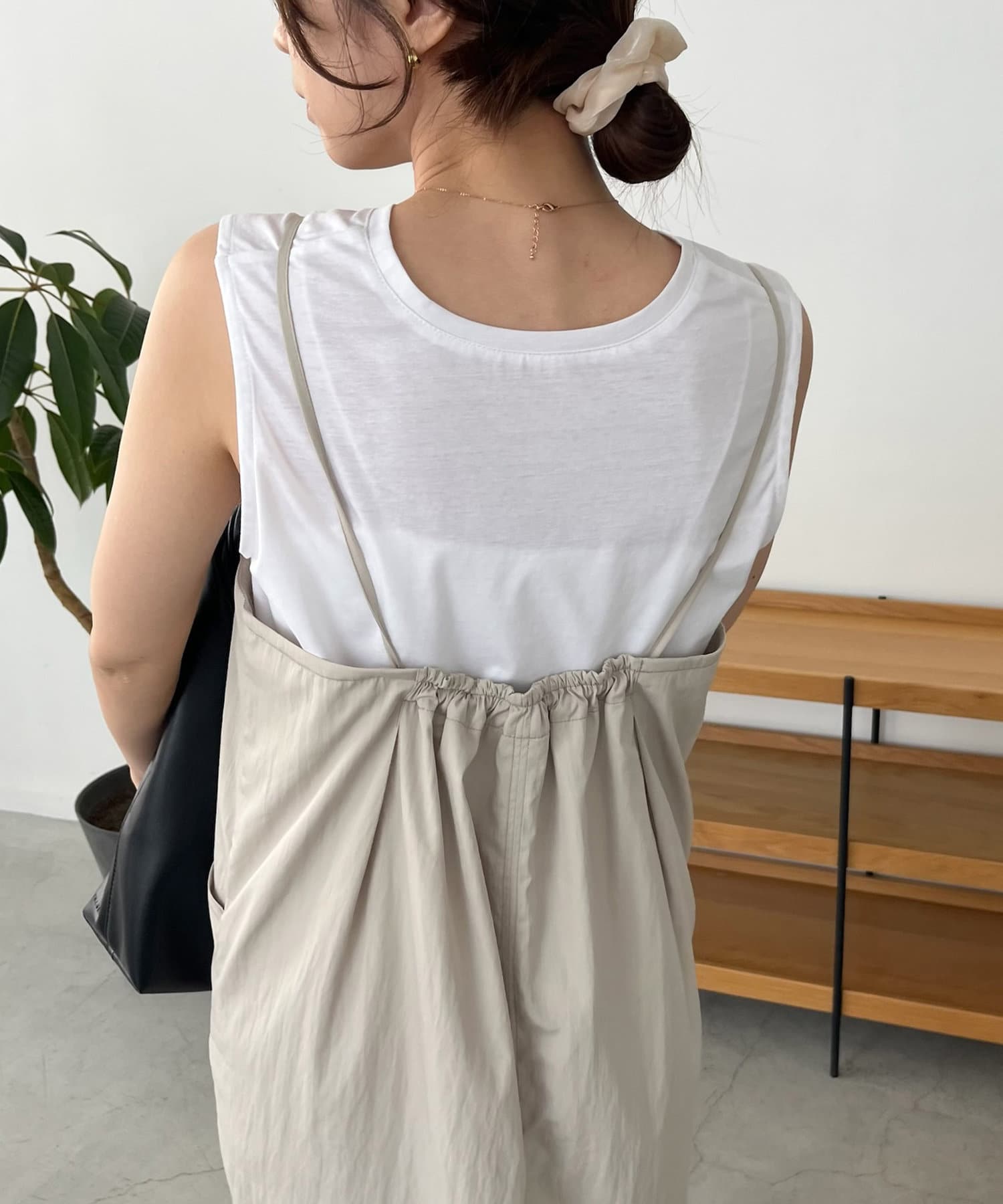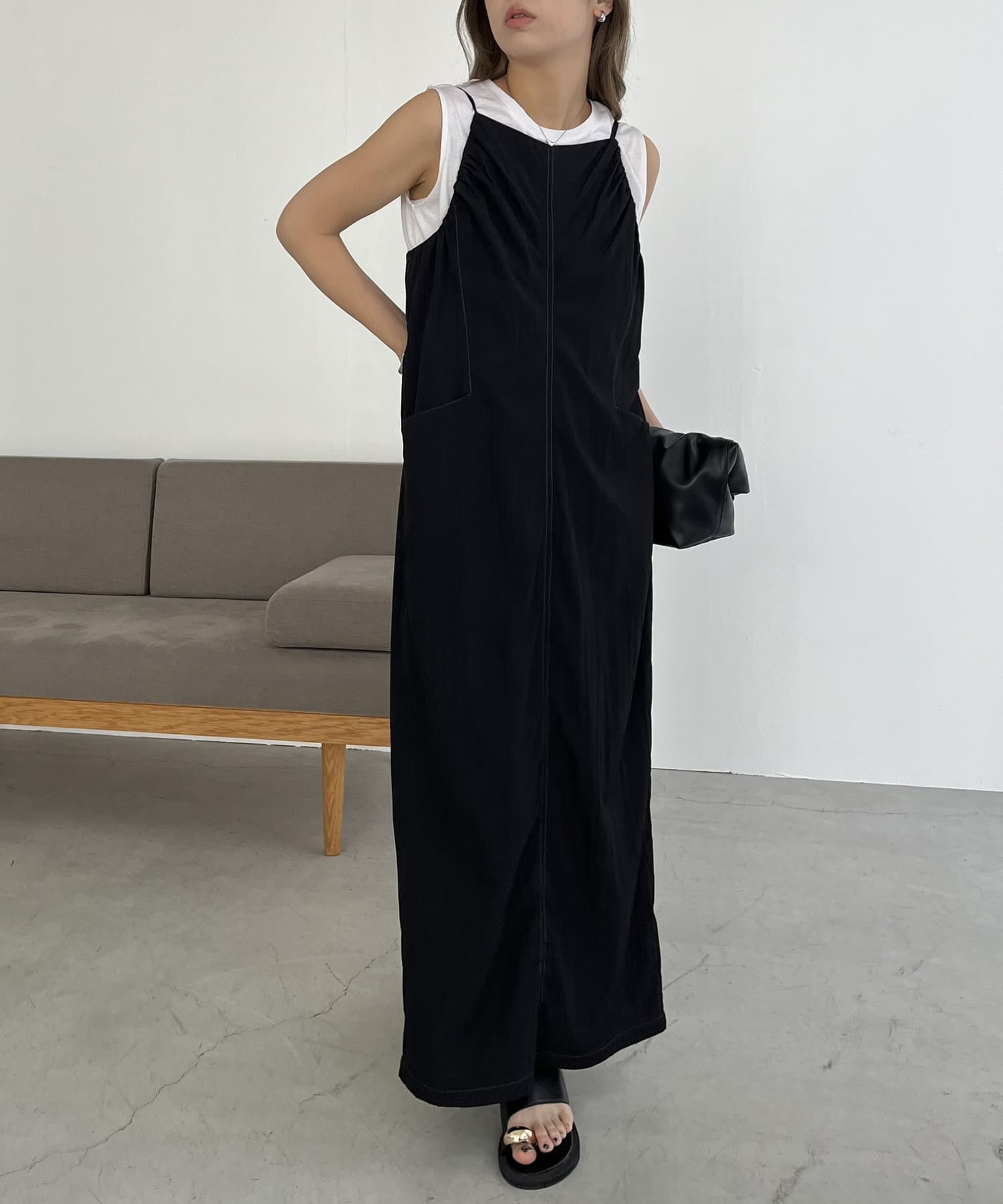 ・表面感のある素材で大人カジュアルに着られるキャミワンピース