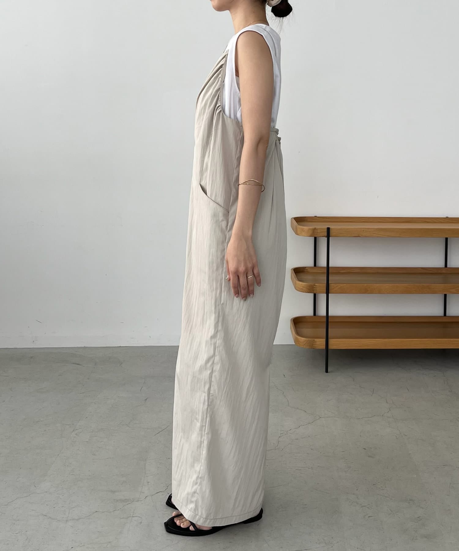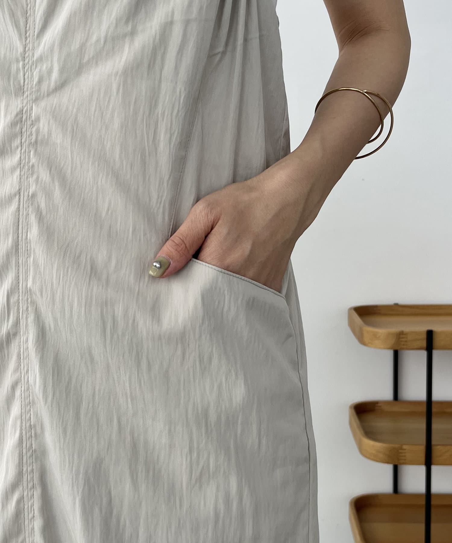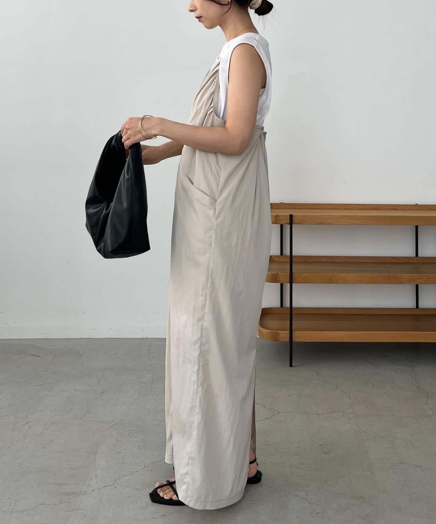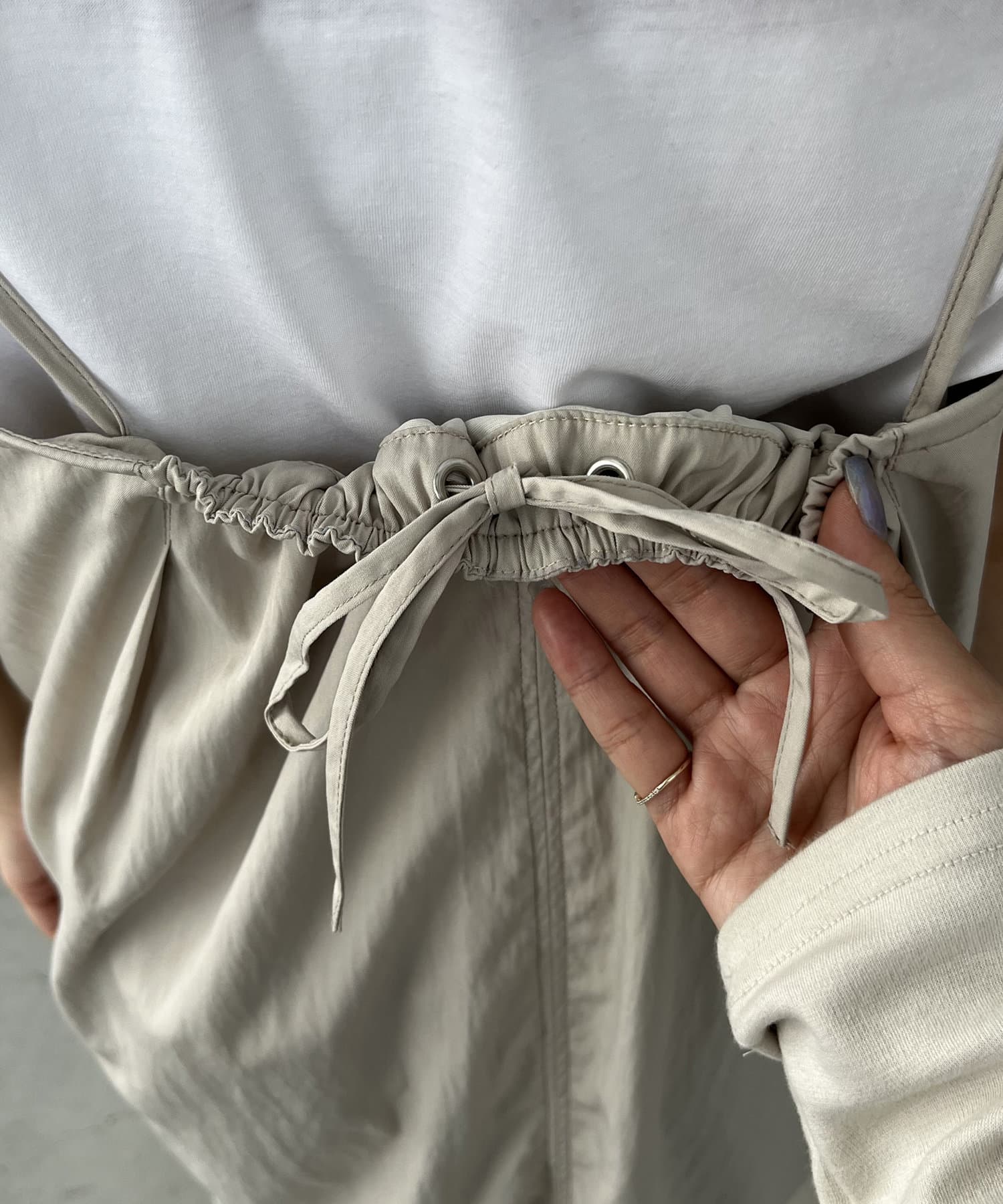 ・表面感のある素材で大人カジュアルに着られるキャミワンピース