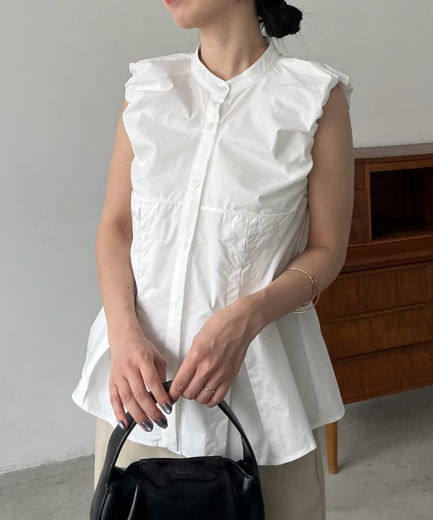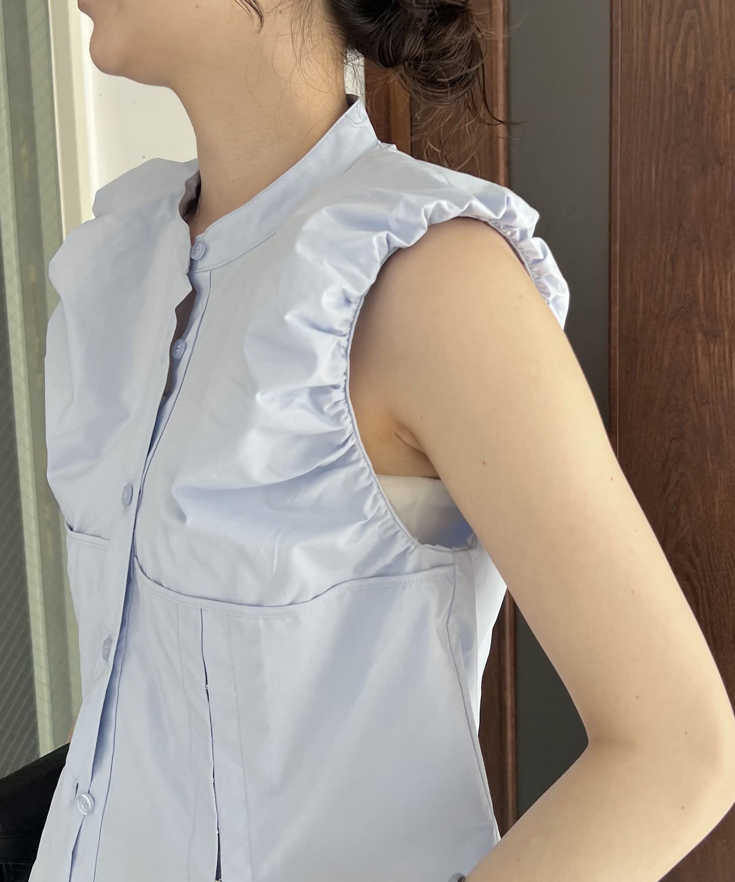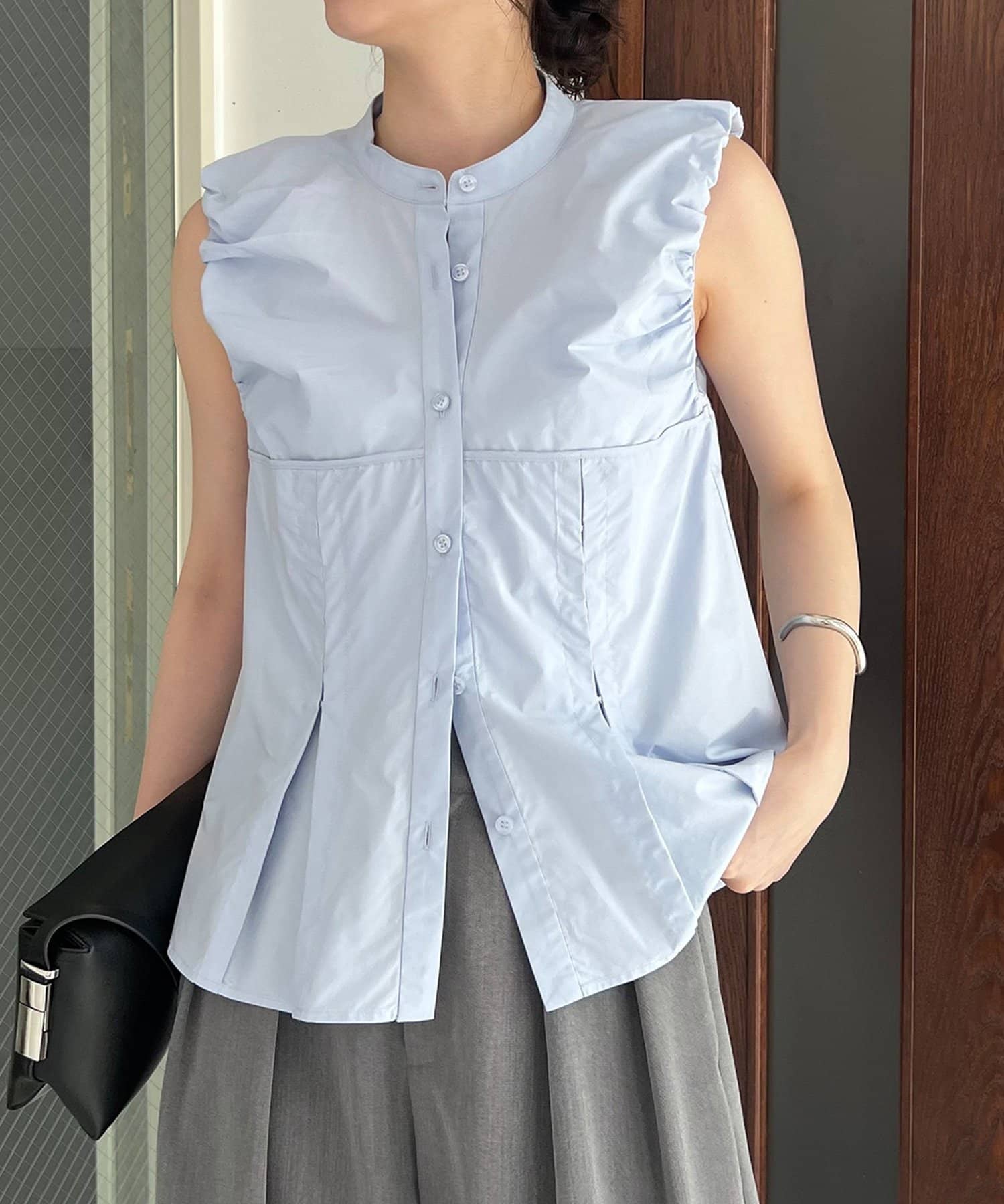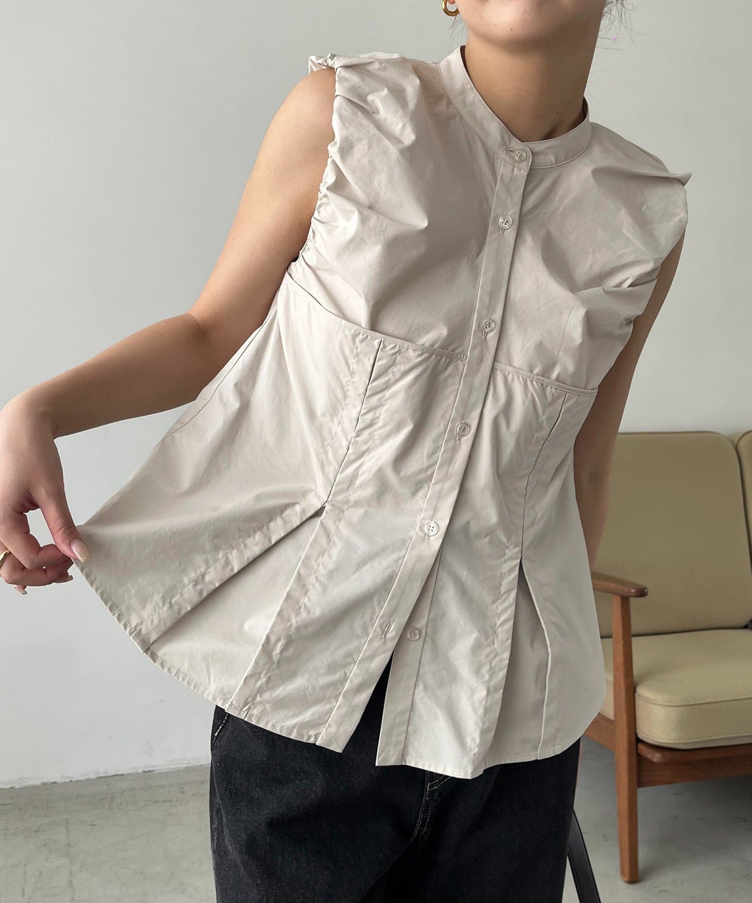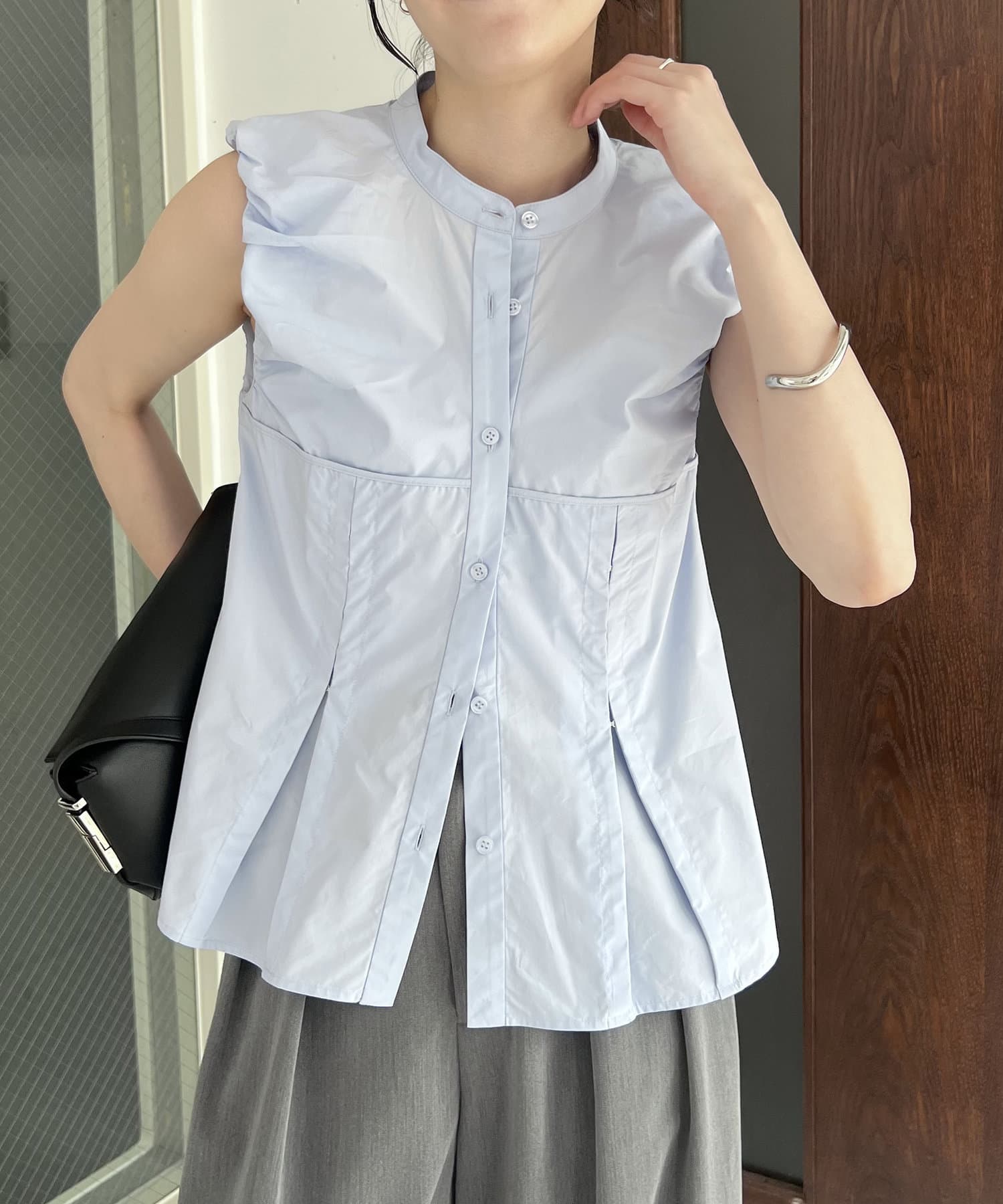 ・パフっとした袖口がポイントのノースリシャツ