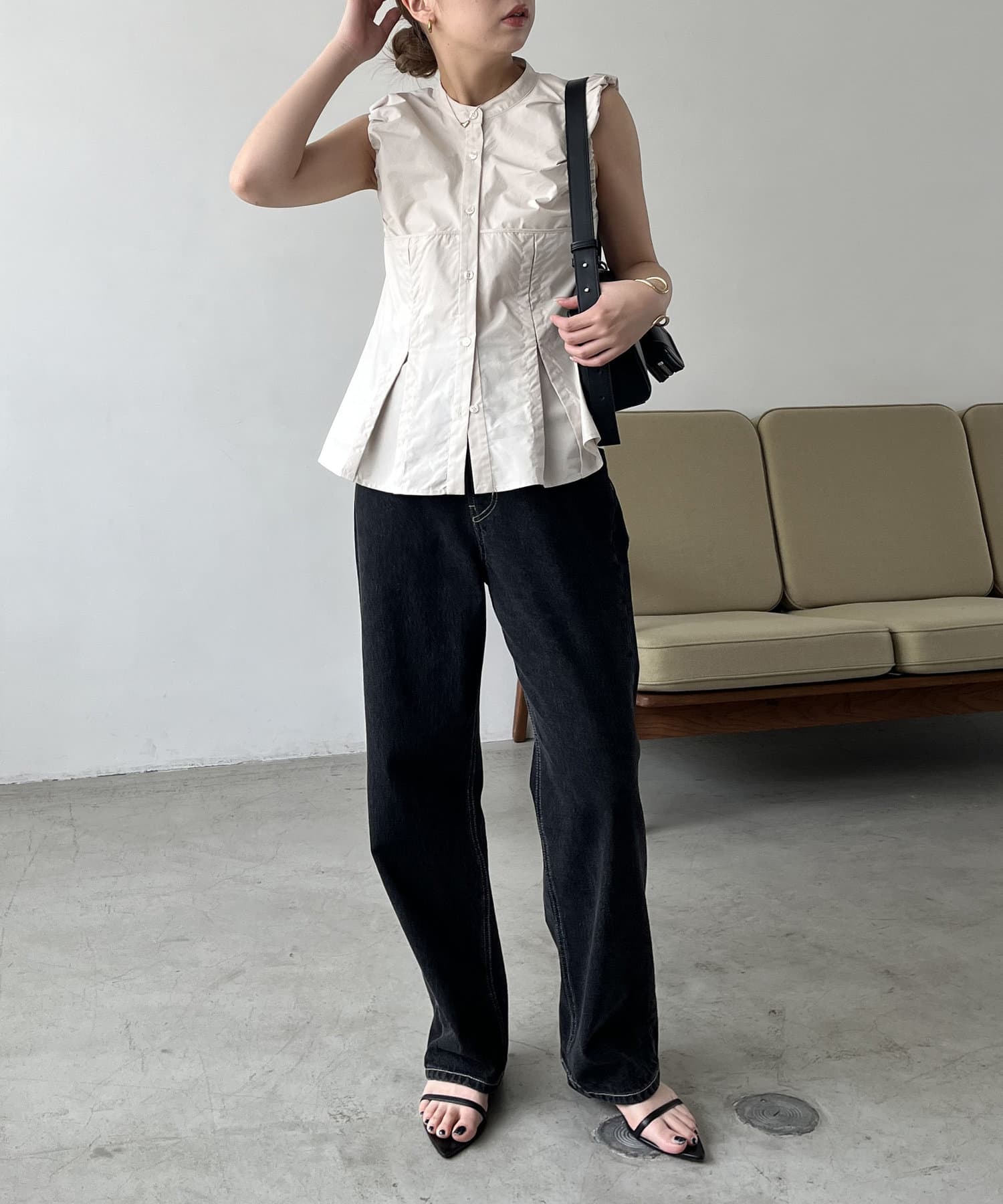 【ベージュ着用アイテム】13ozハイウエストストレートデニム