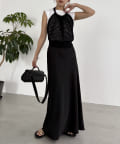 ・ホルター部分をリボンで結ぶのでバックスタイルも映えるデザイン