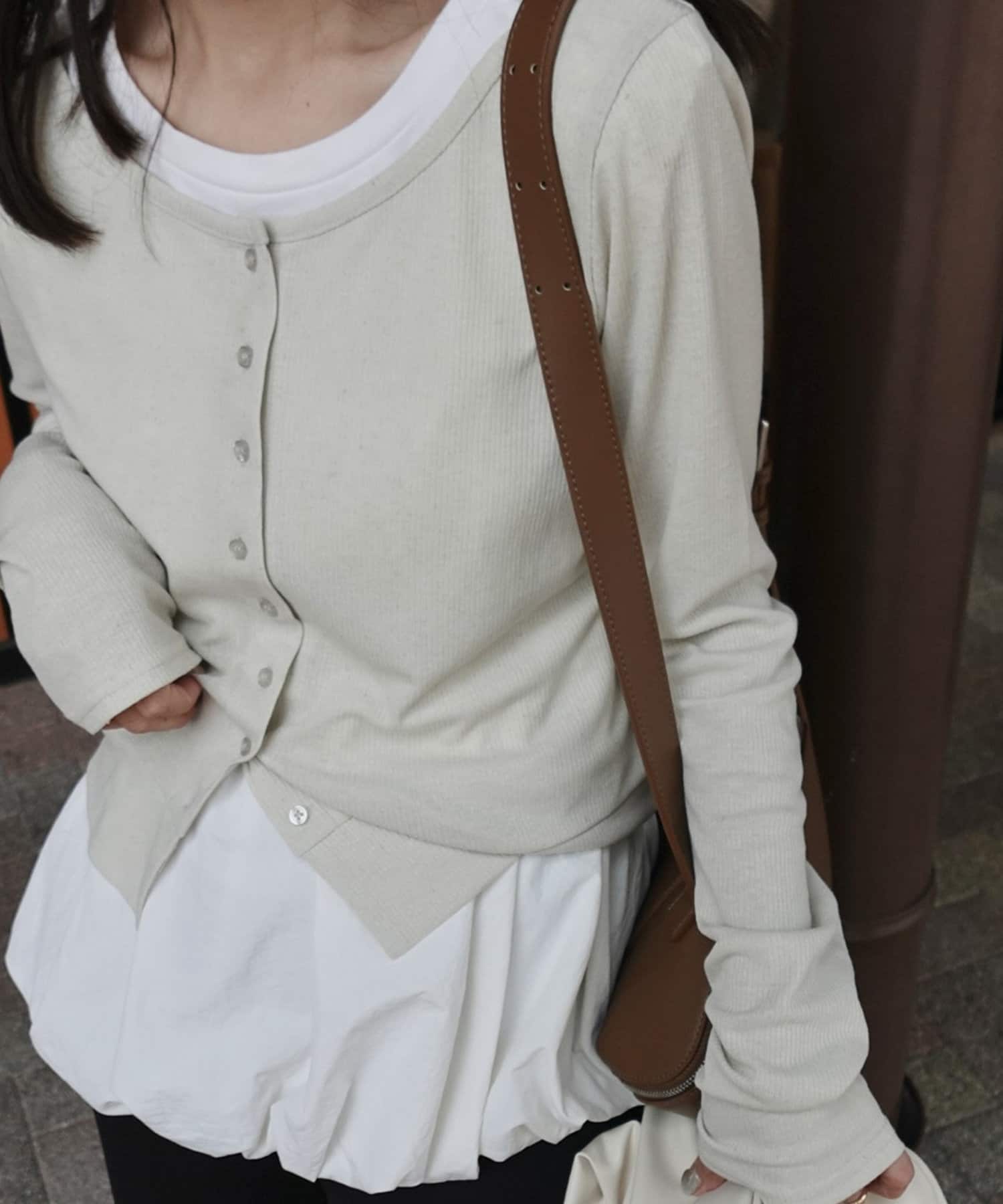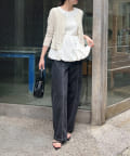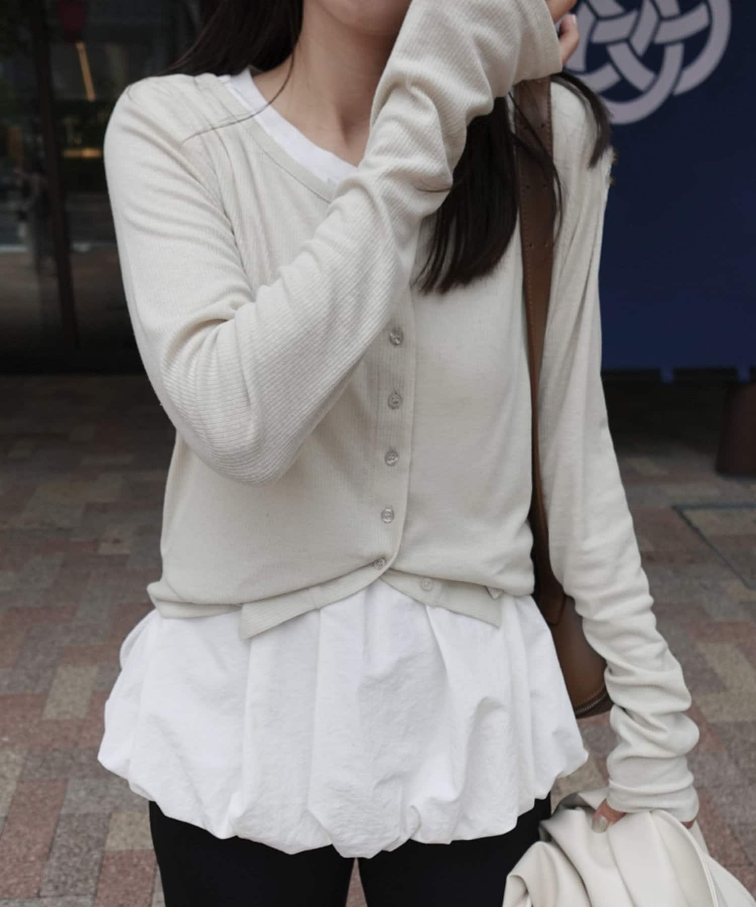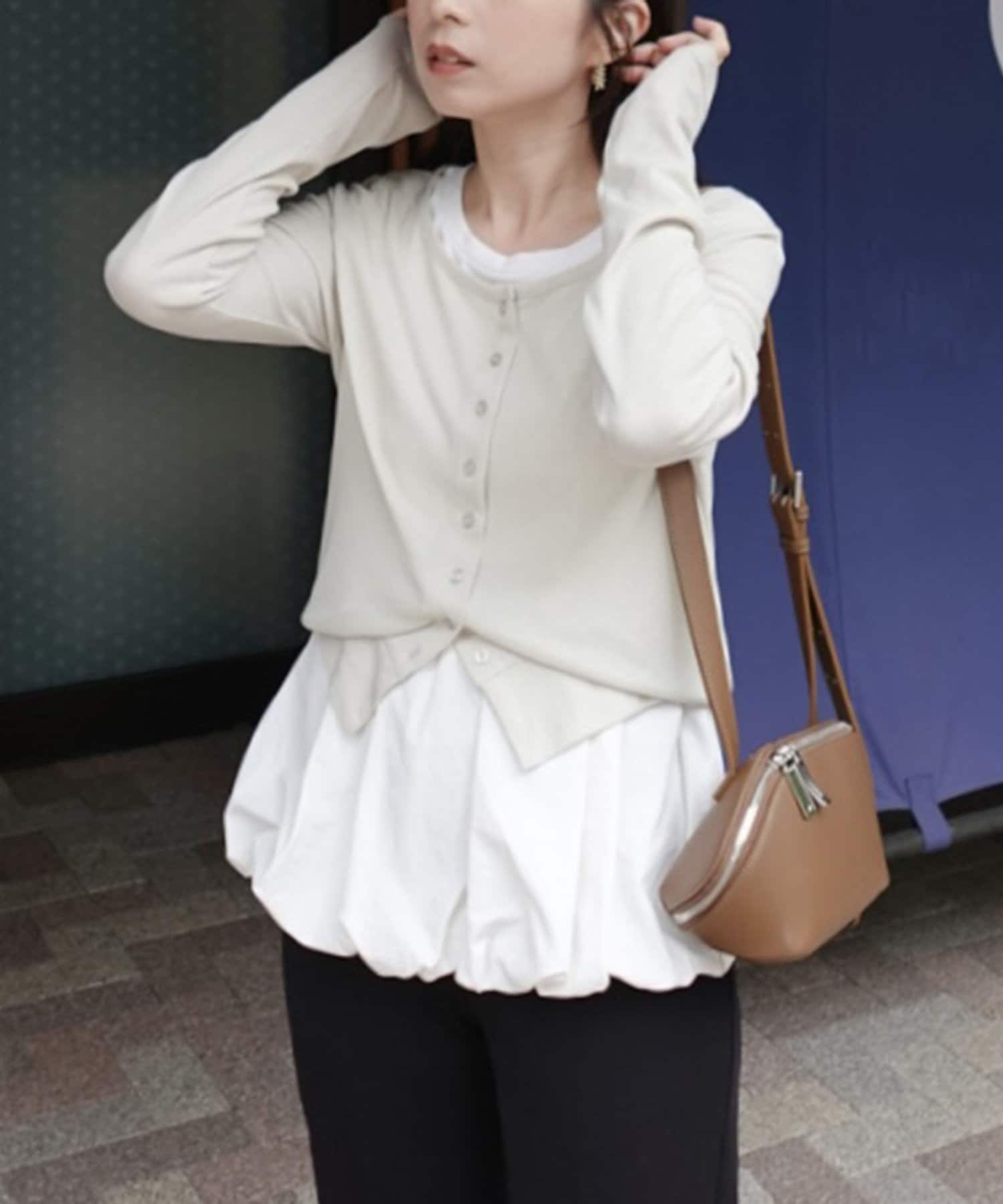 ・トレンドのバルーンやペプラムなどのトップスに羽織るのもおすすめ