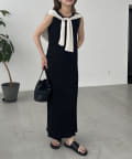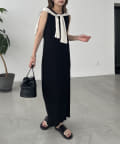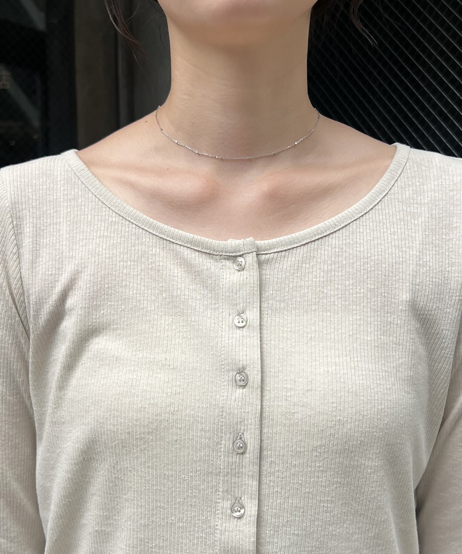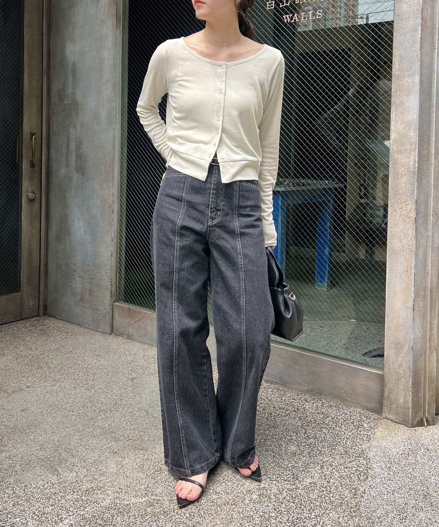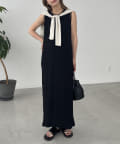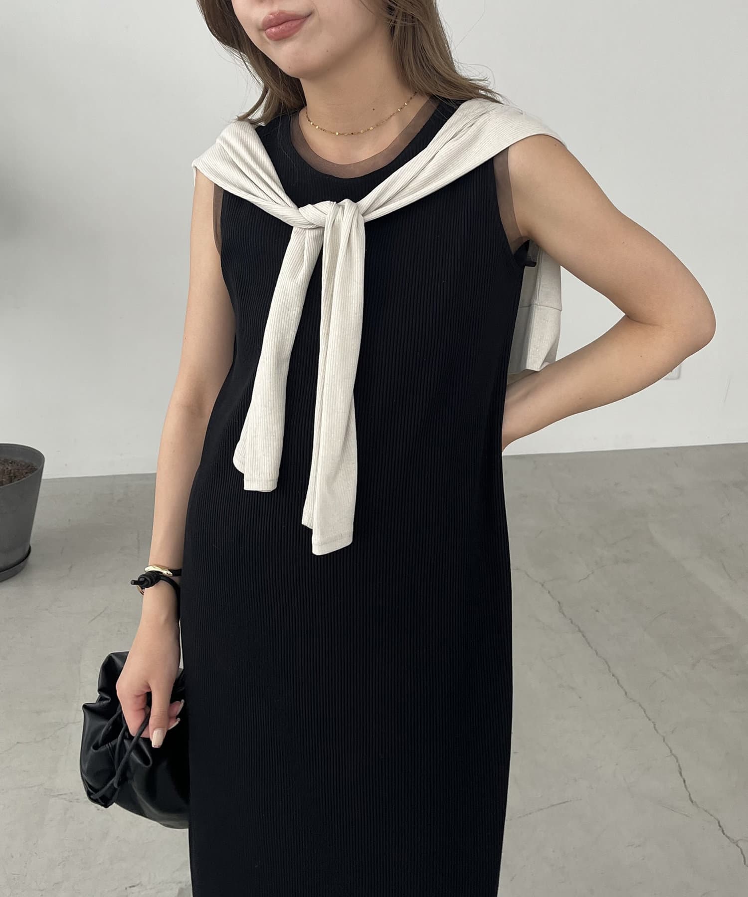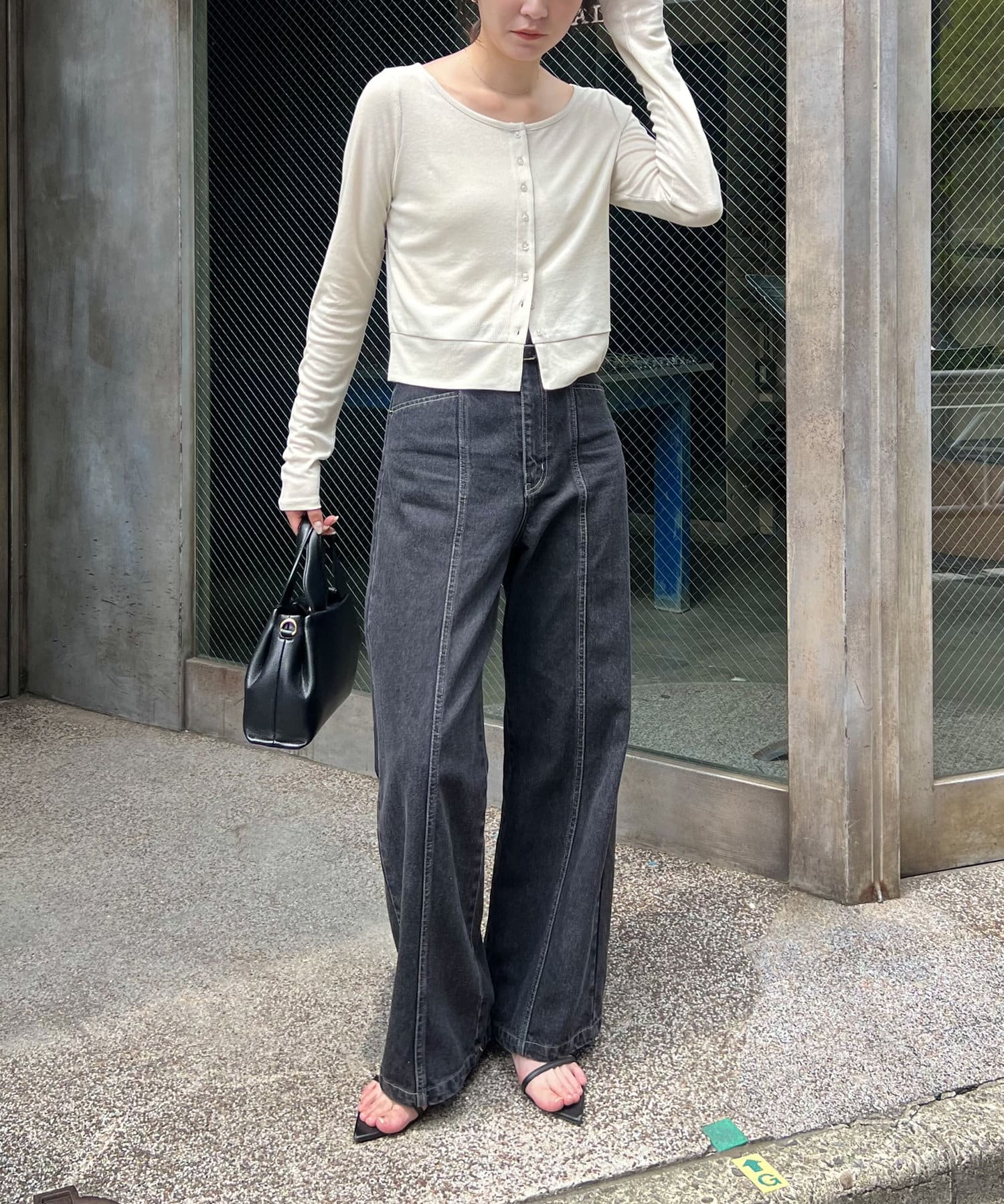 【ライトベージュ着用アイテム】バルーンドッキングTシャツ、センター切替デニム、チョーカーSETチュールトリムワンピース