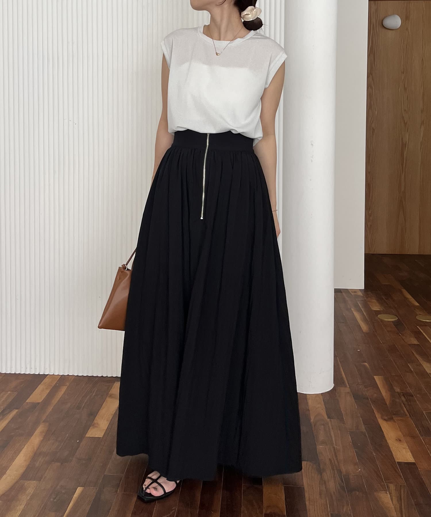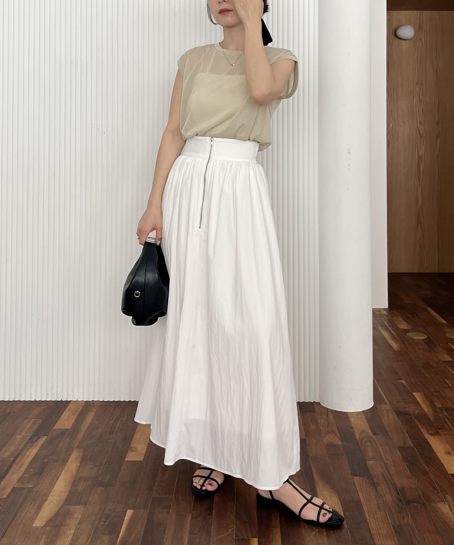 ラメトップスとフレアスカートの綺麗めSETアイテム