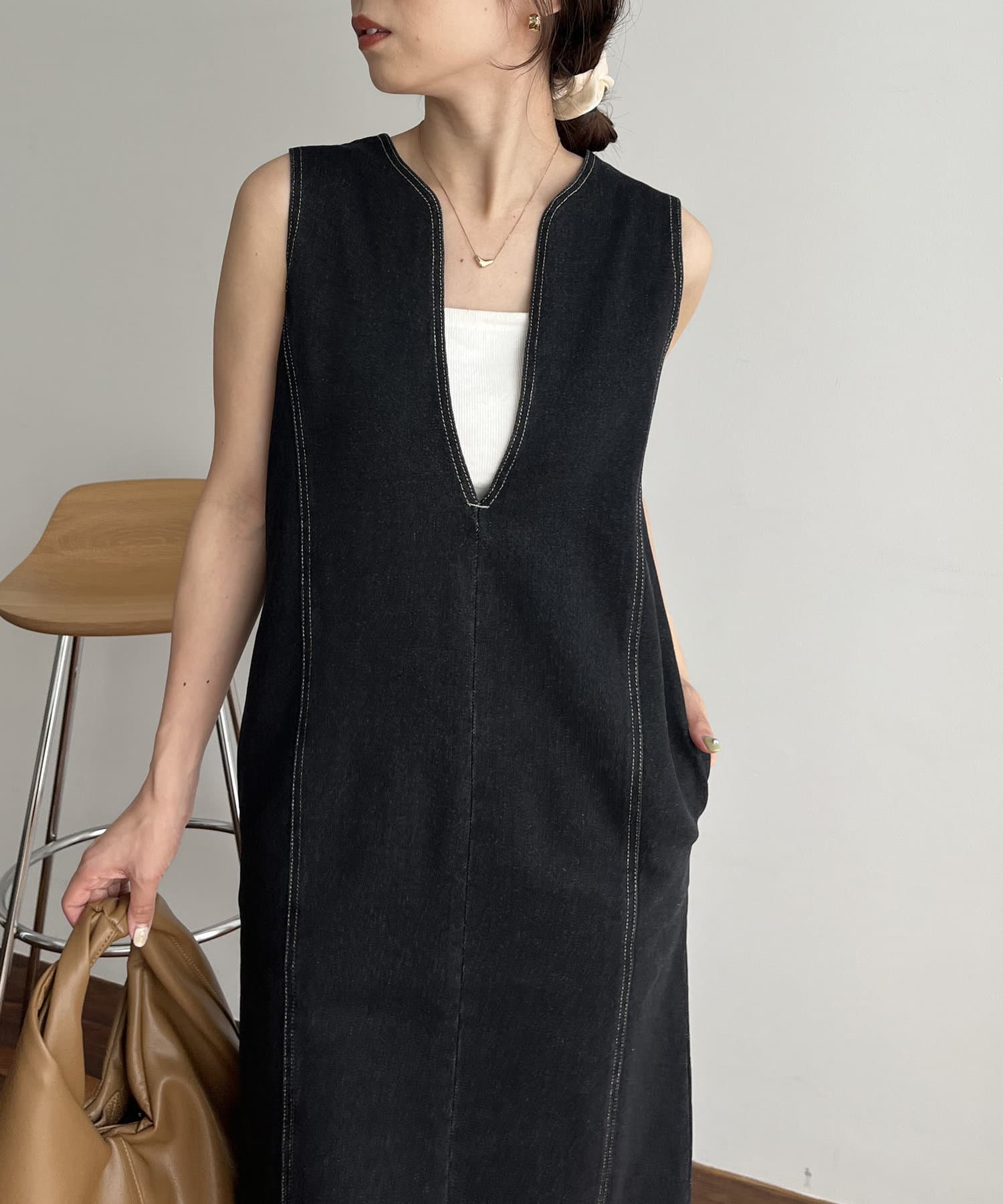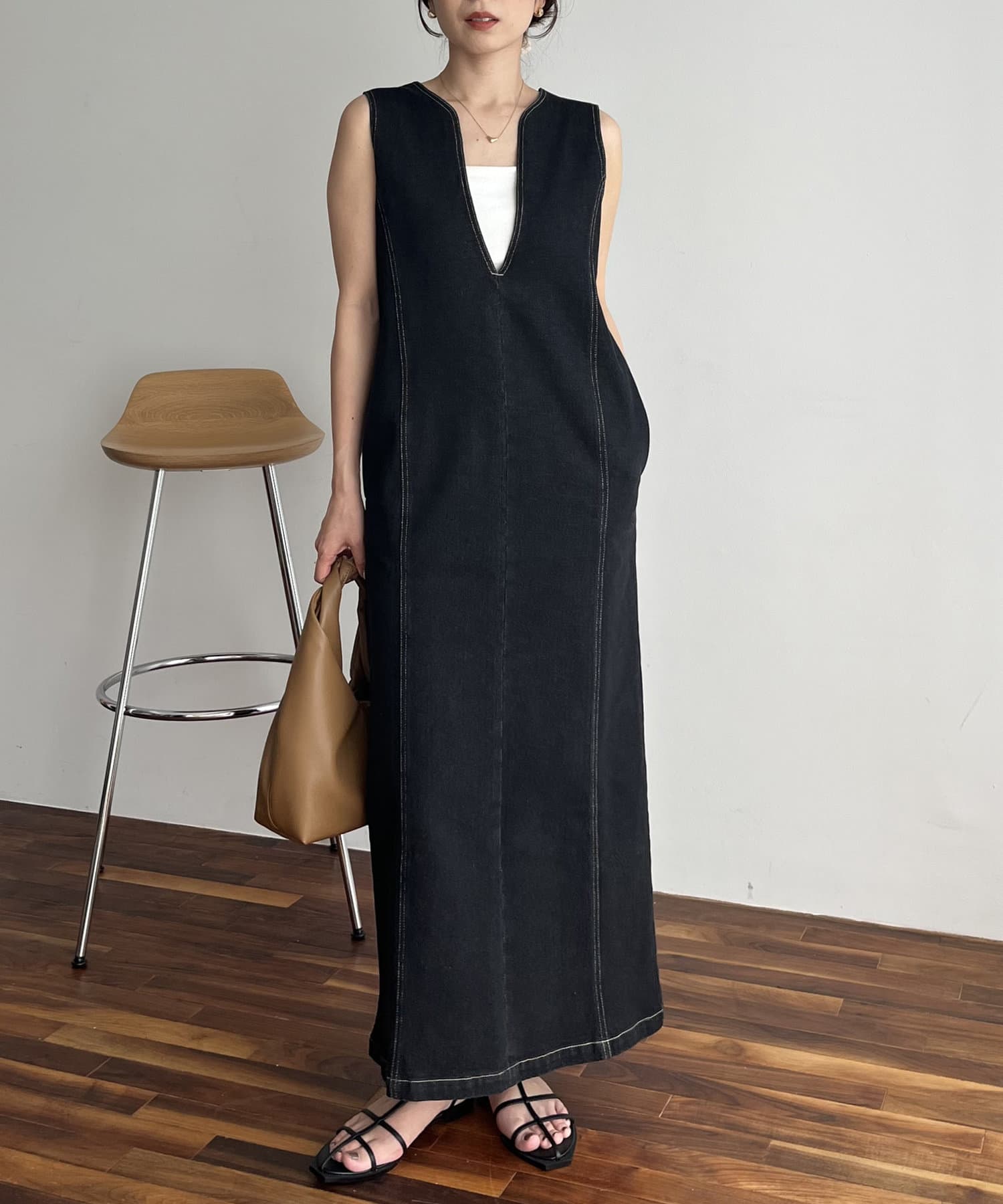【CAPRICIEUX LE'MAGE】Iラインデニムワンピース