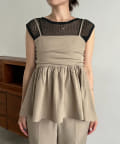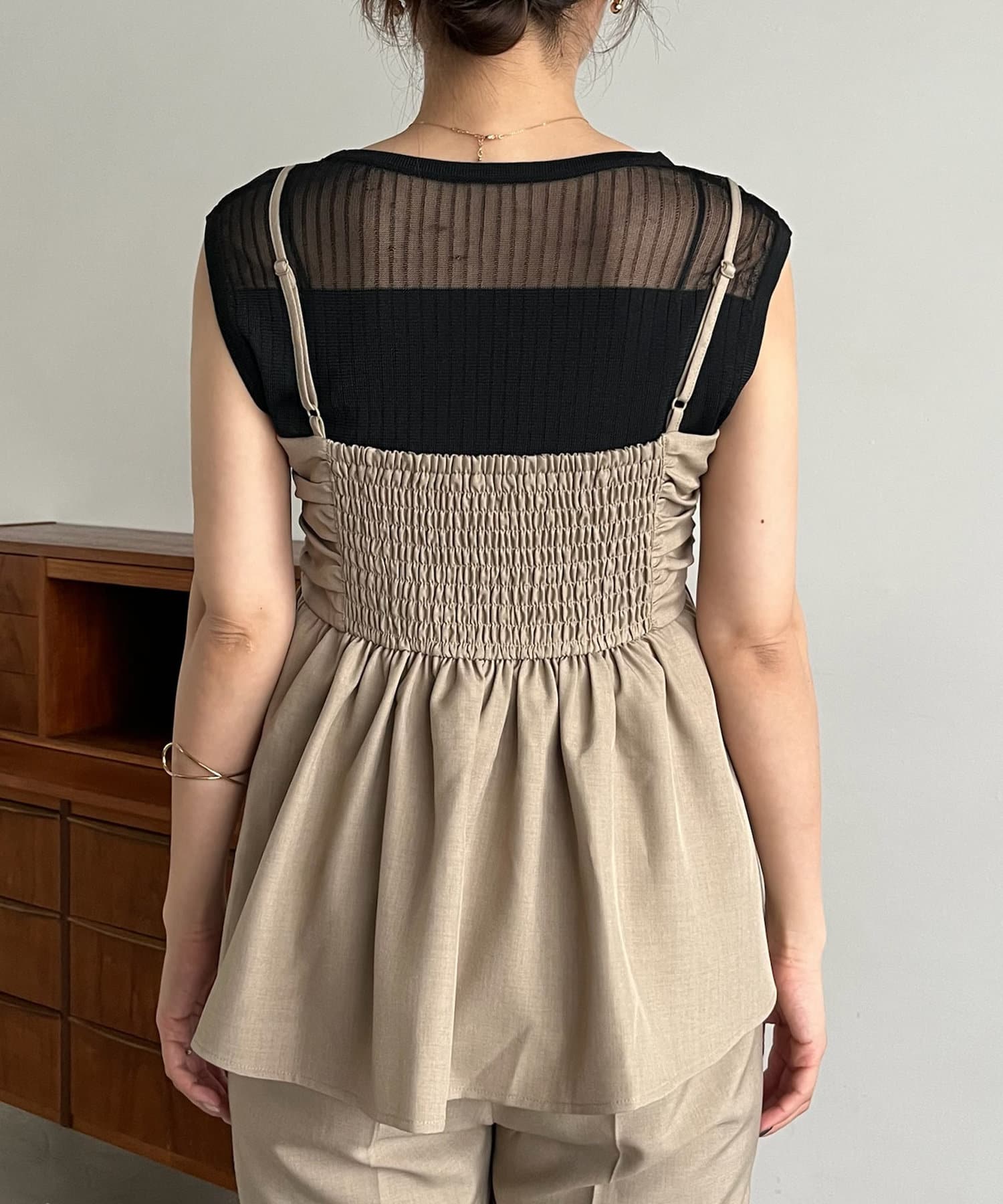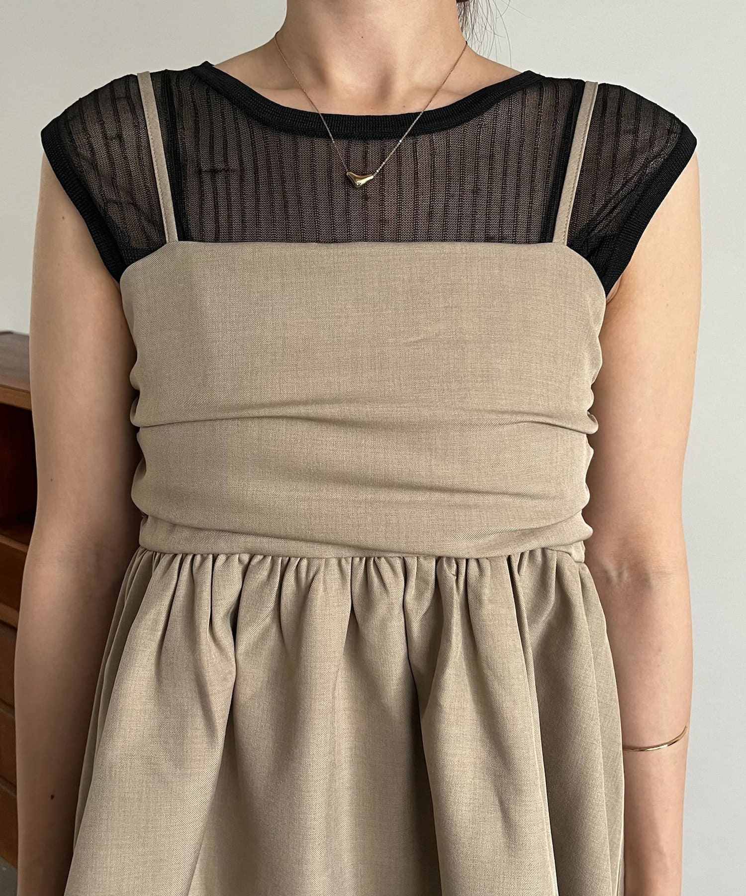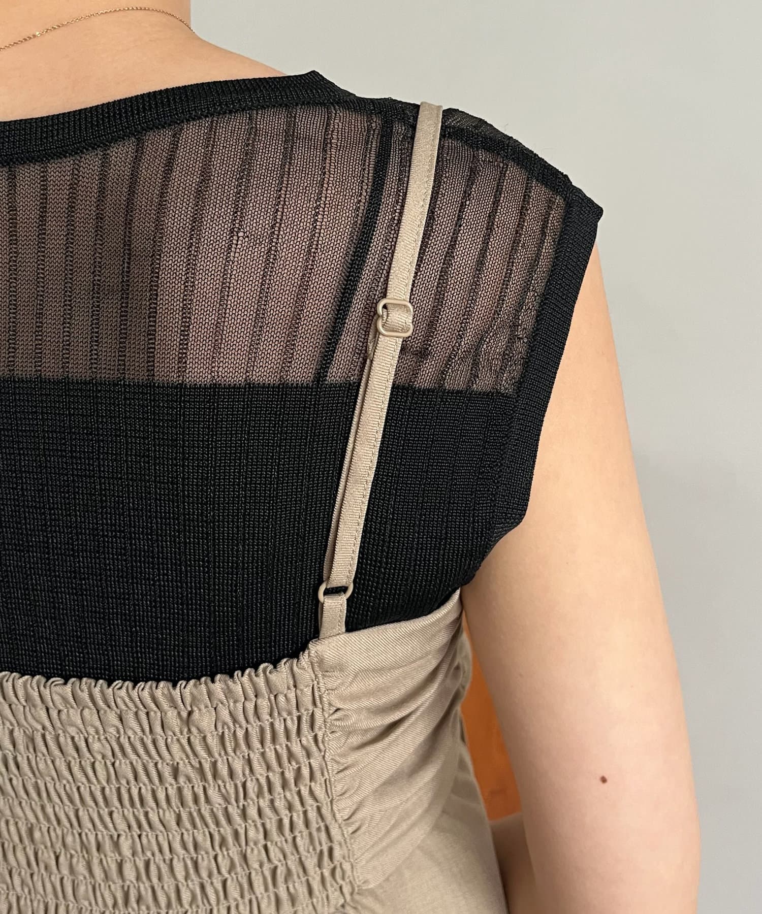 【ベージュ着用アイテム①】シアー切替ニットタンク