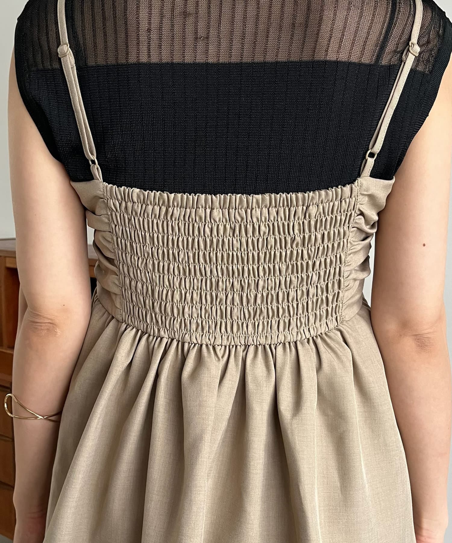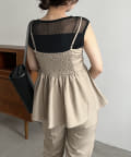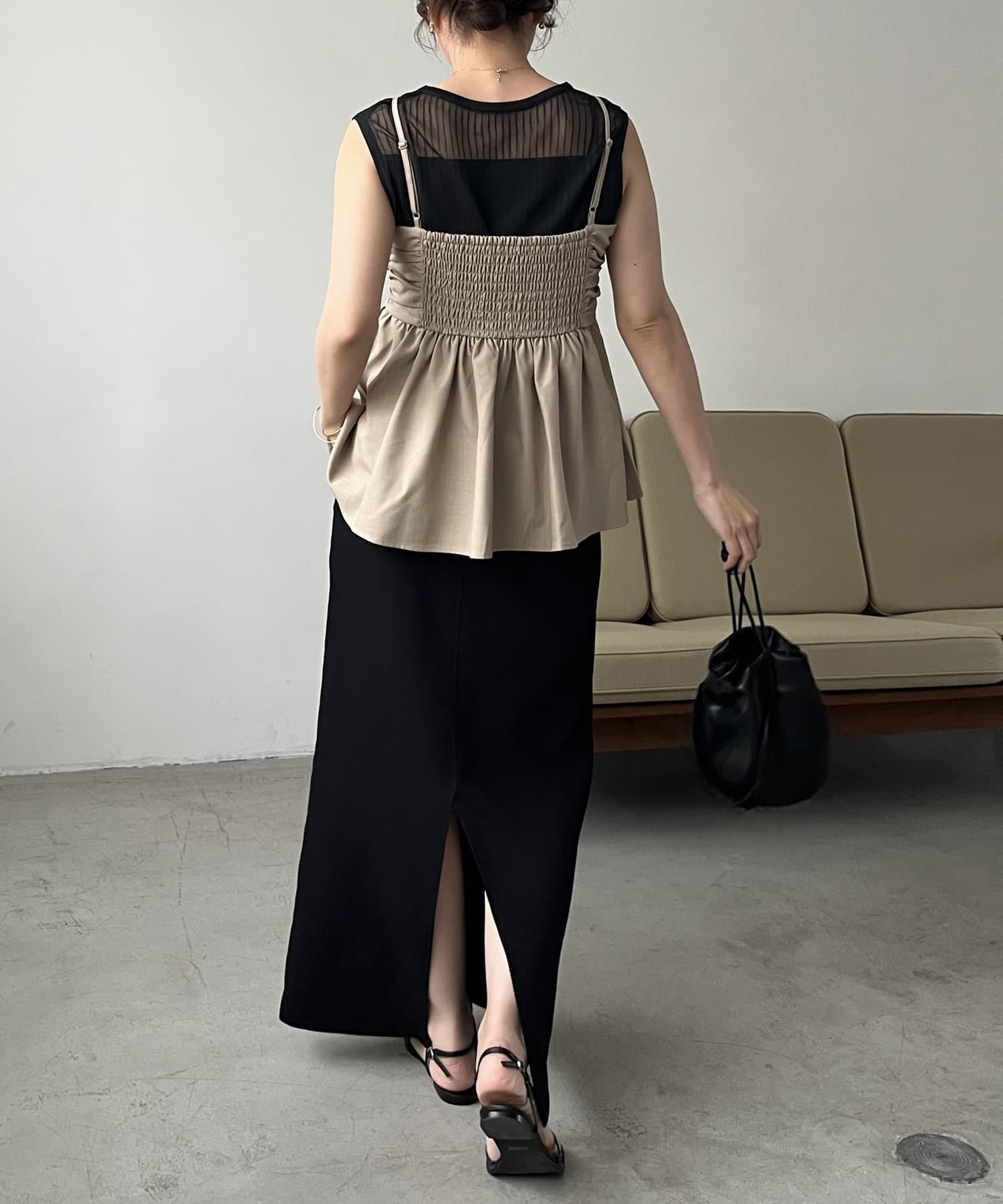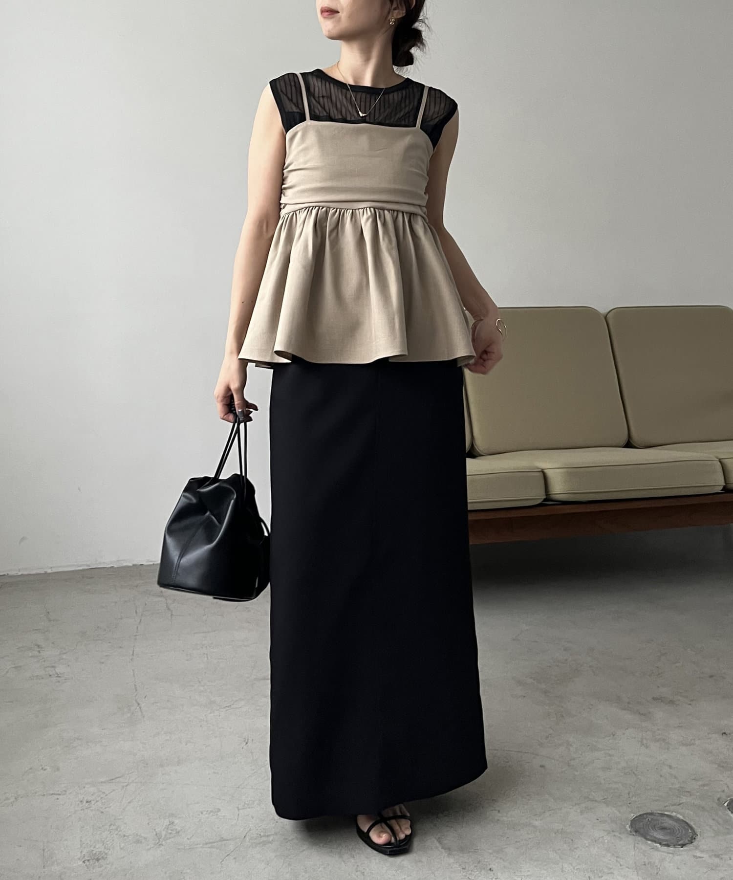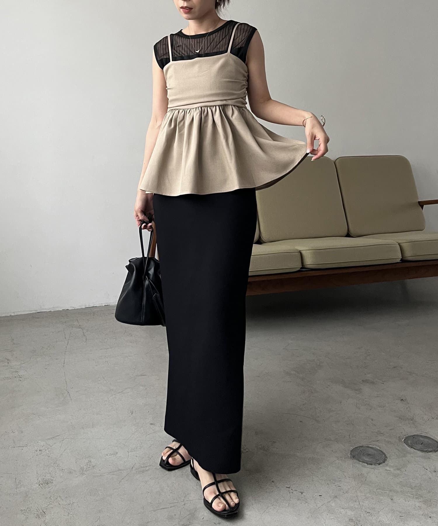【ベージュ着用アイテム①】シアー切替ニットタンク