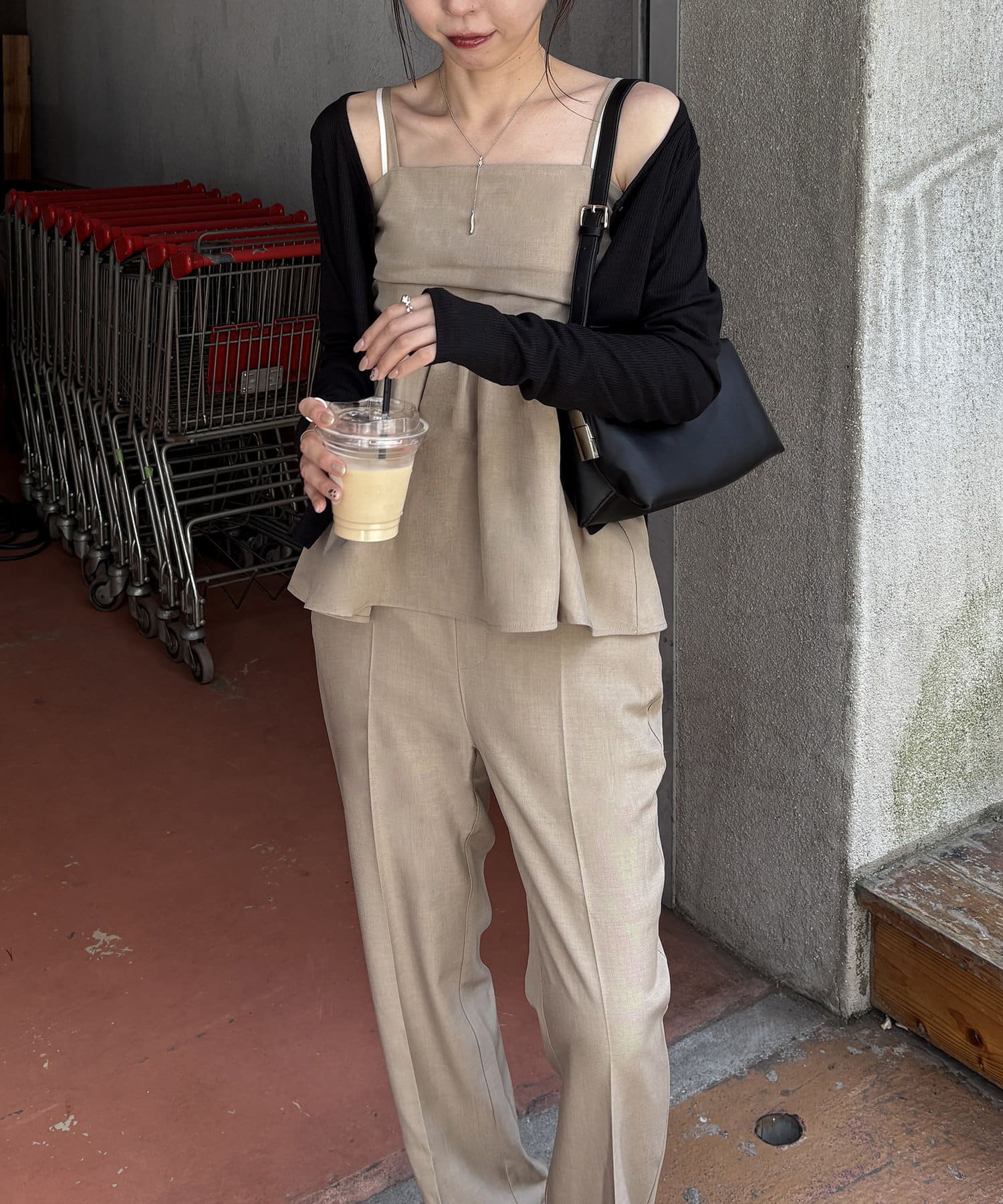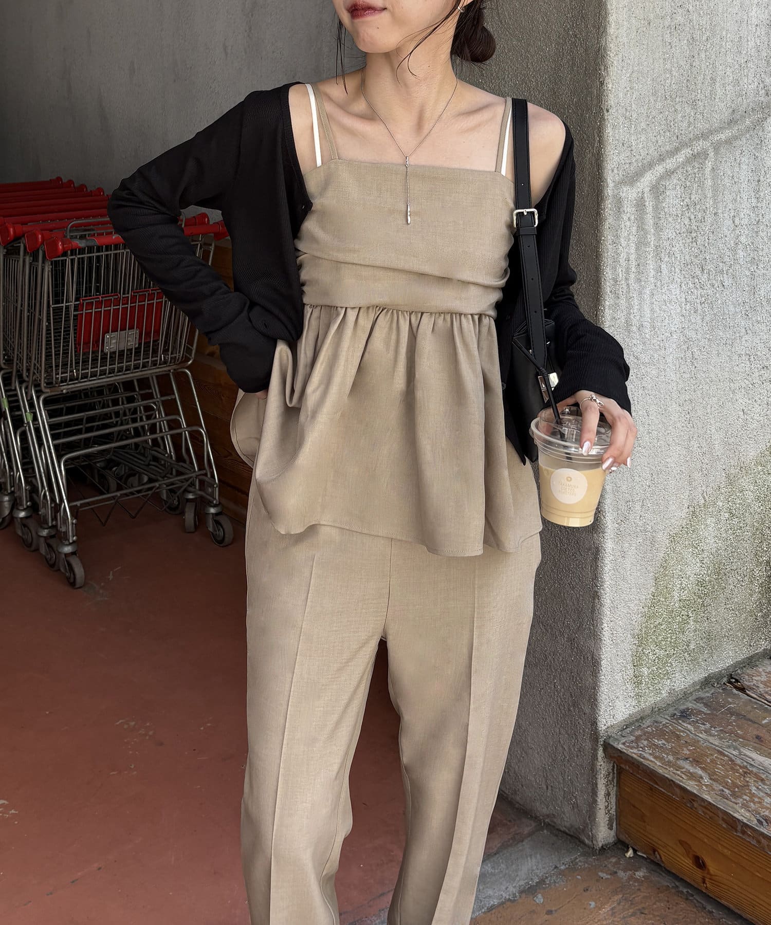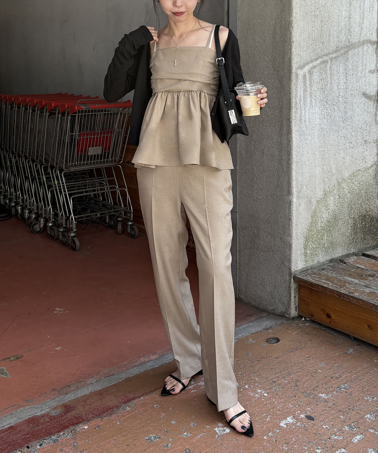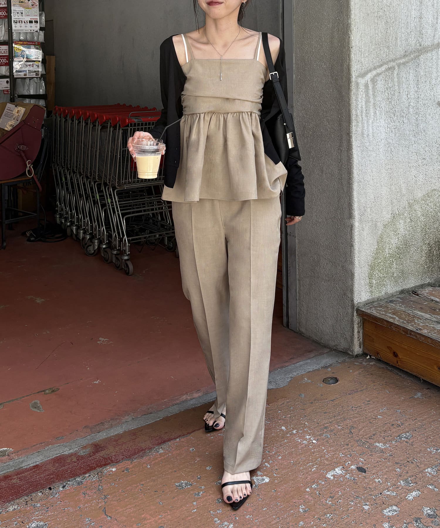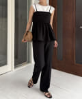 ペプラムキャミ×パンツの綺麗めセットアップアイテム