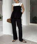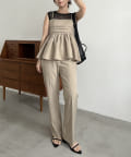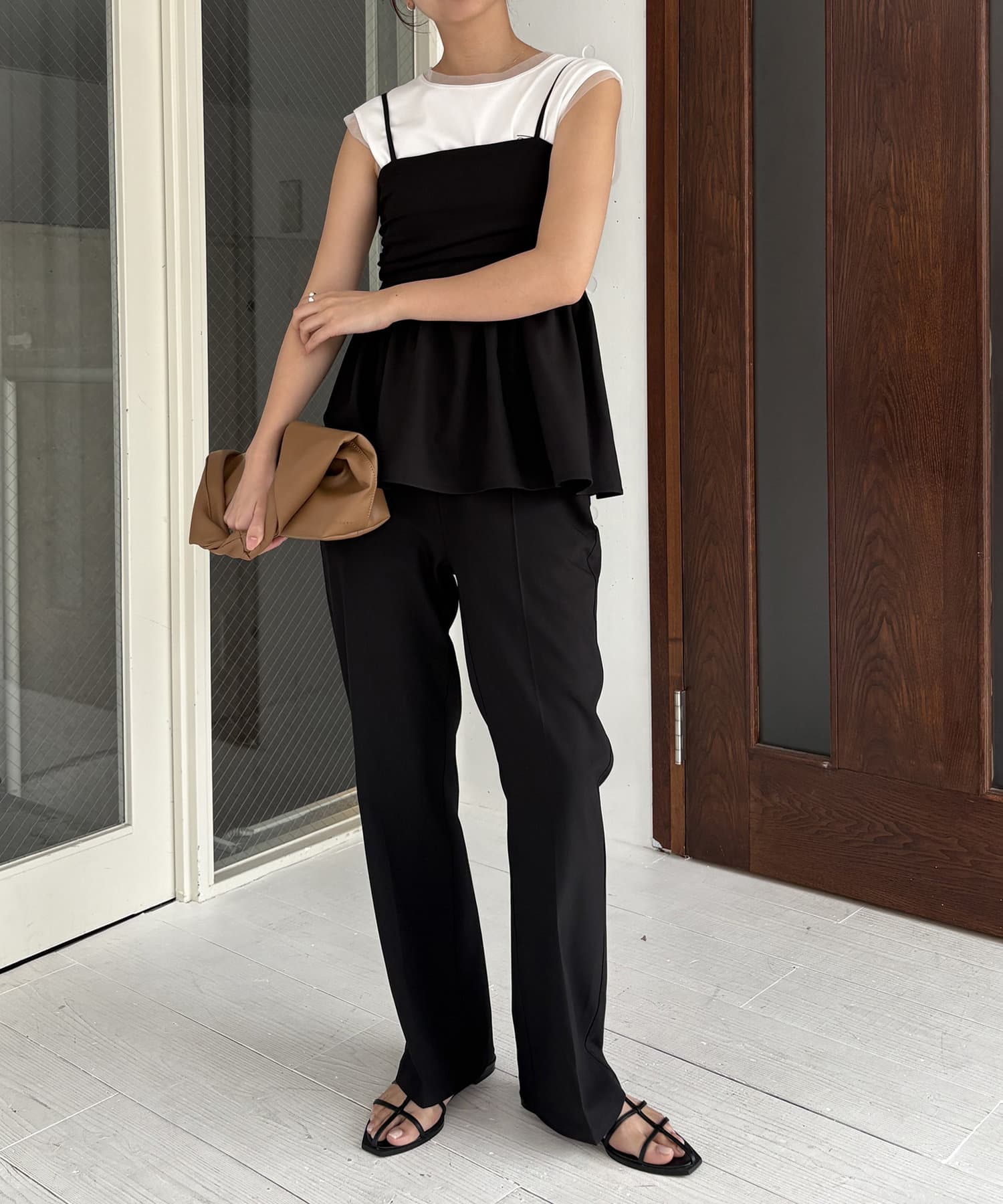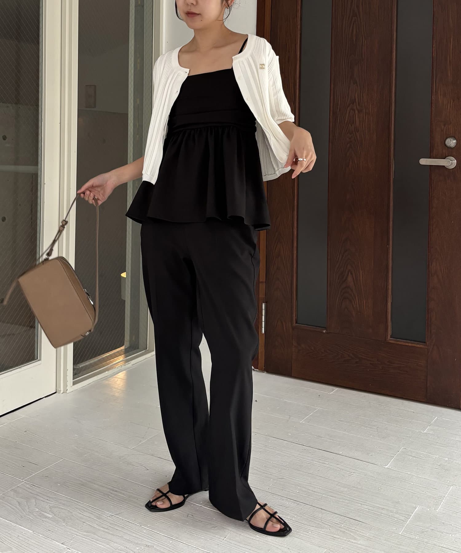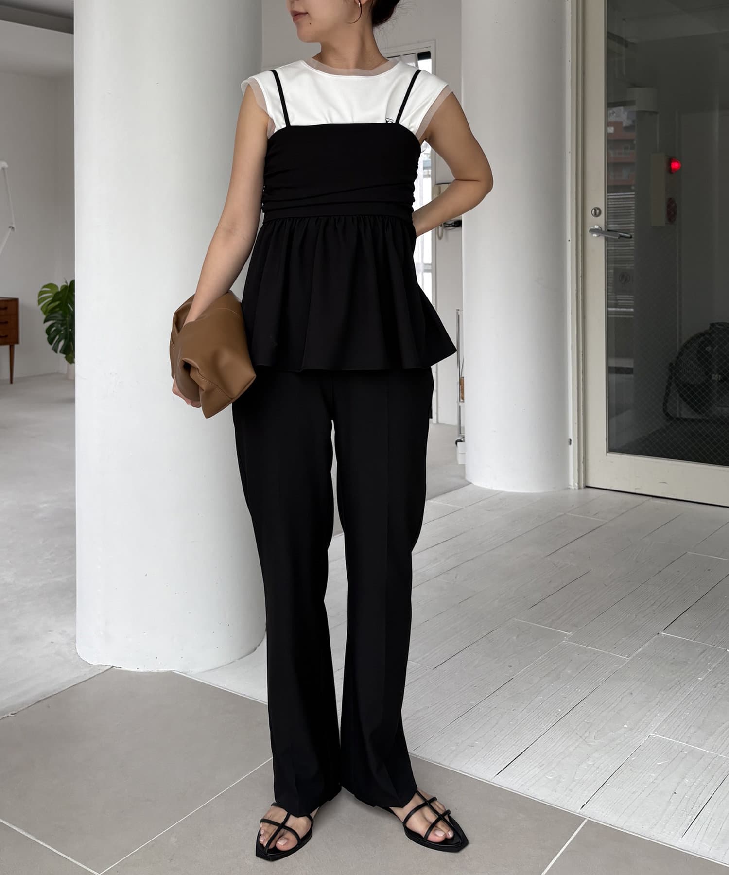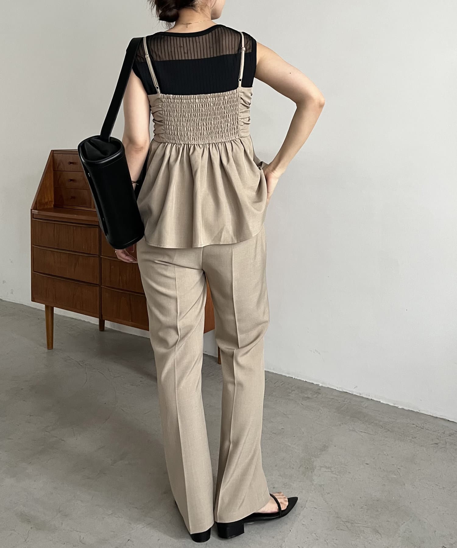 ペプラムキャミ×パンツの綺麗めセットアップアイテム