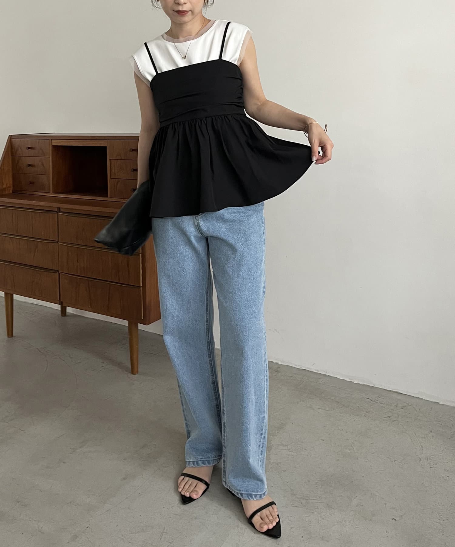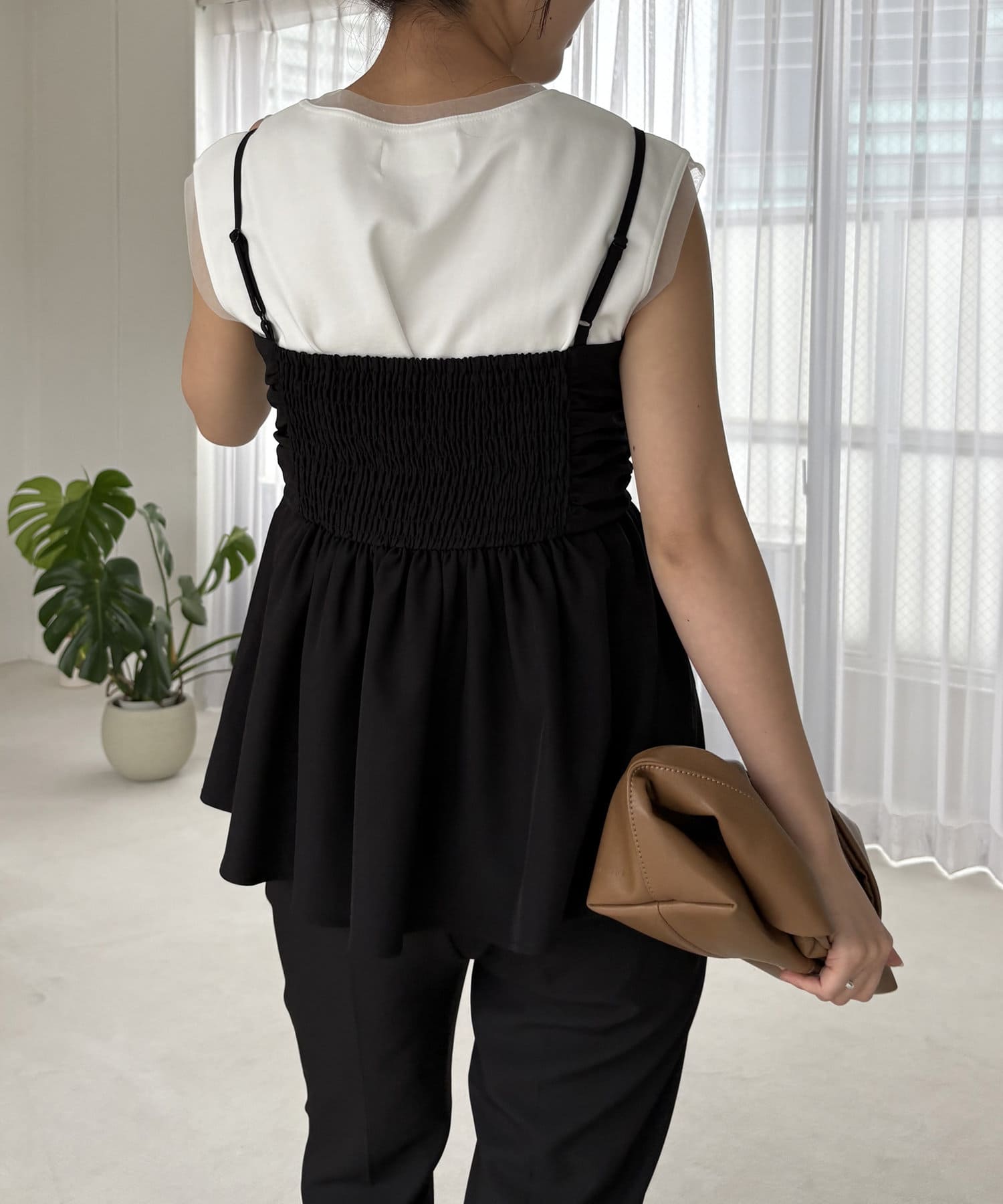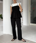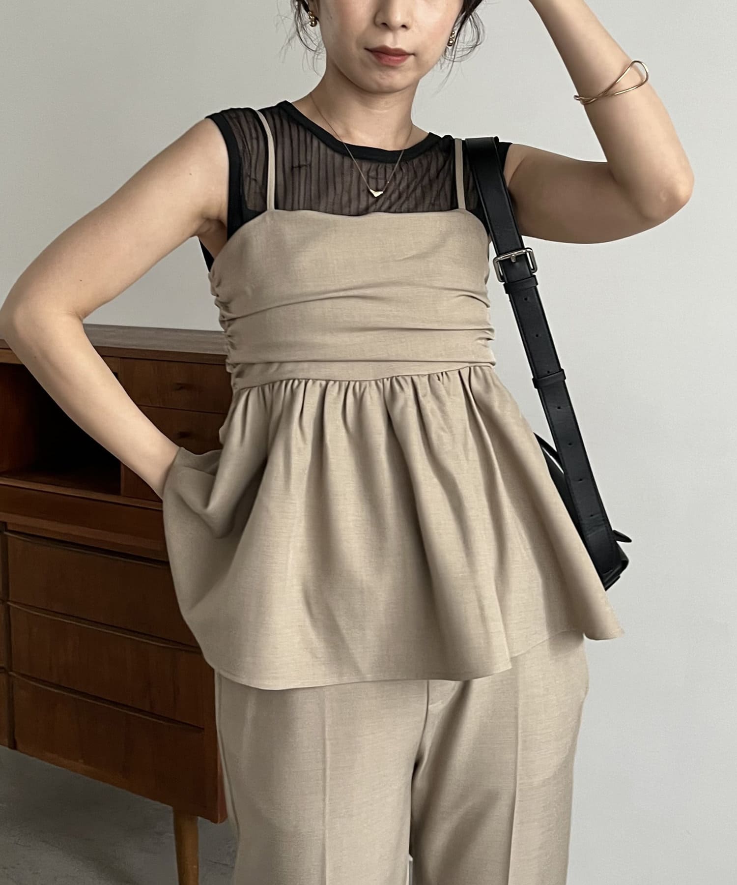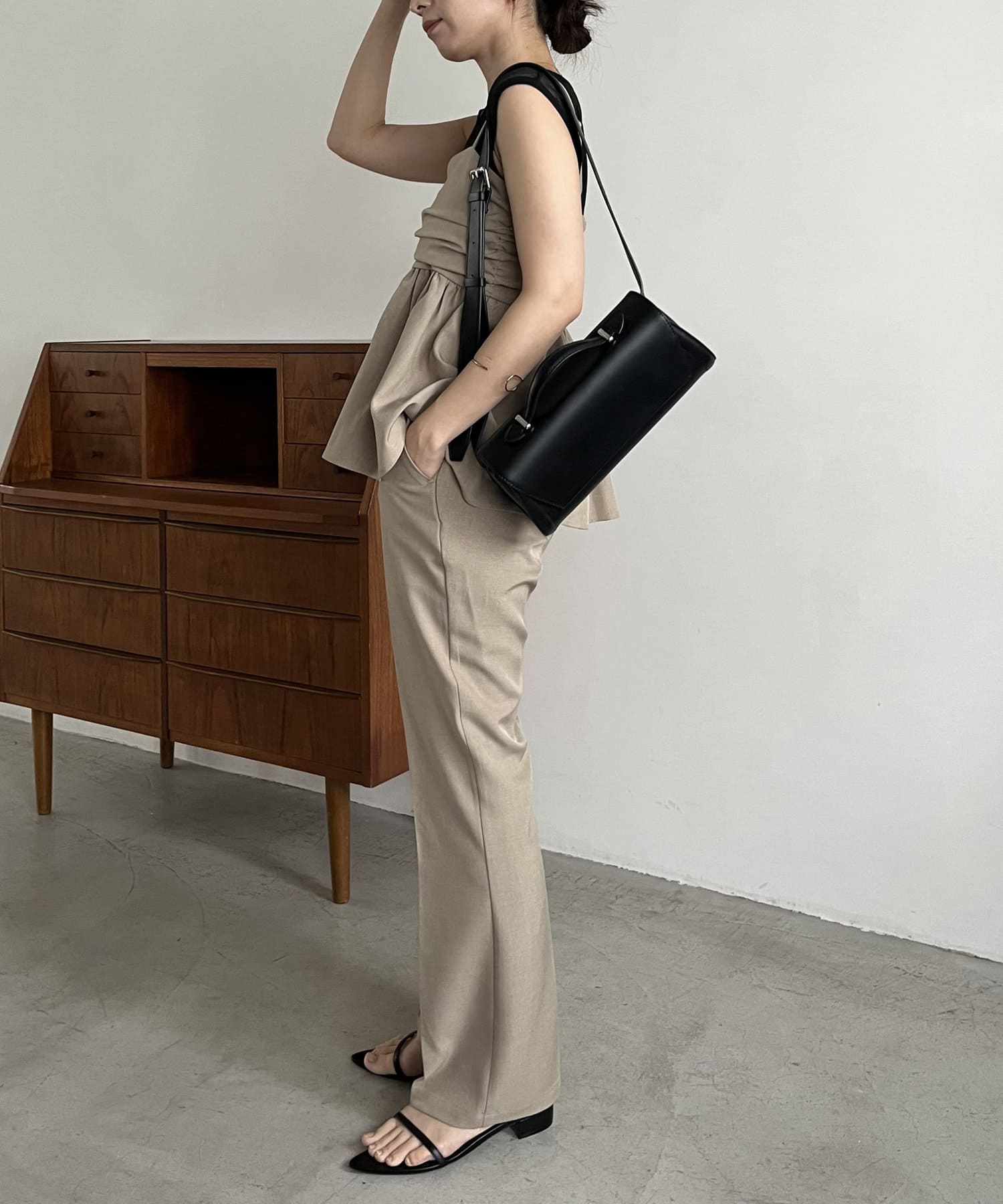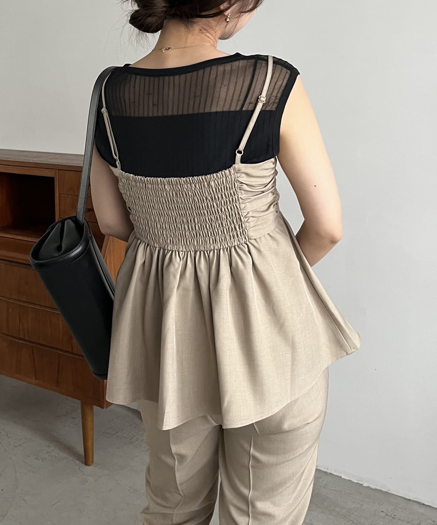 ペプラムキャミ×パンツの綺麗めセットアップアイテム