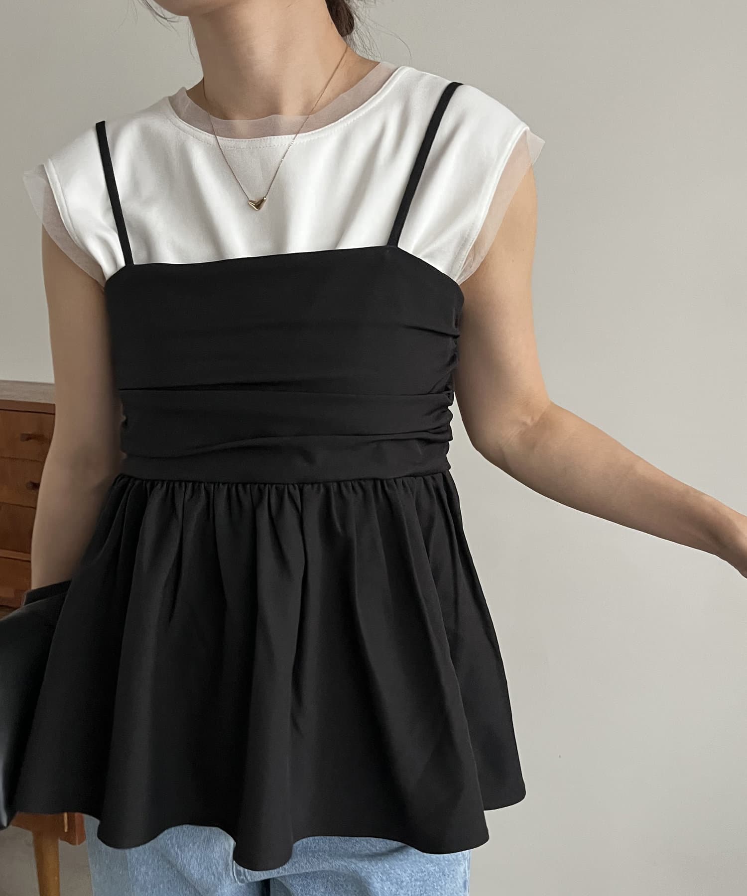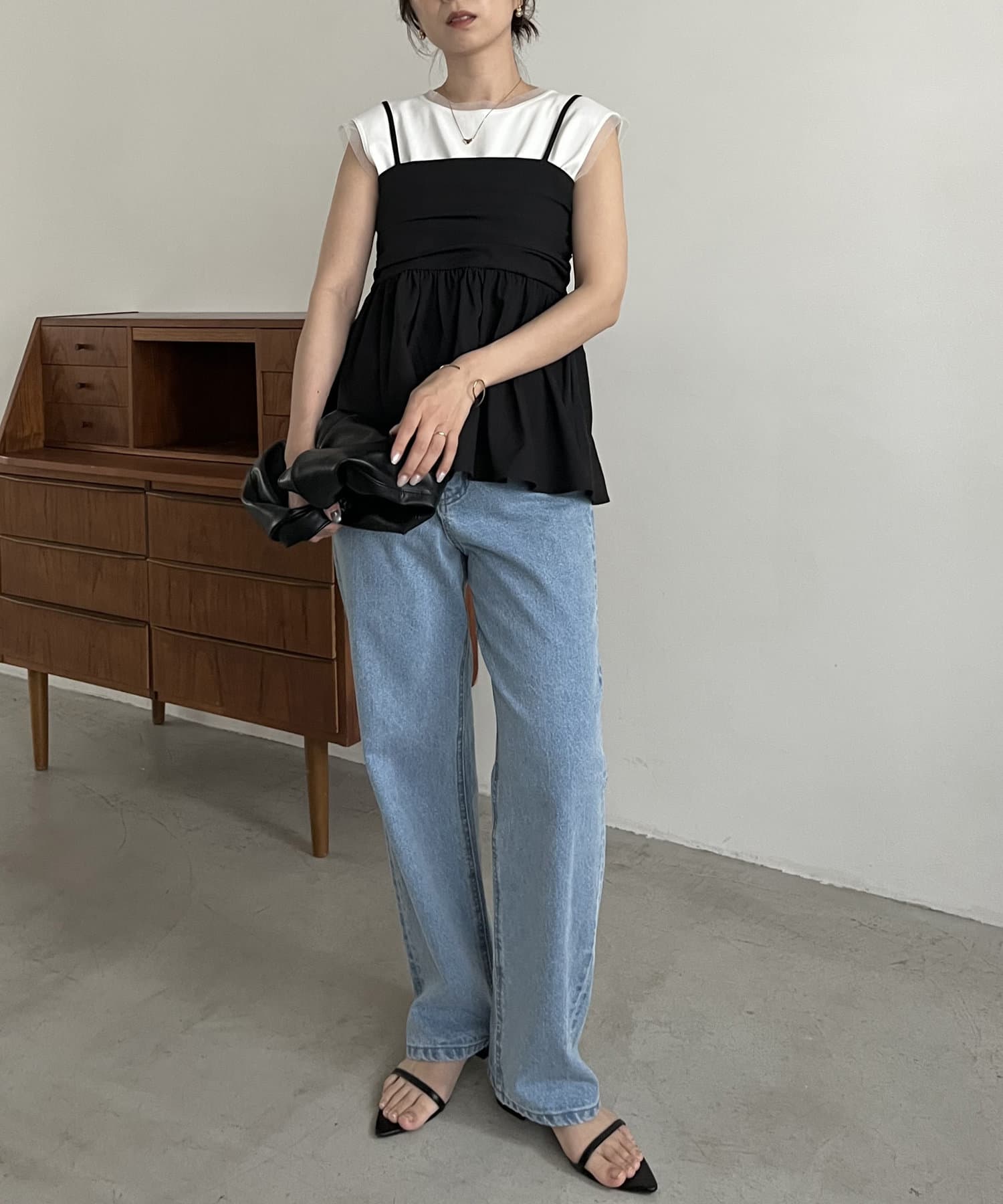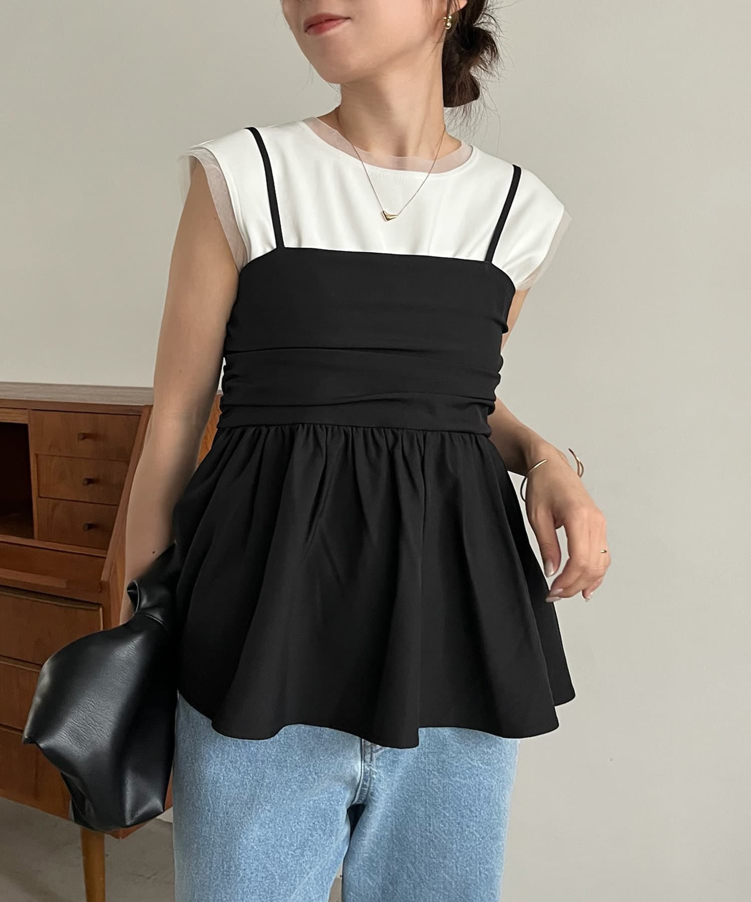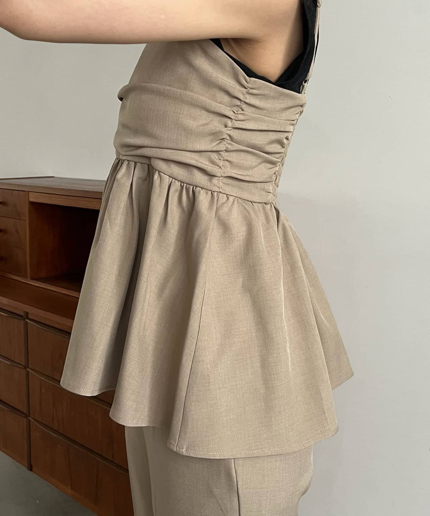 ペプラムキャミ×パンツの綺麗めセットアップアイテム
