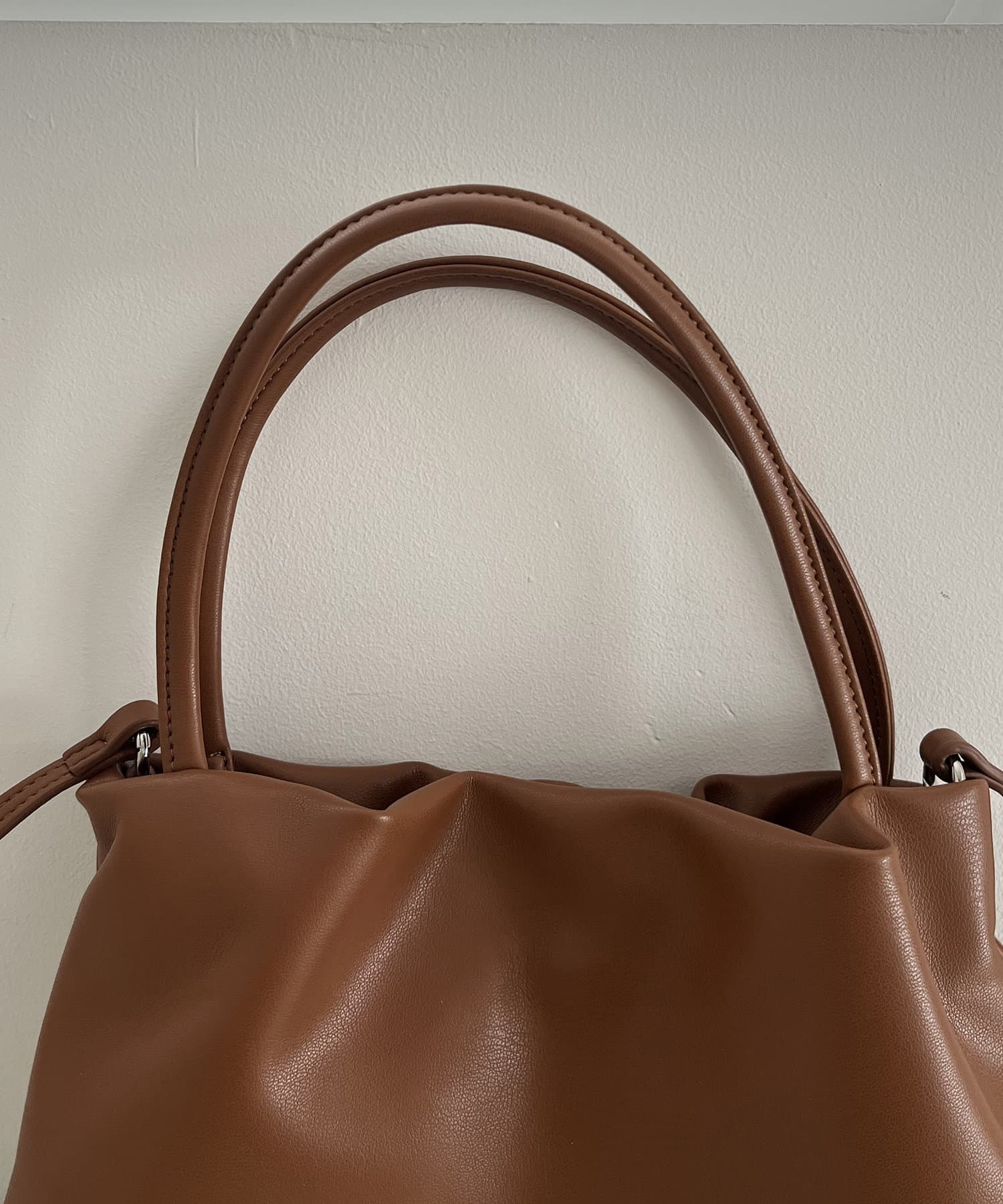 こなれ感漂うギャザーデザインがポイントのミニバッグ