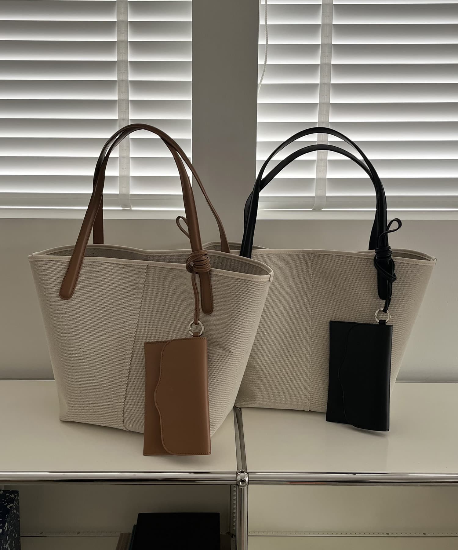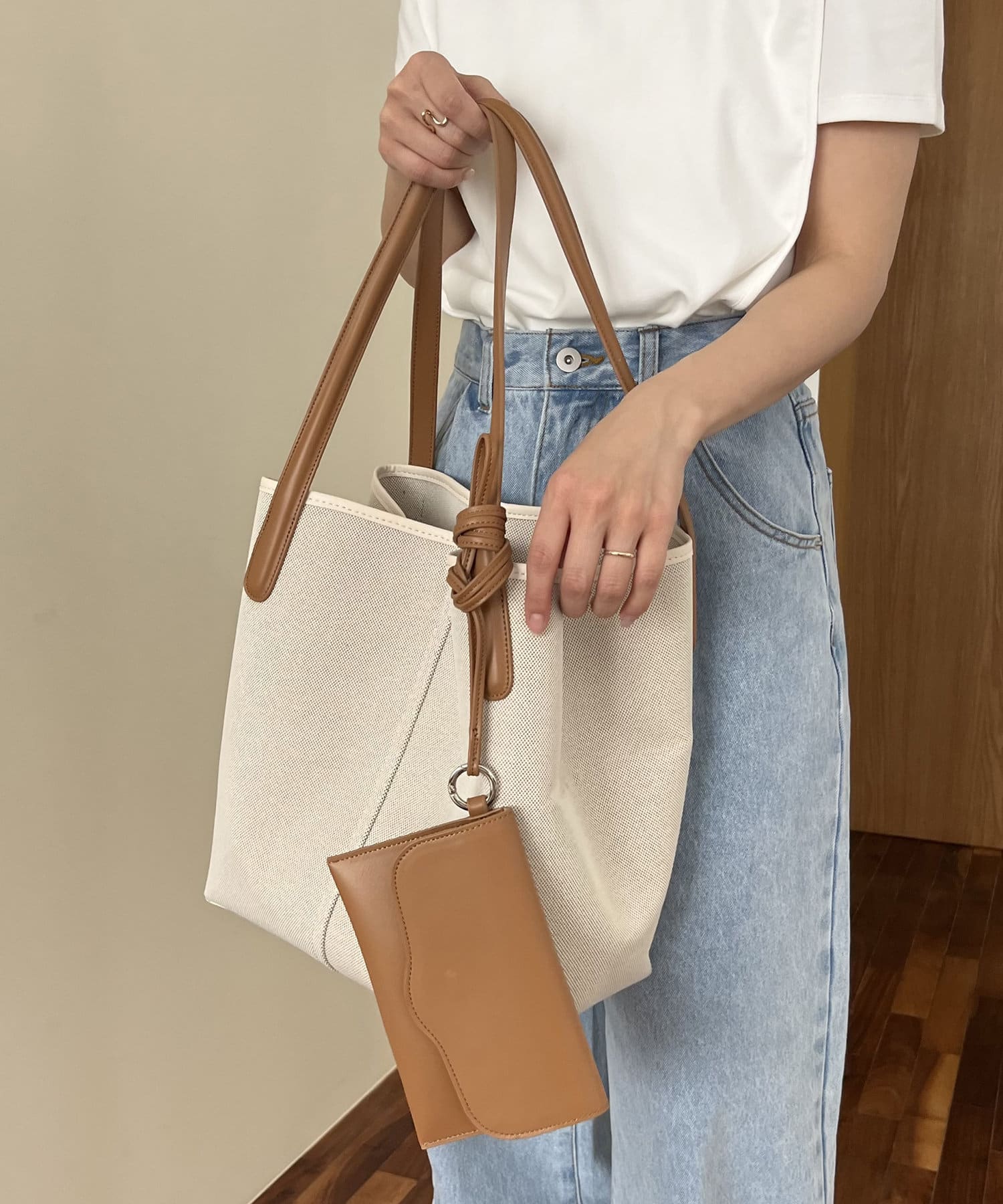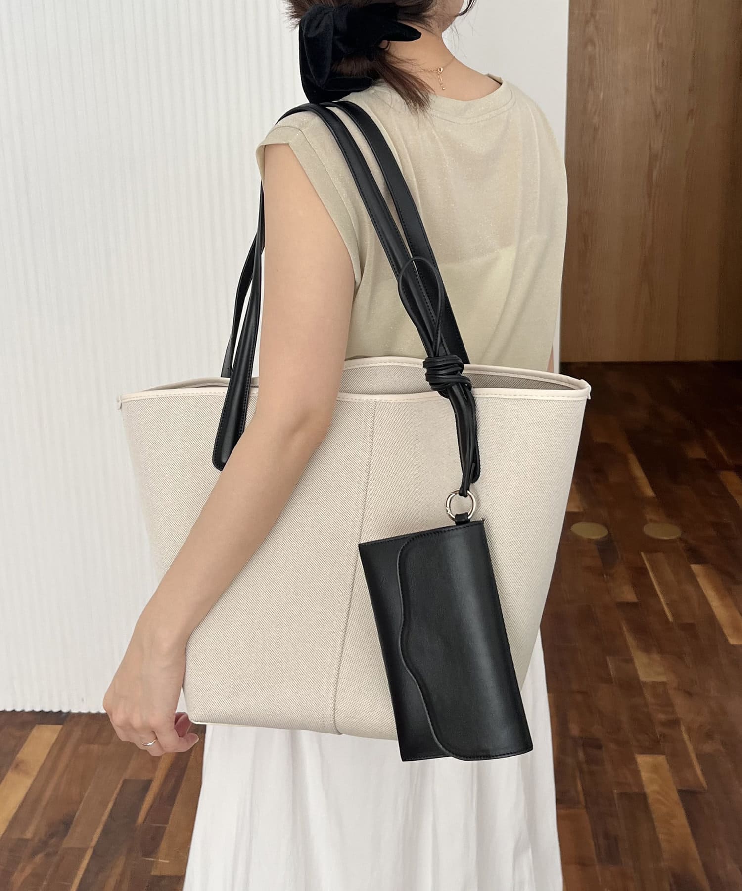 ・ボディとハンドル、付属のポーチが異素材でバイカラーに切り替わったデザイン