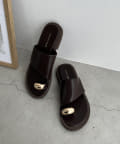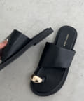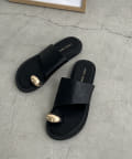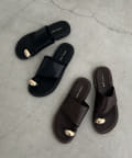 メタルがワンポイントのフラットサンダル