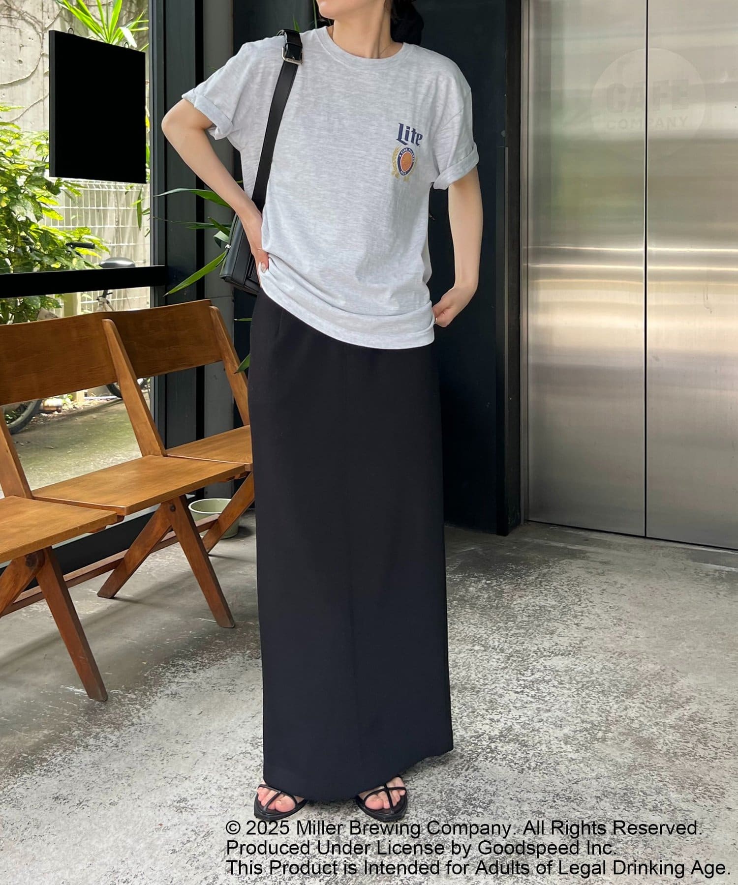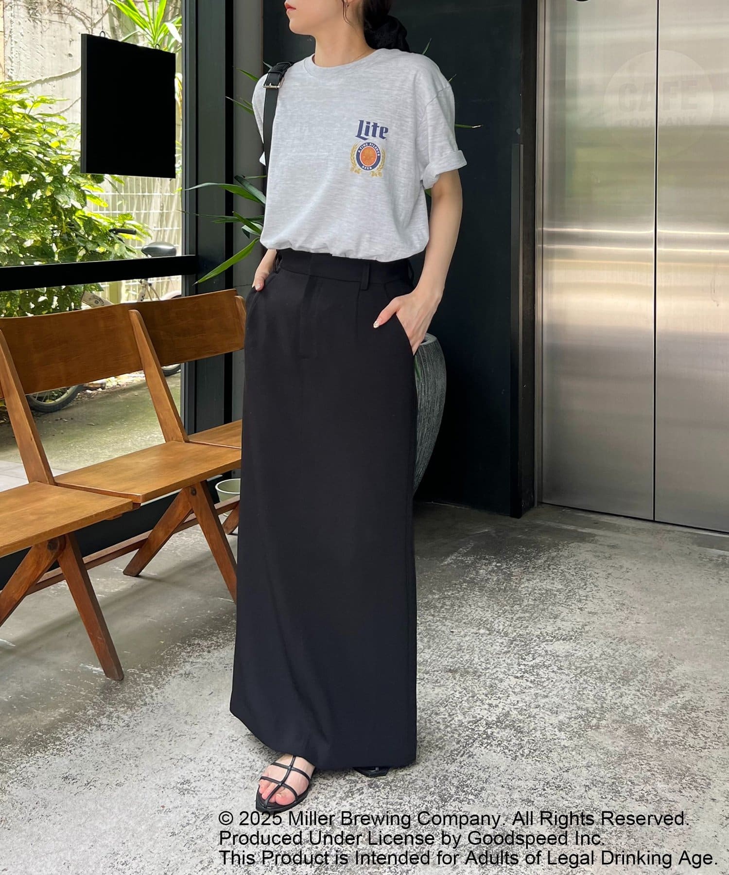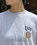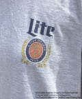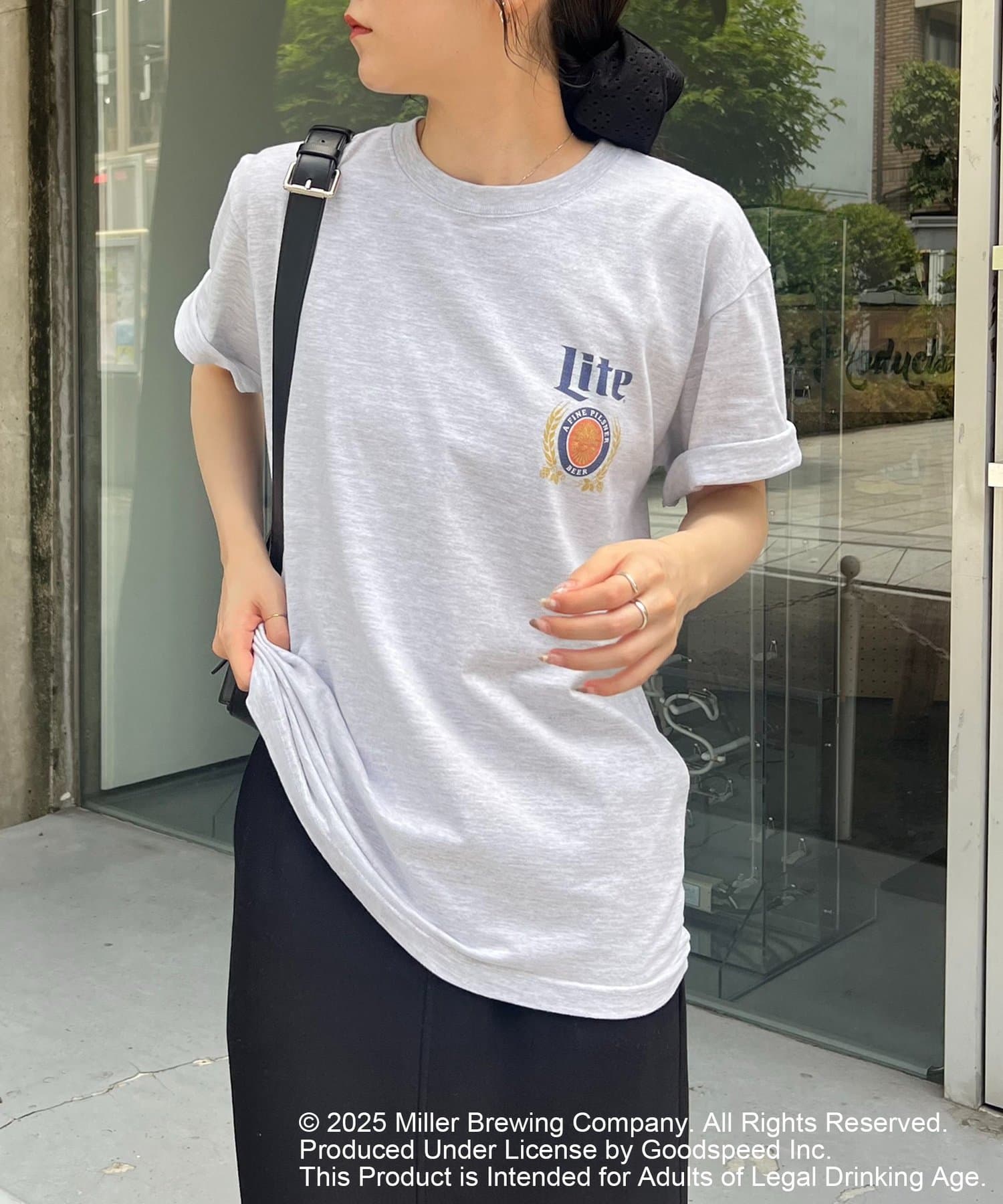 アメリカのビールブランド「ミラーライト」のロゴがプリントされた半袖Tシャツ