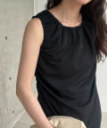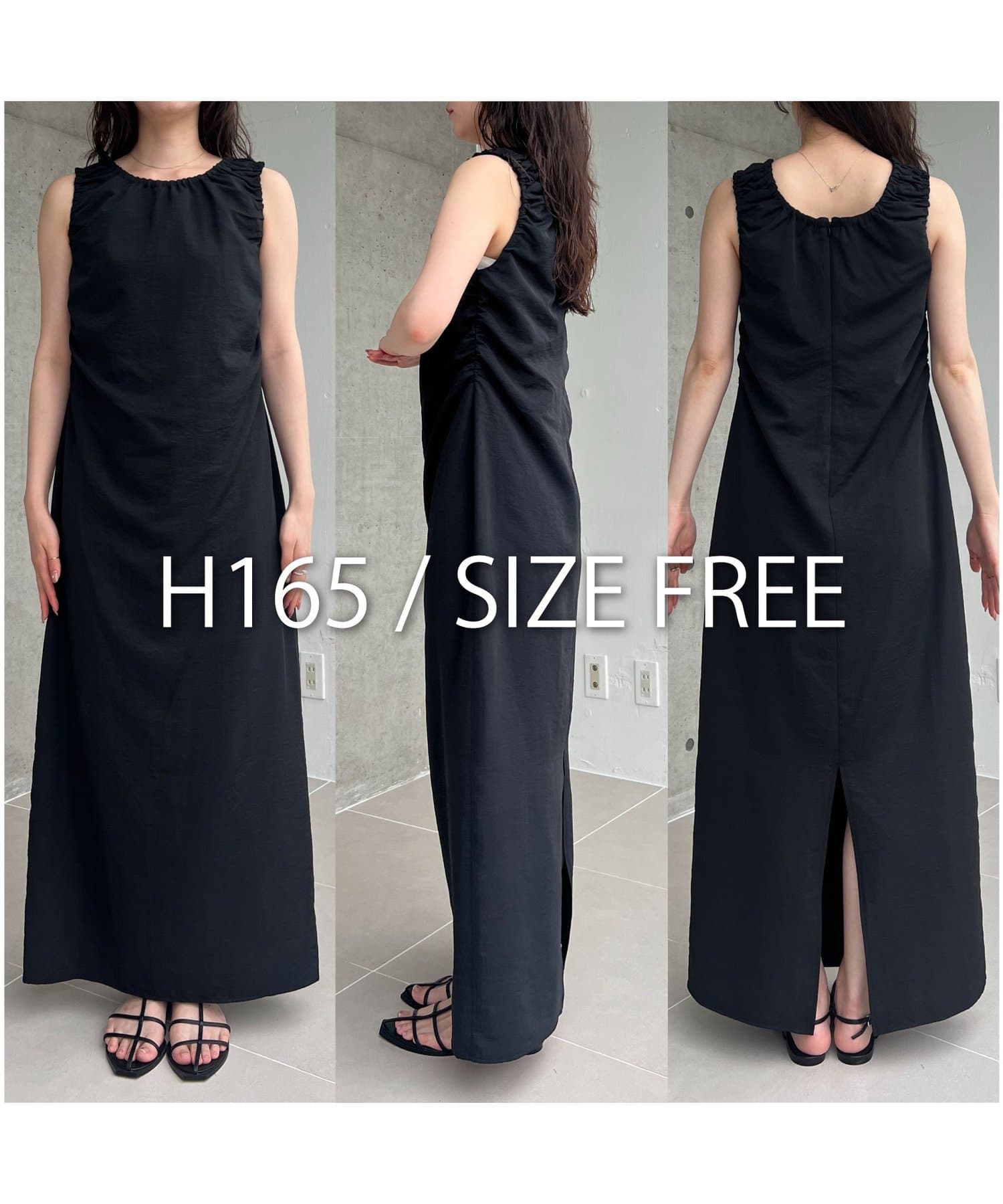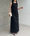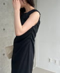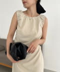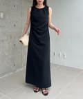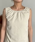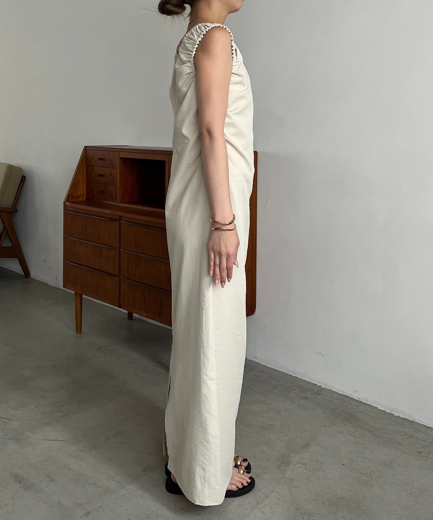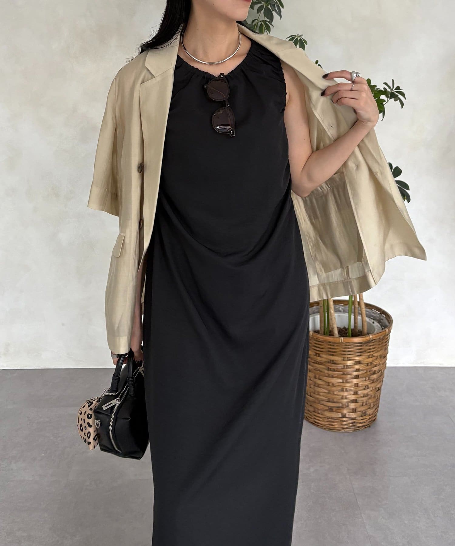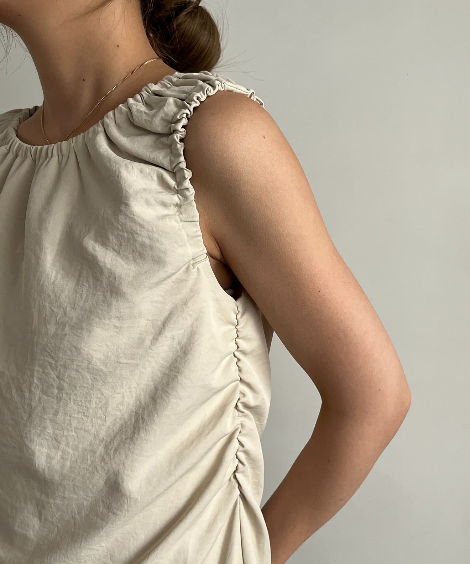 ・肩周りのギャザーがポイントの大人シンプルなワンピース