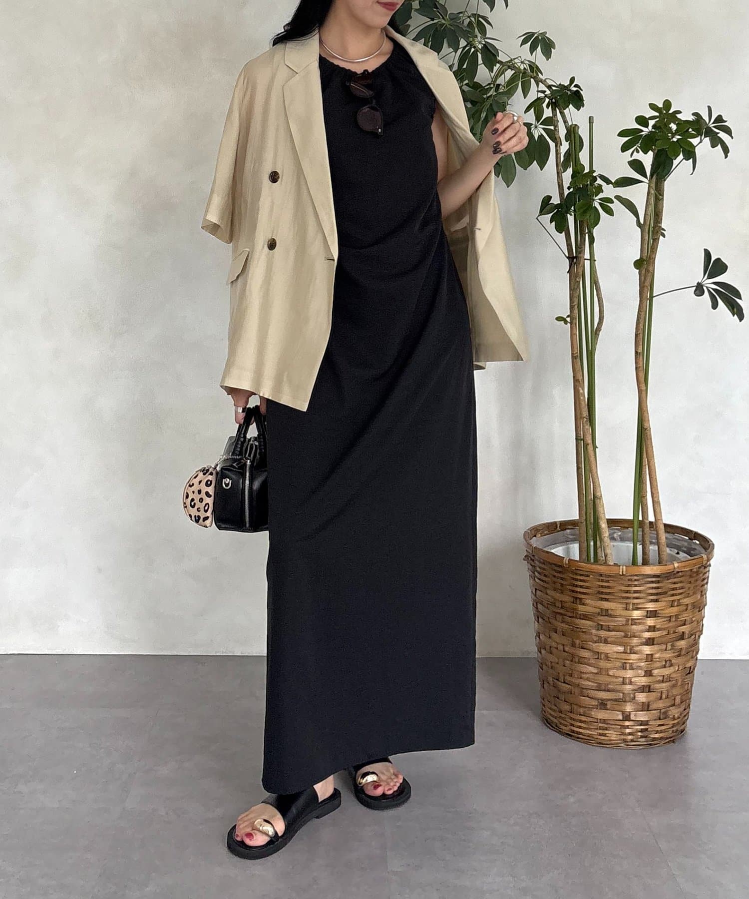 ・シワ感のあるカジュアルな素材でドレッシーになりすぎないレマージュらしい1枚