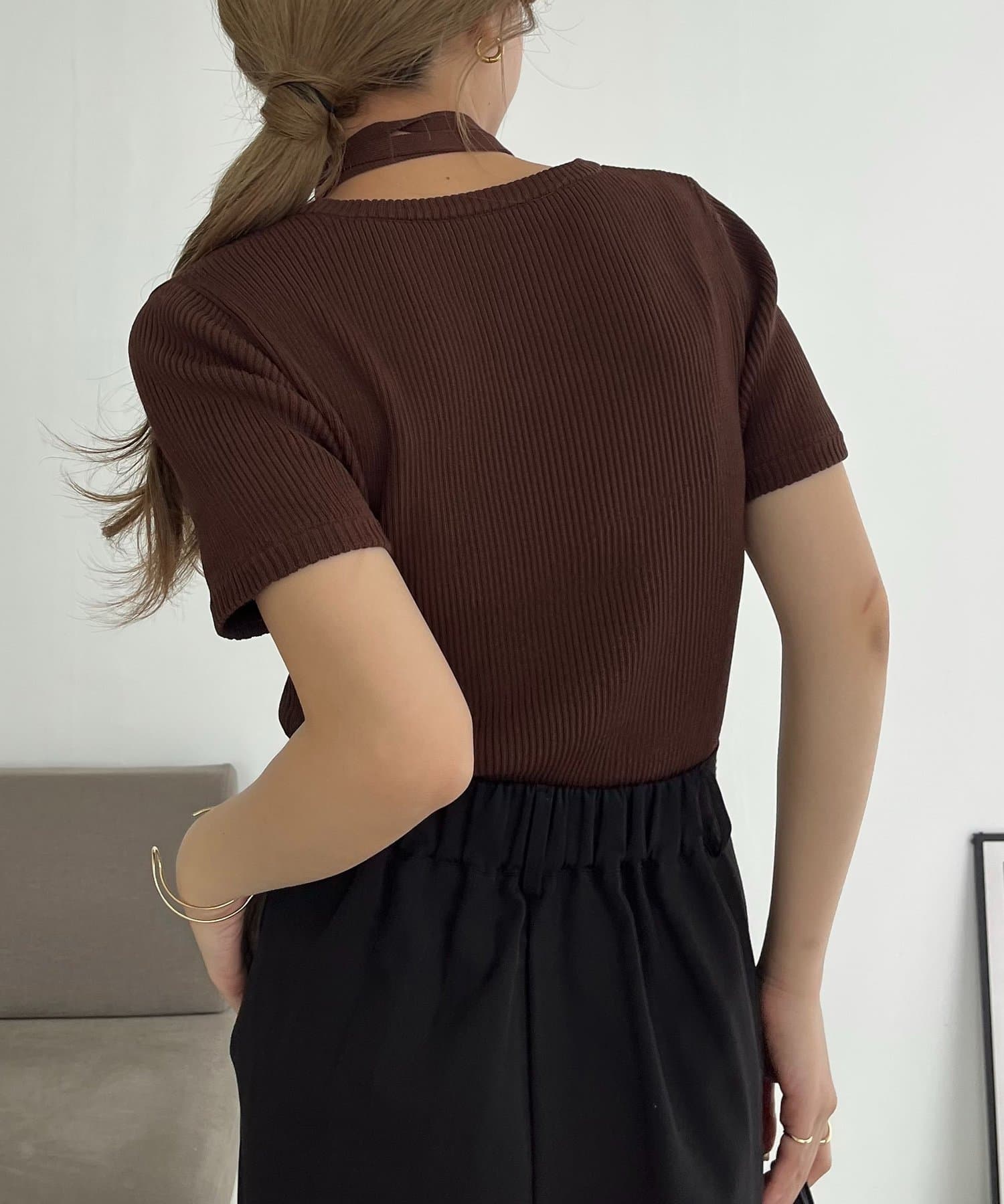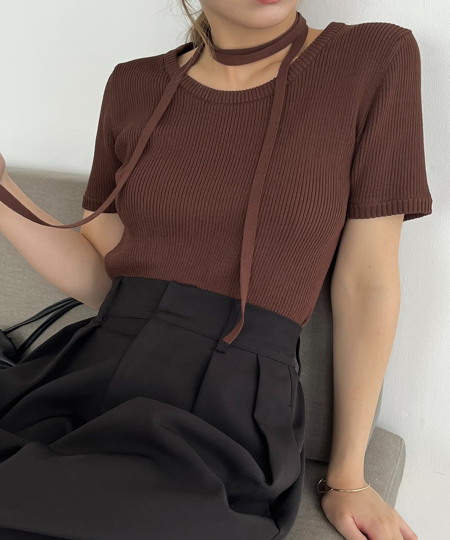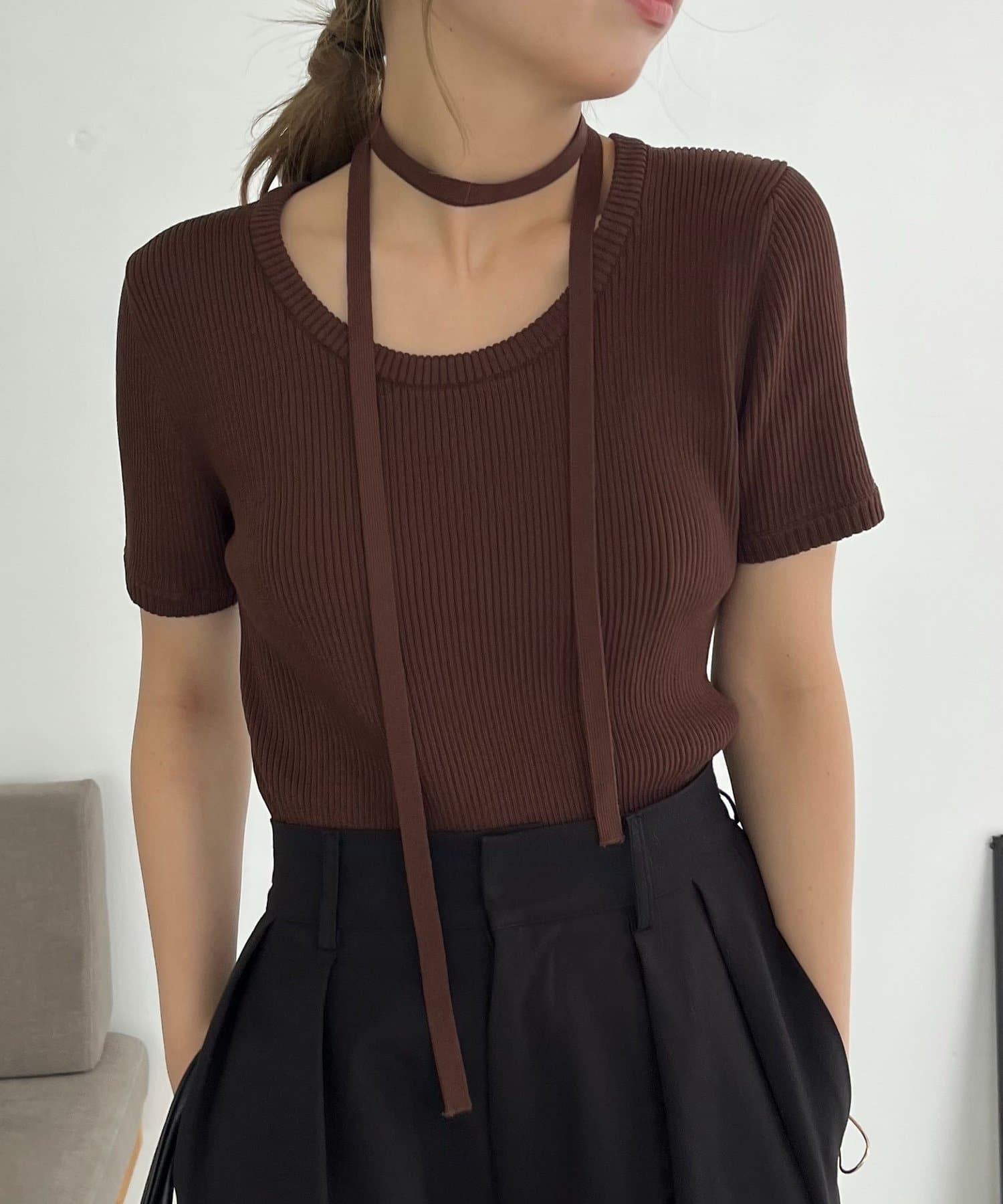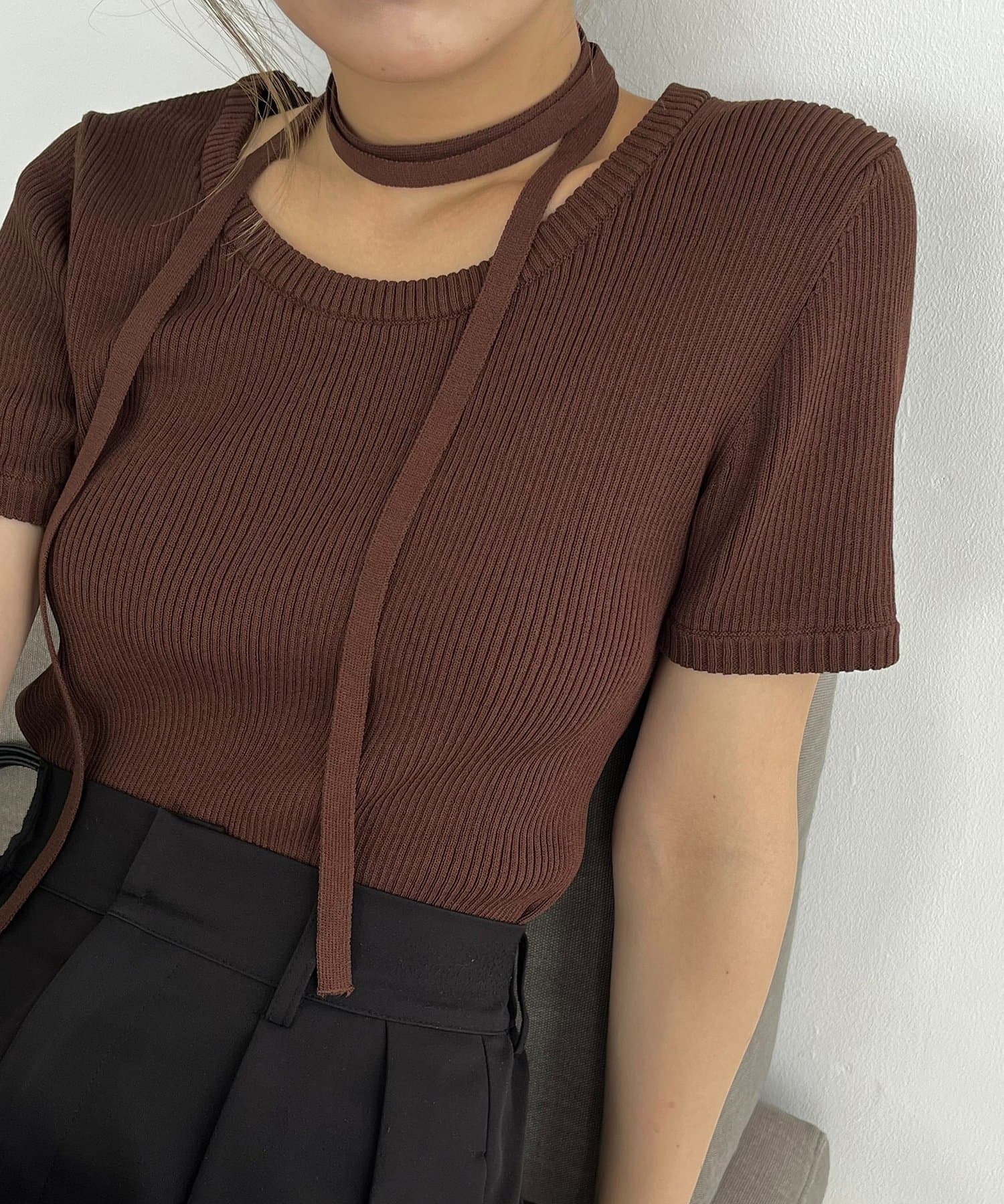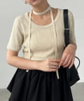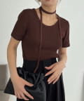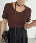 トレンド感◎チョーカーセットの半袖ニット