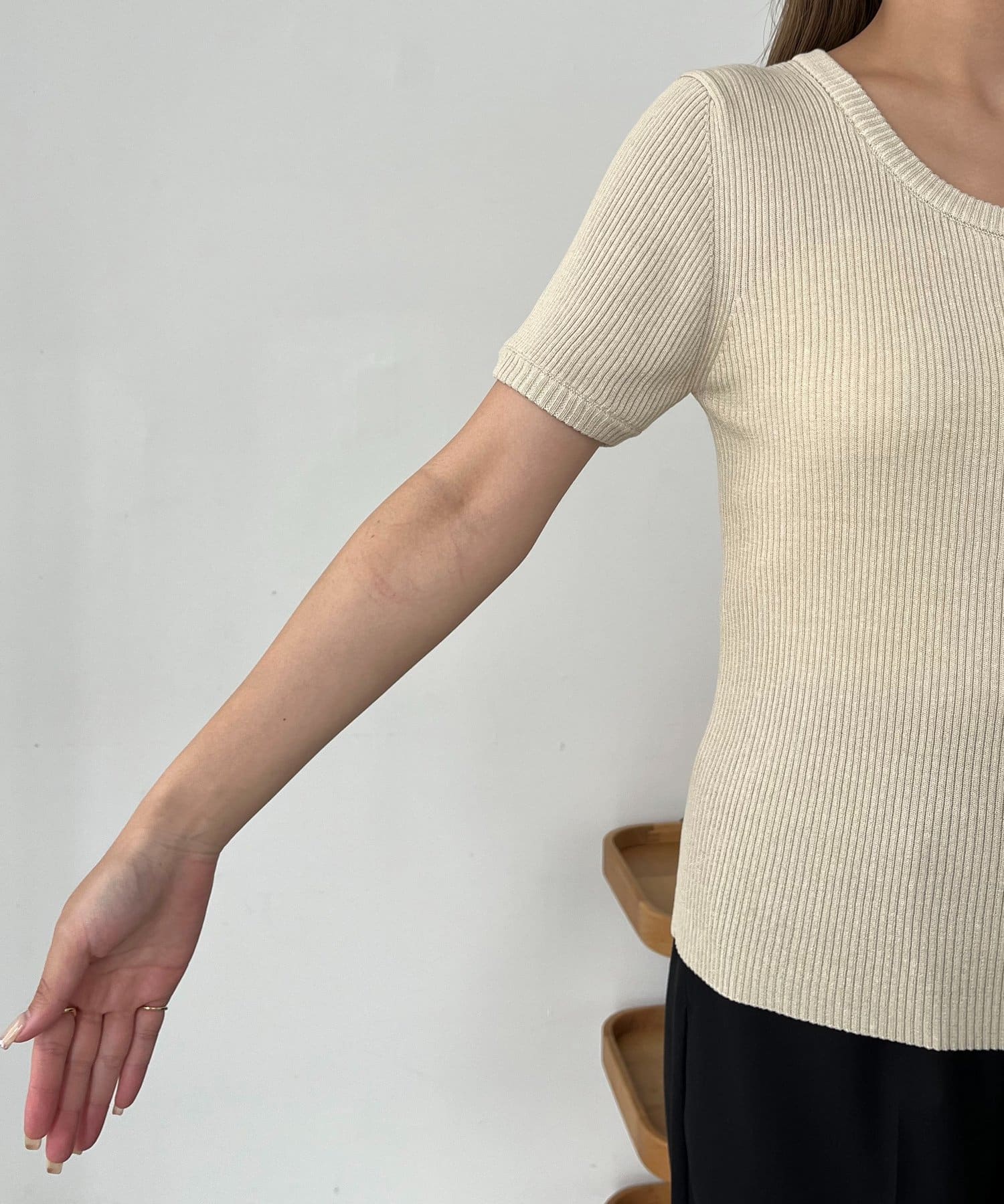 ・薄手過ぎずラインを拾いにくいドライタッチな夏ニット