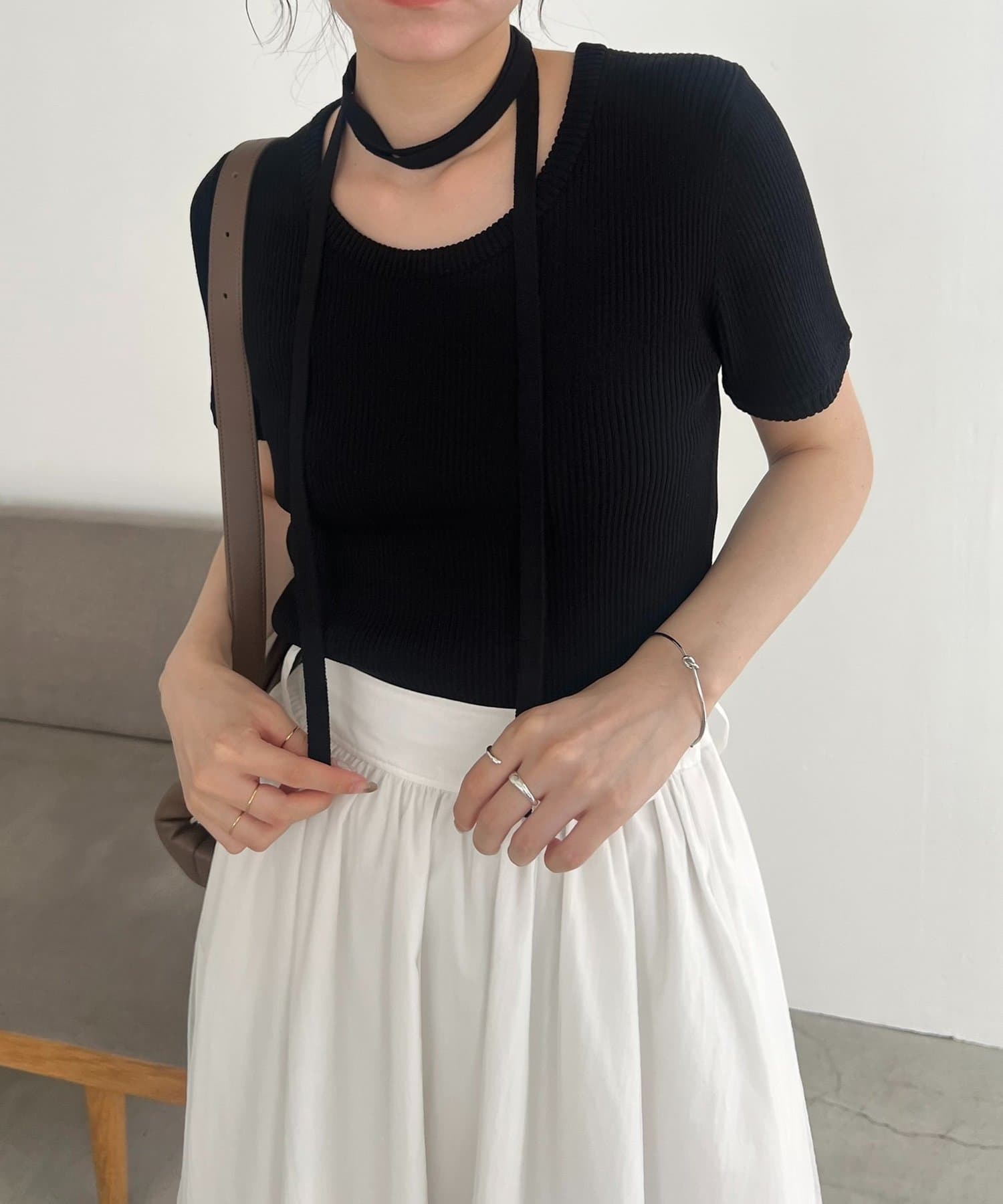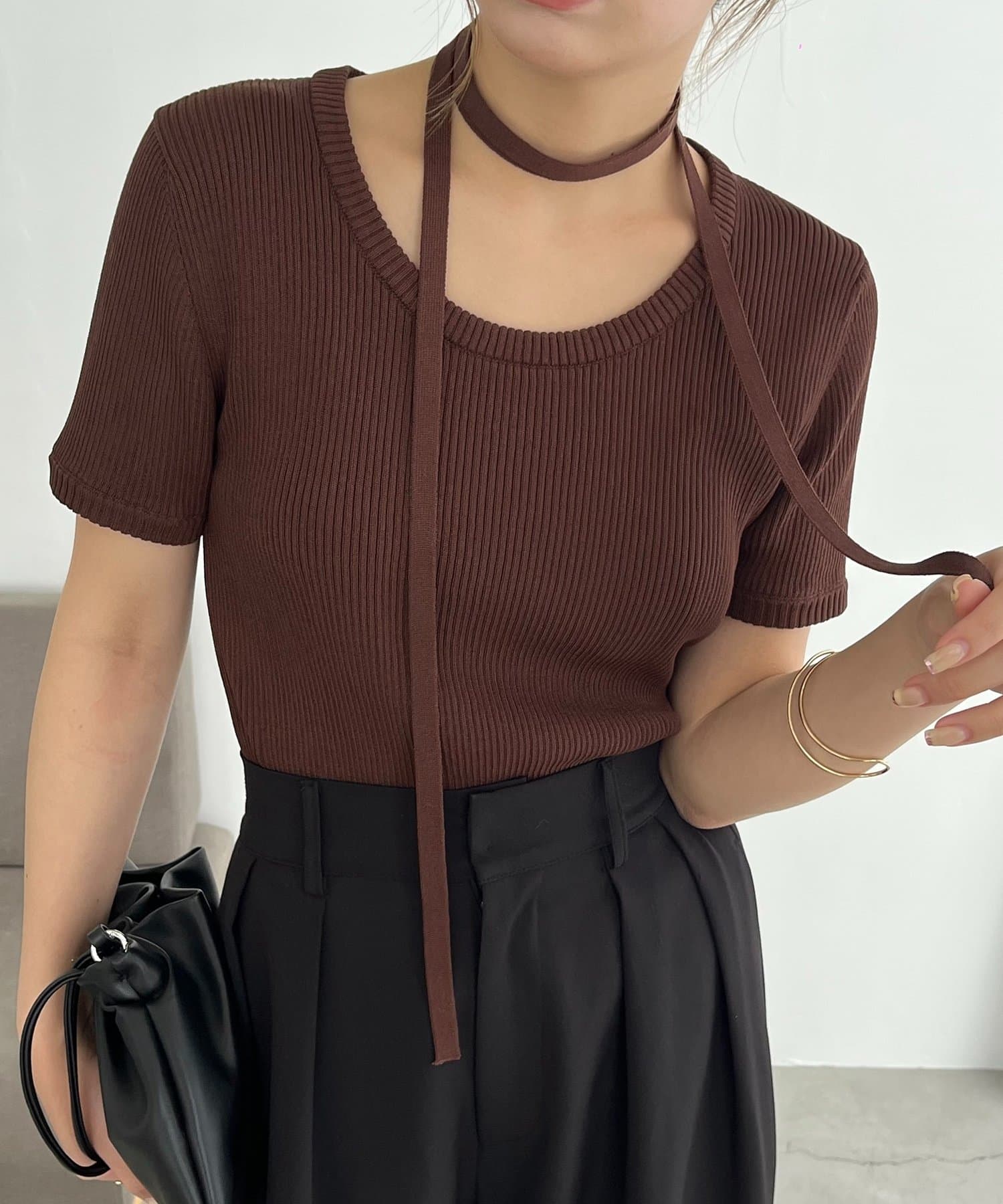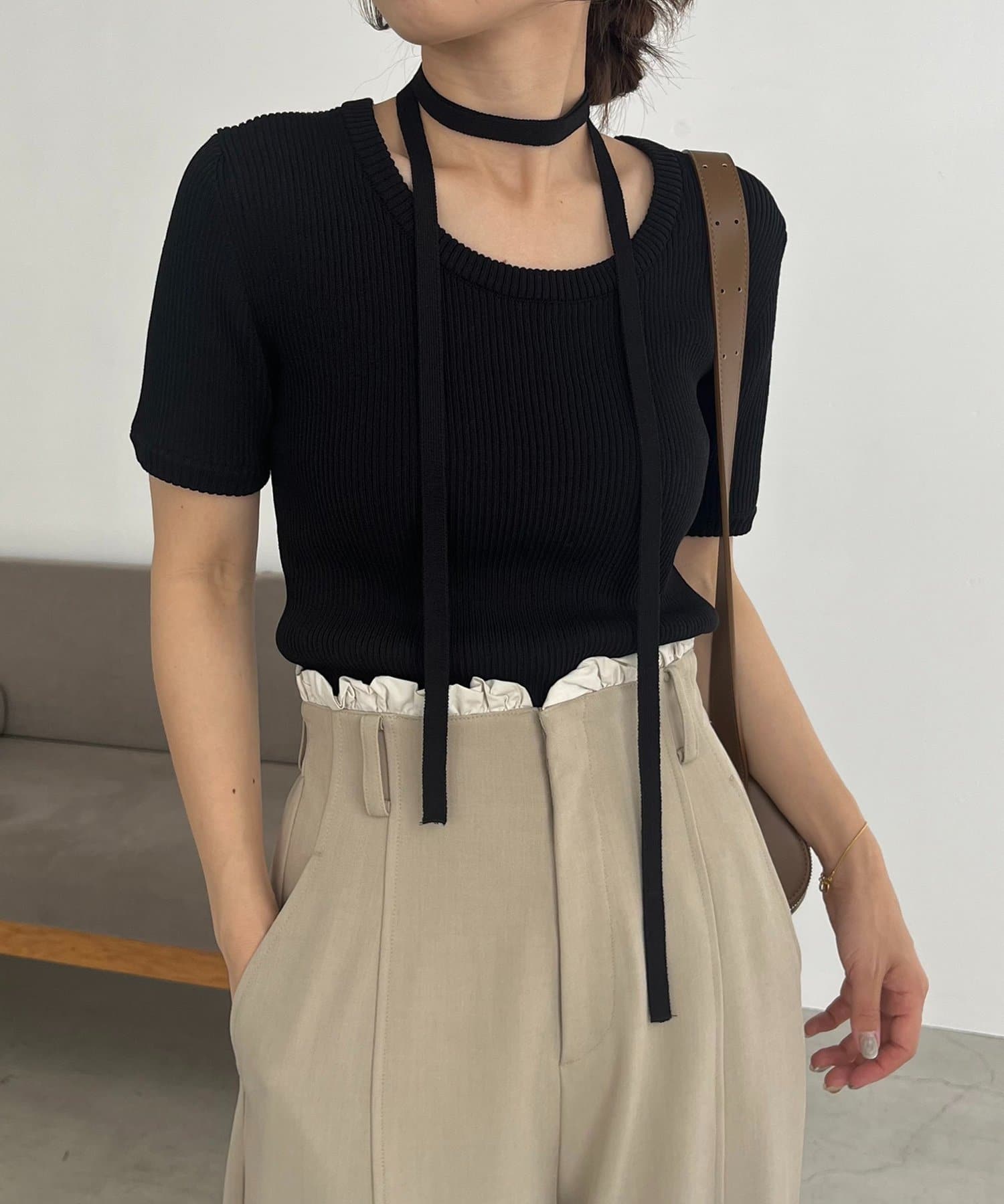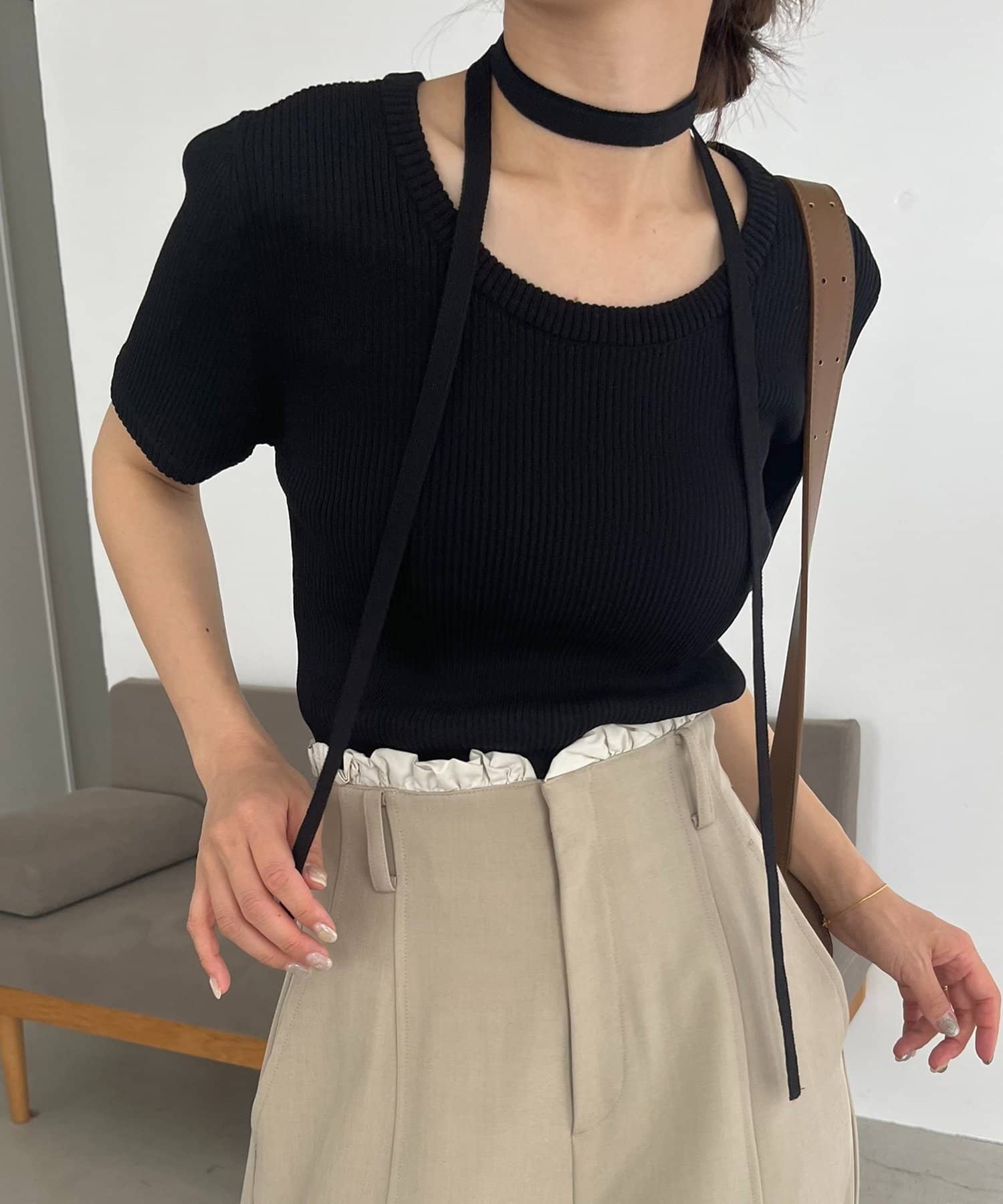 ・同素材のチョーカーがセットになっておりトレンドライクなスタイリングに
