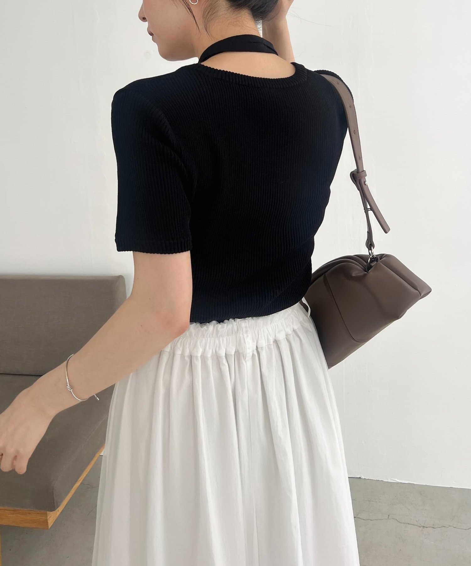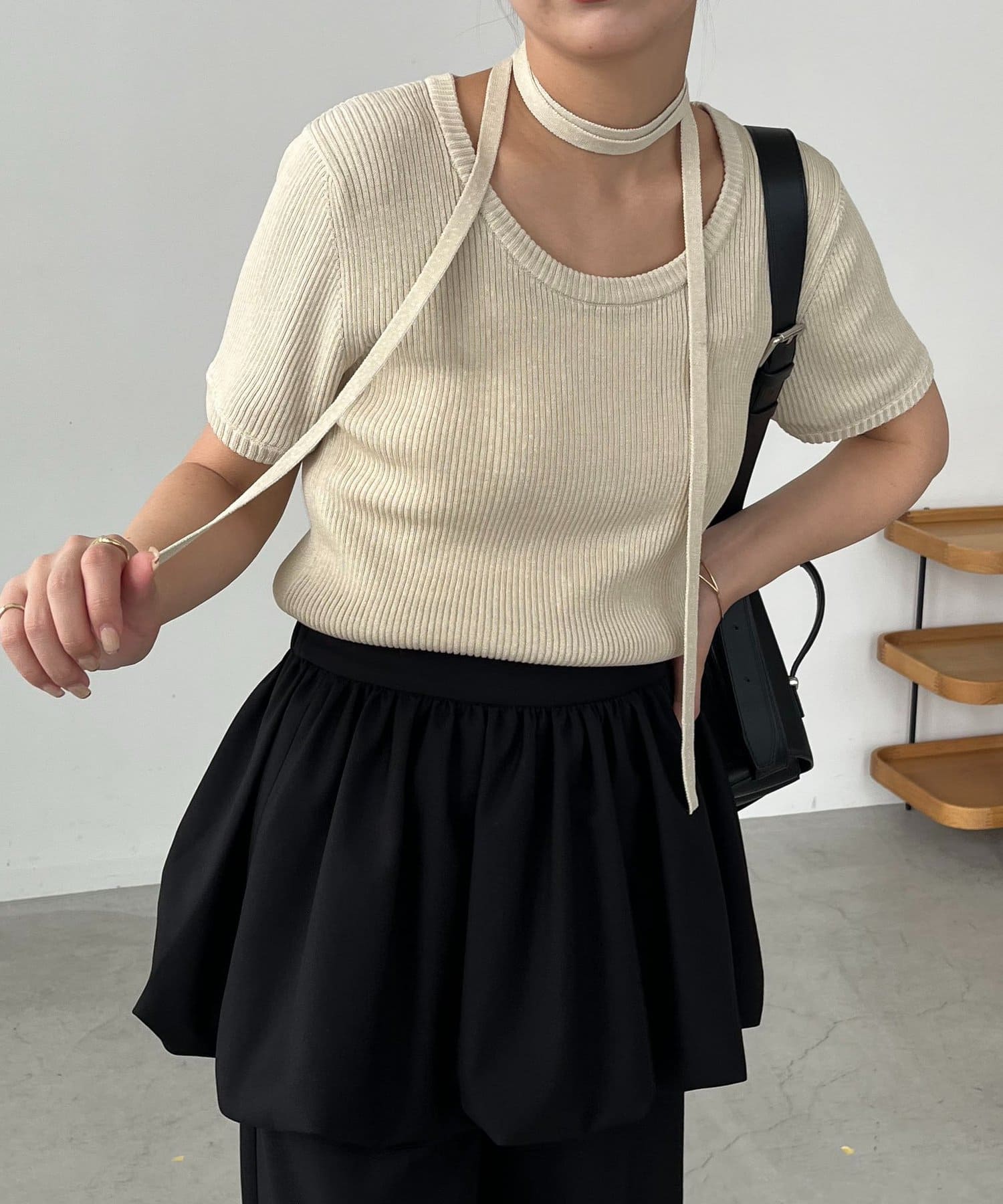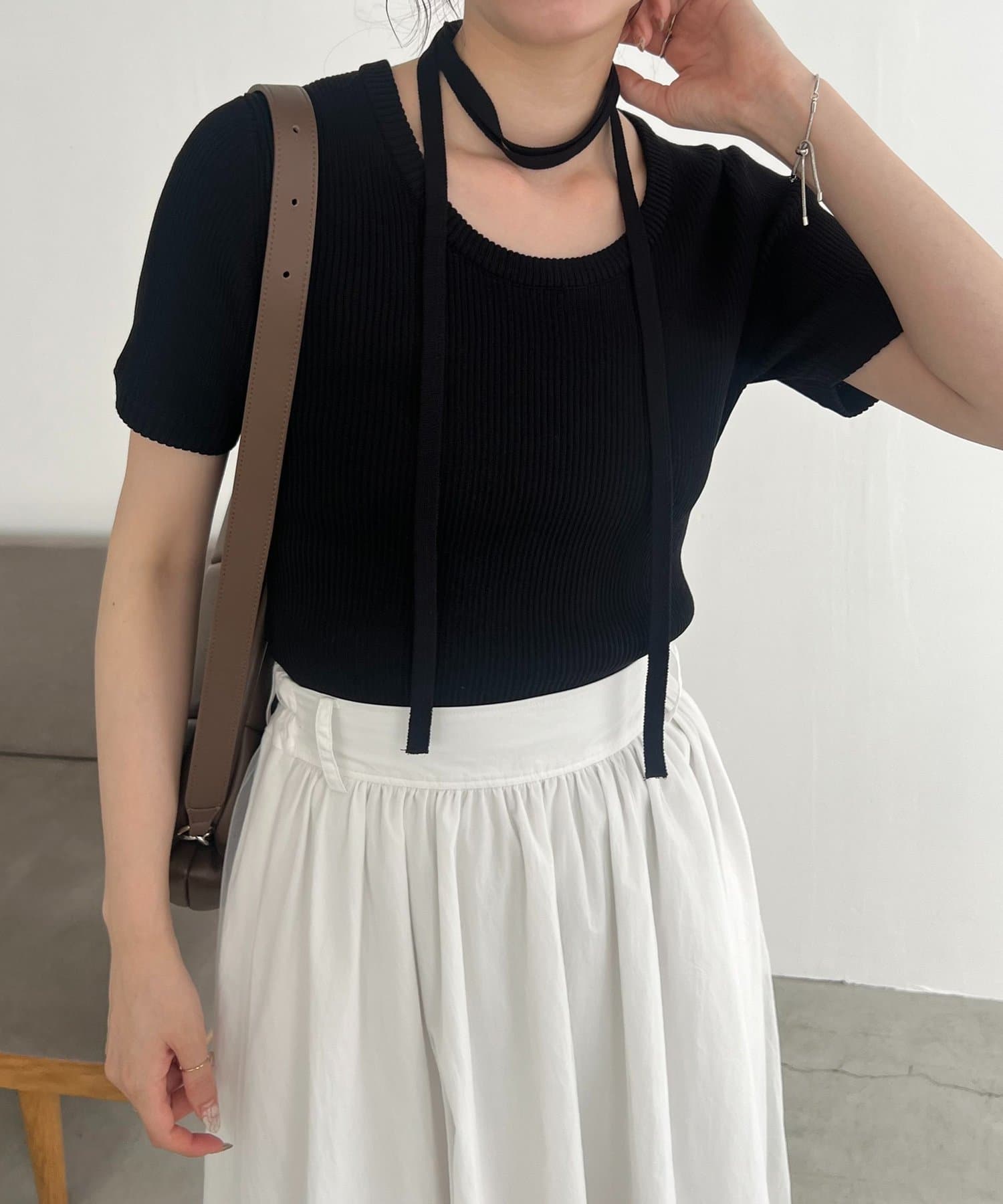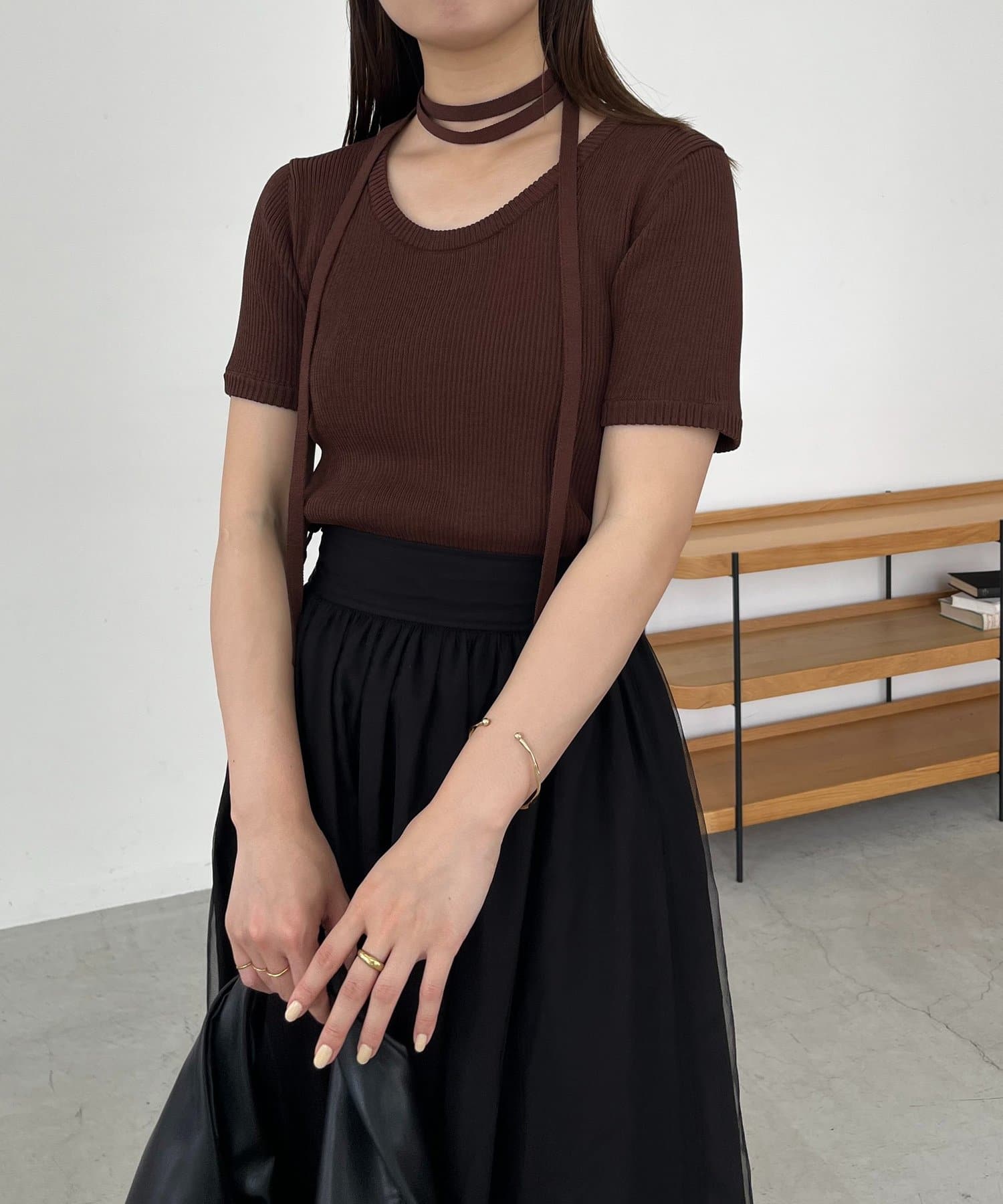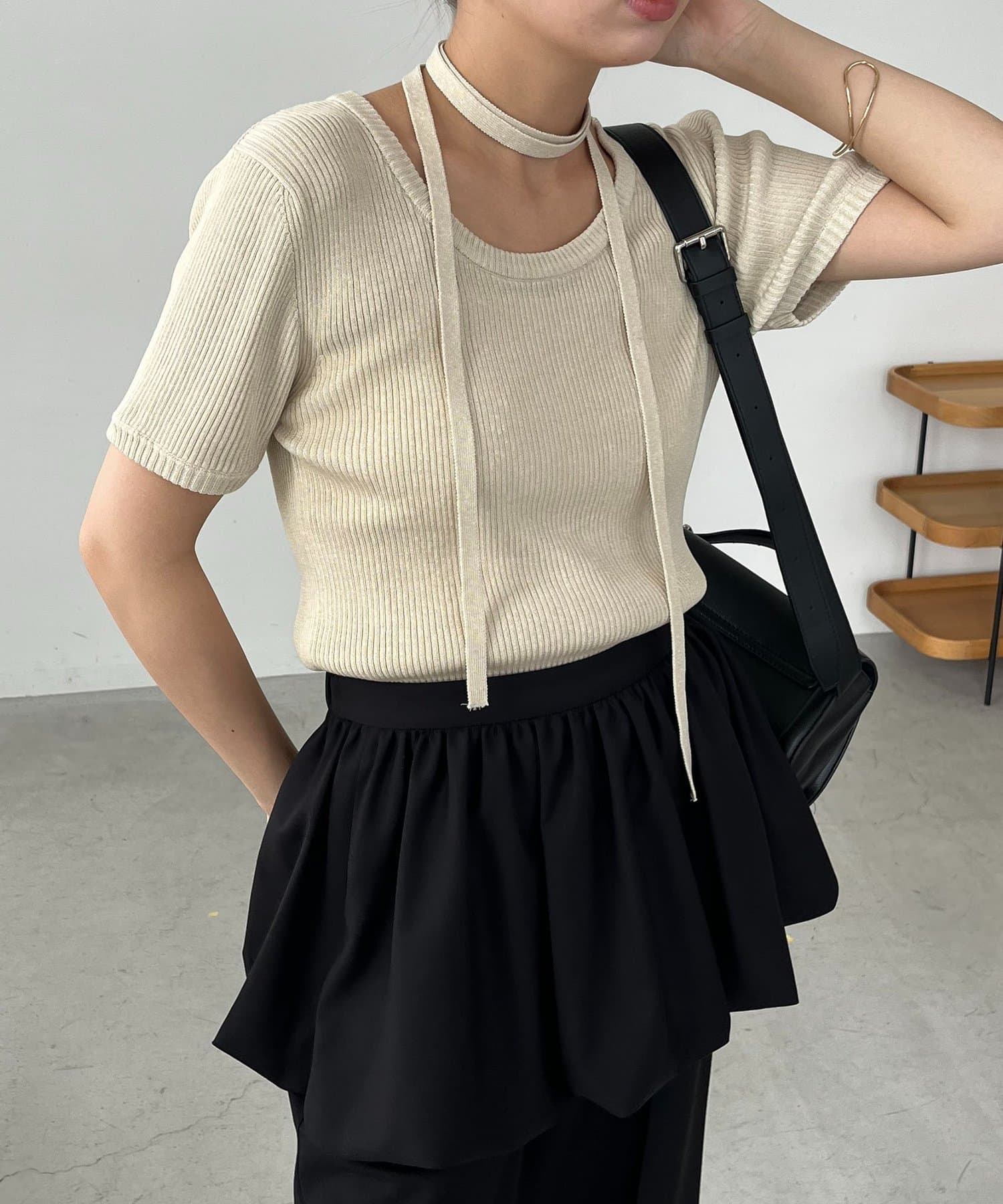 ・同素材のチョーカーがセットになっておりトレンドライクなスタイリングに