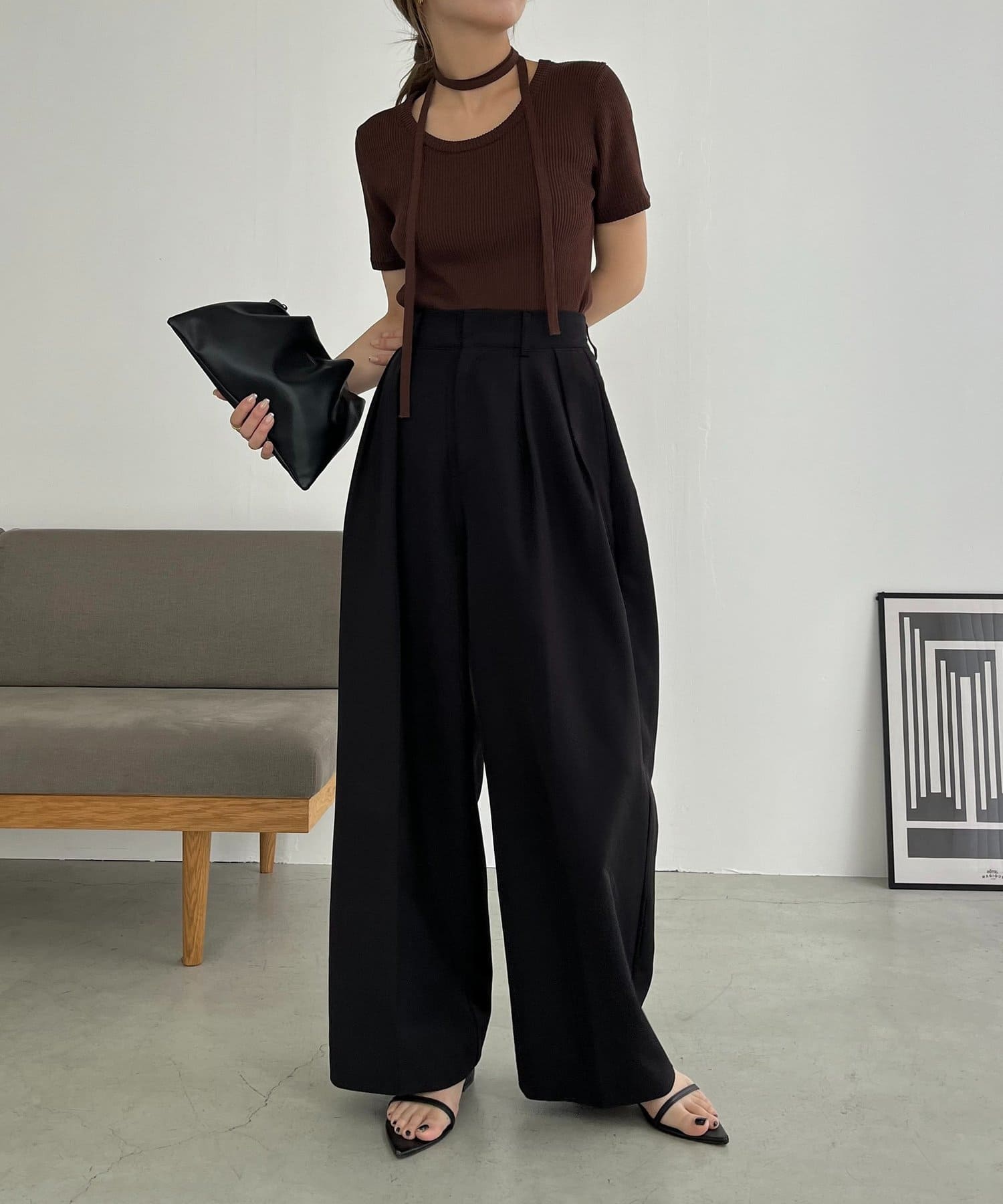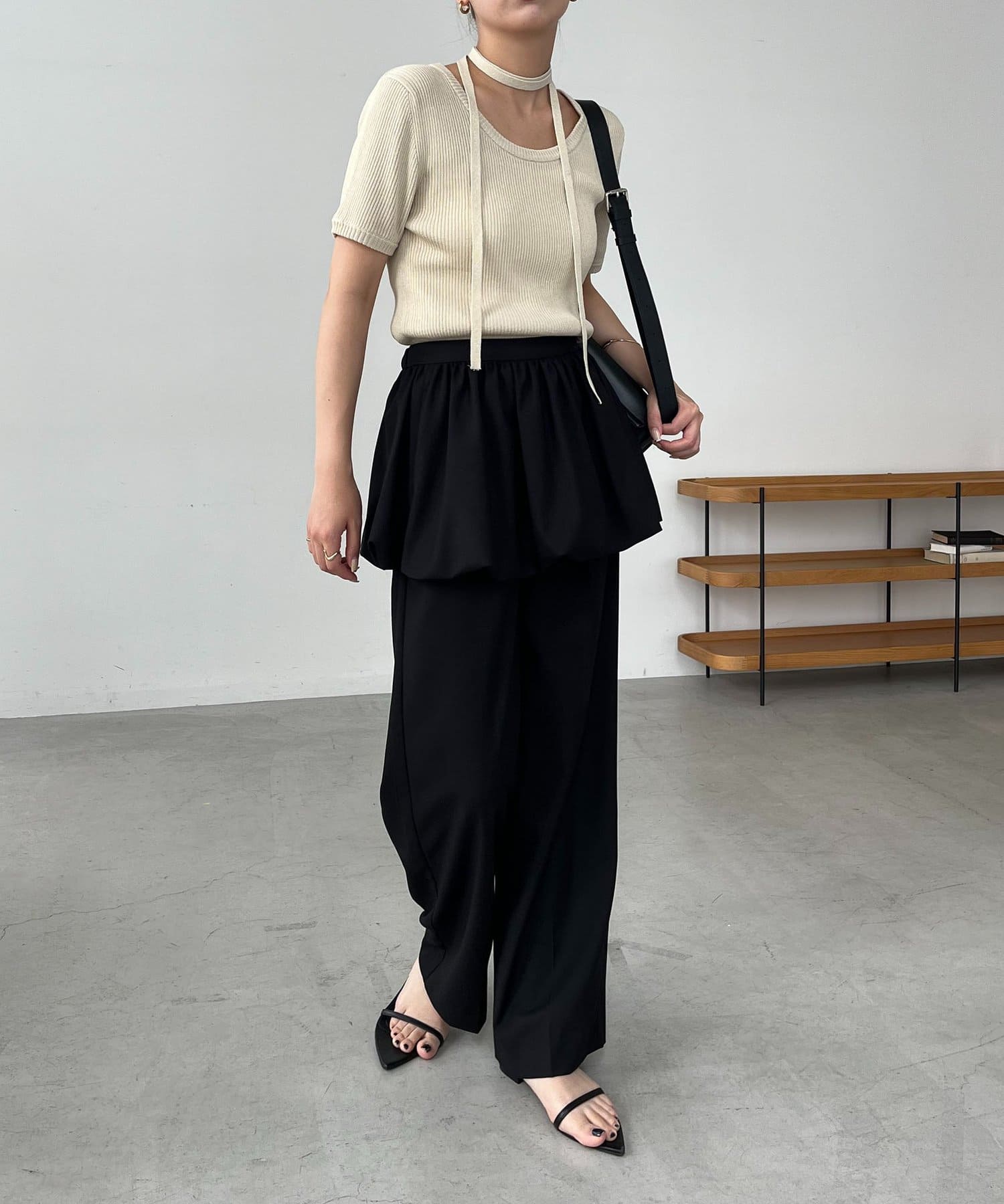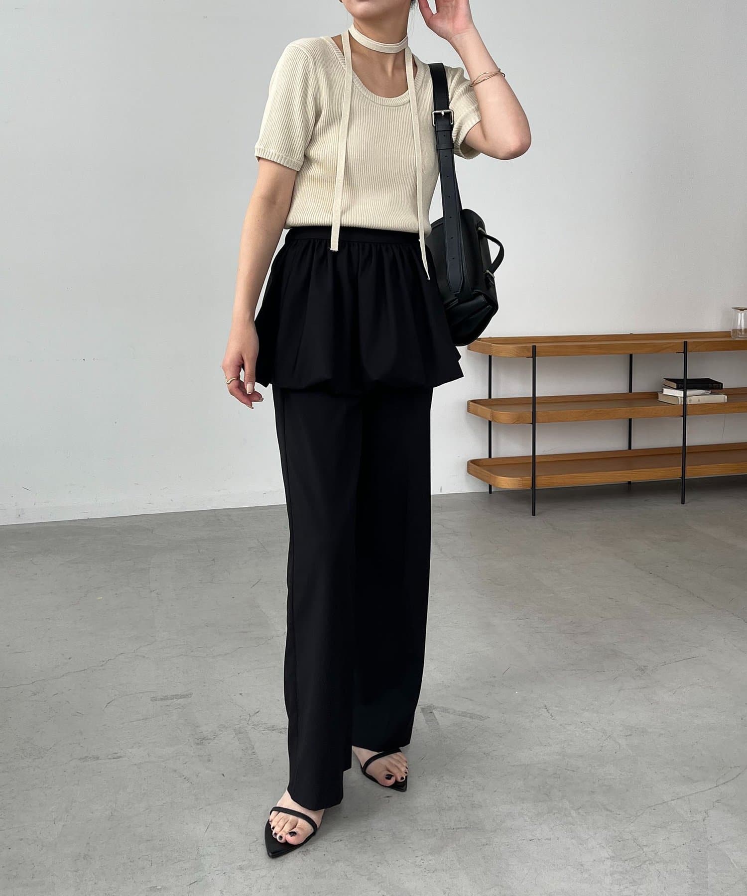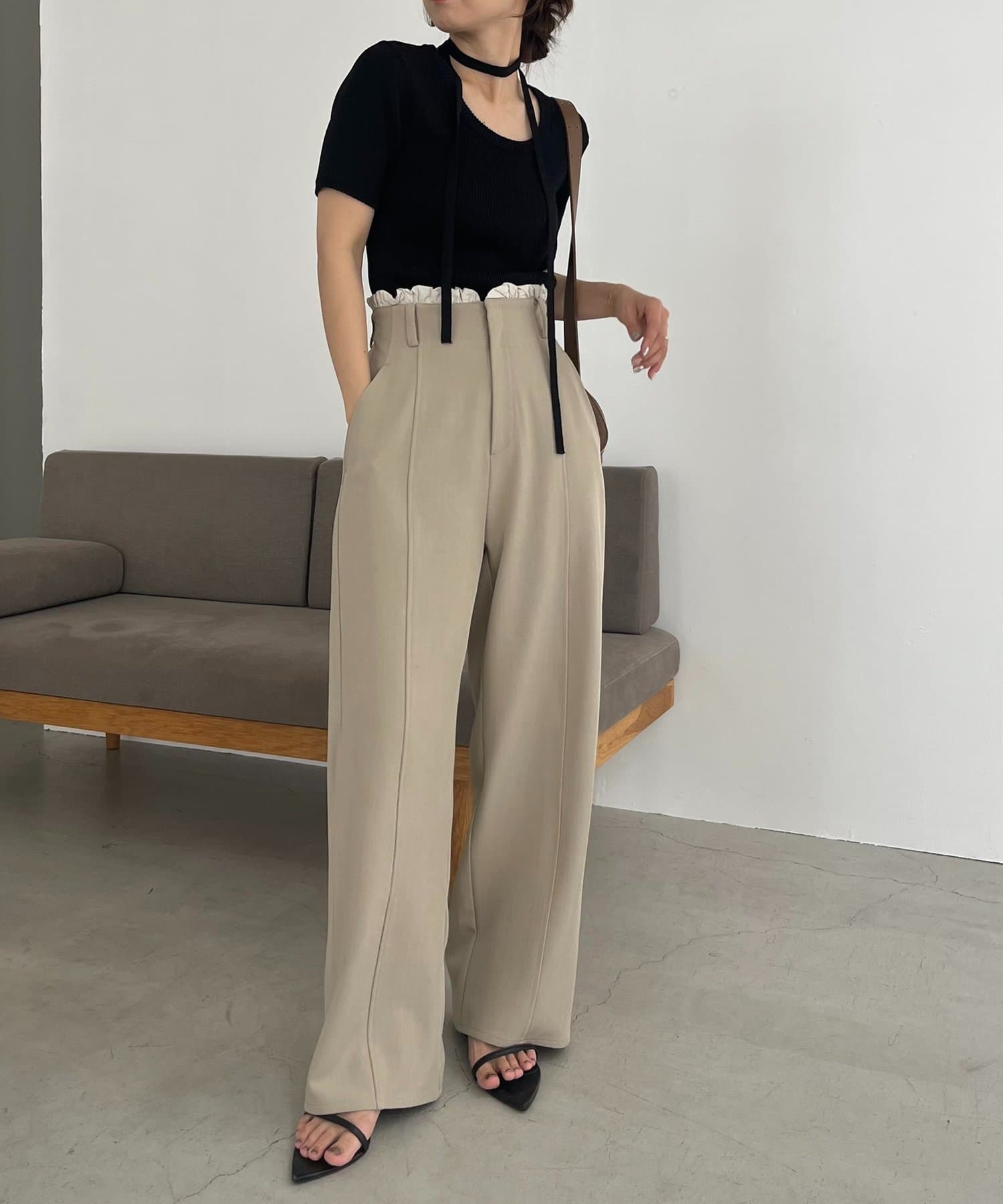 【ブラック着用アイテム①】フリルウエストパンツ
