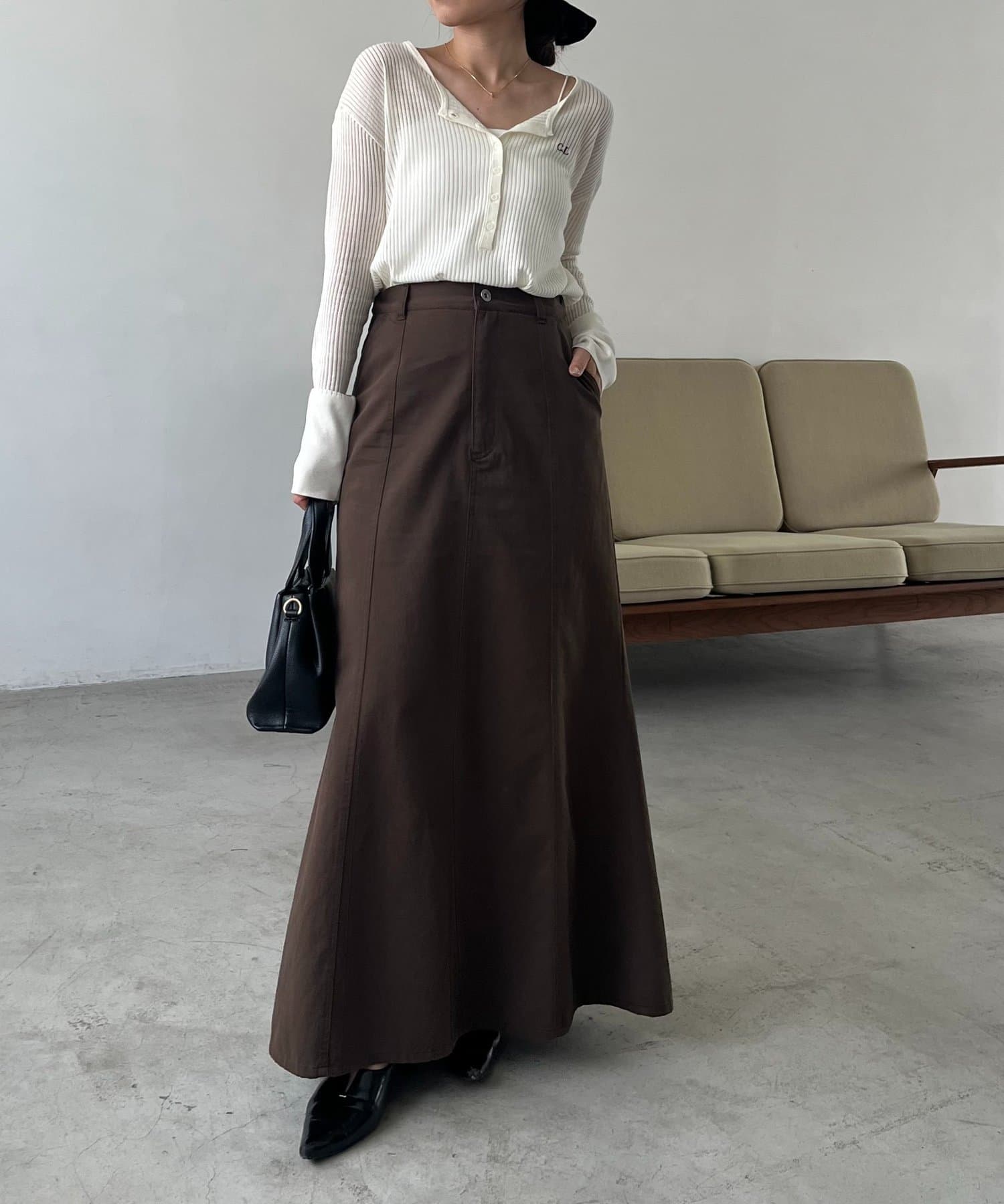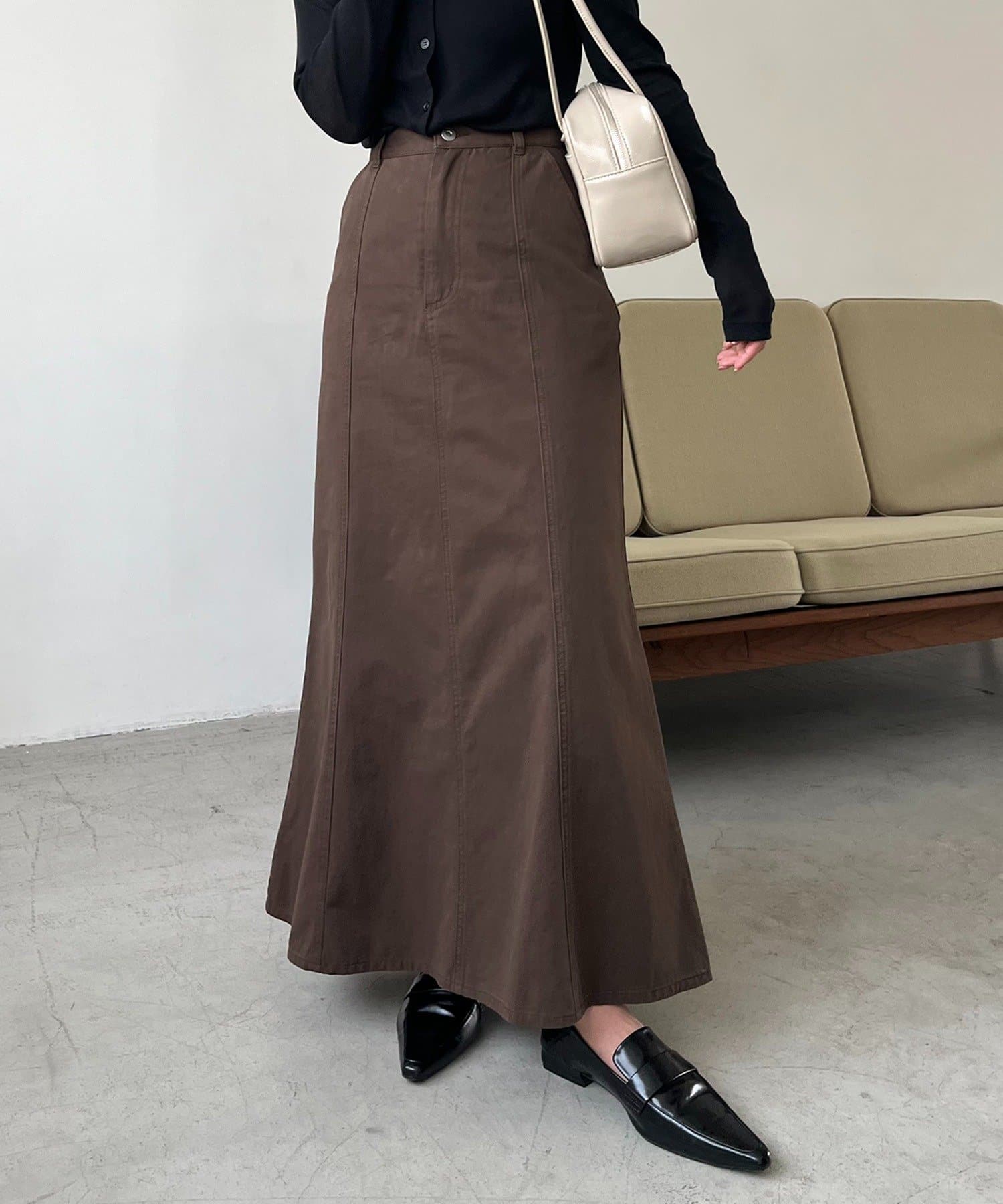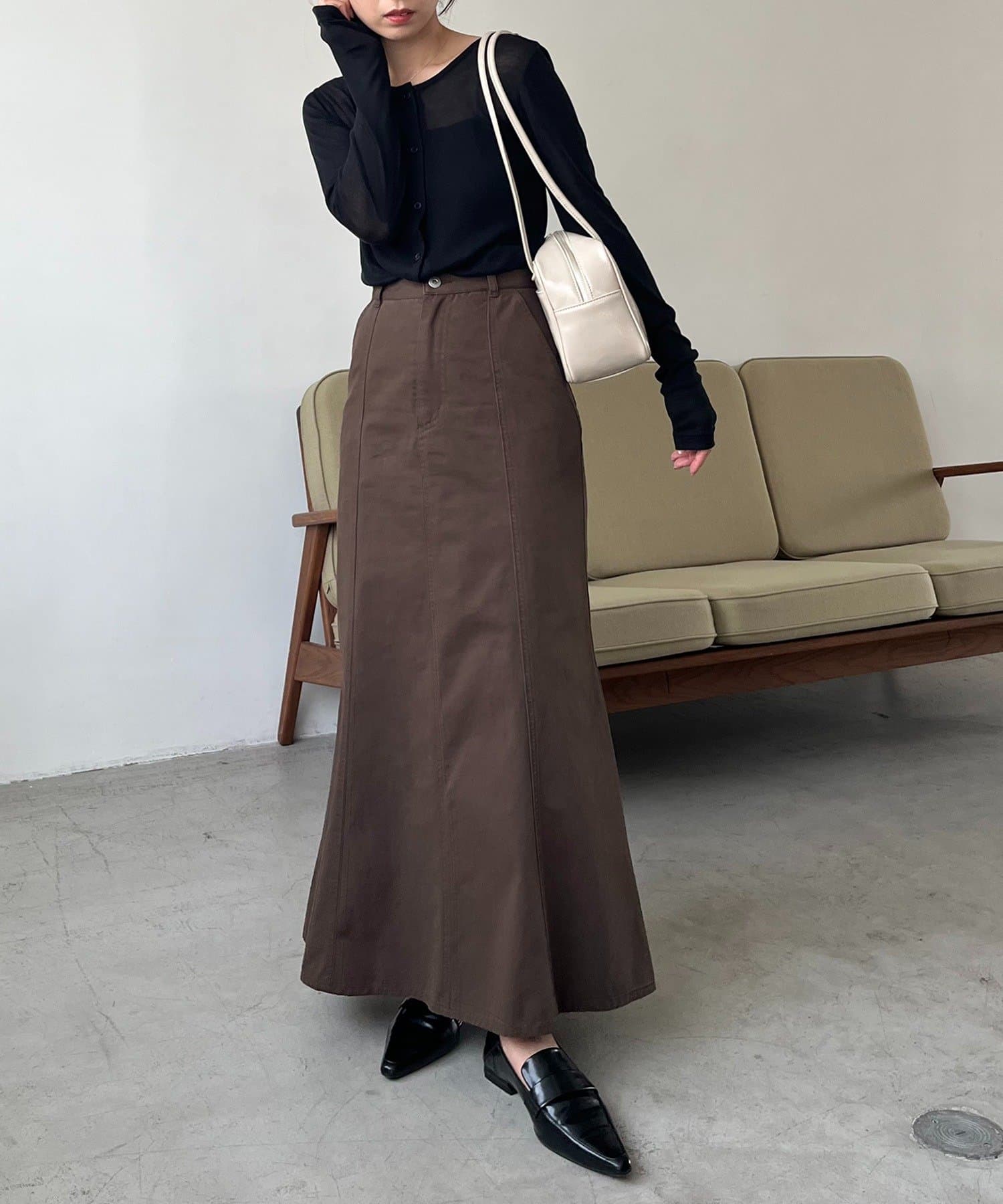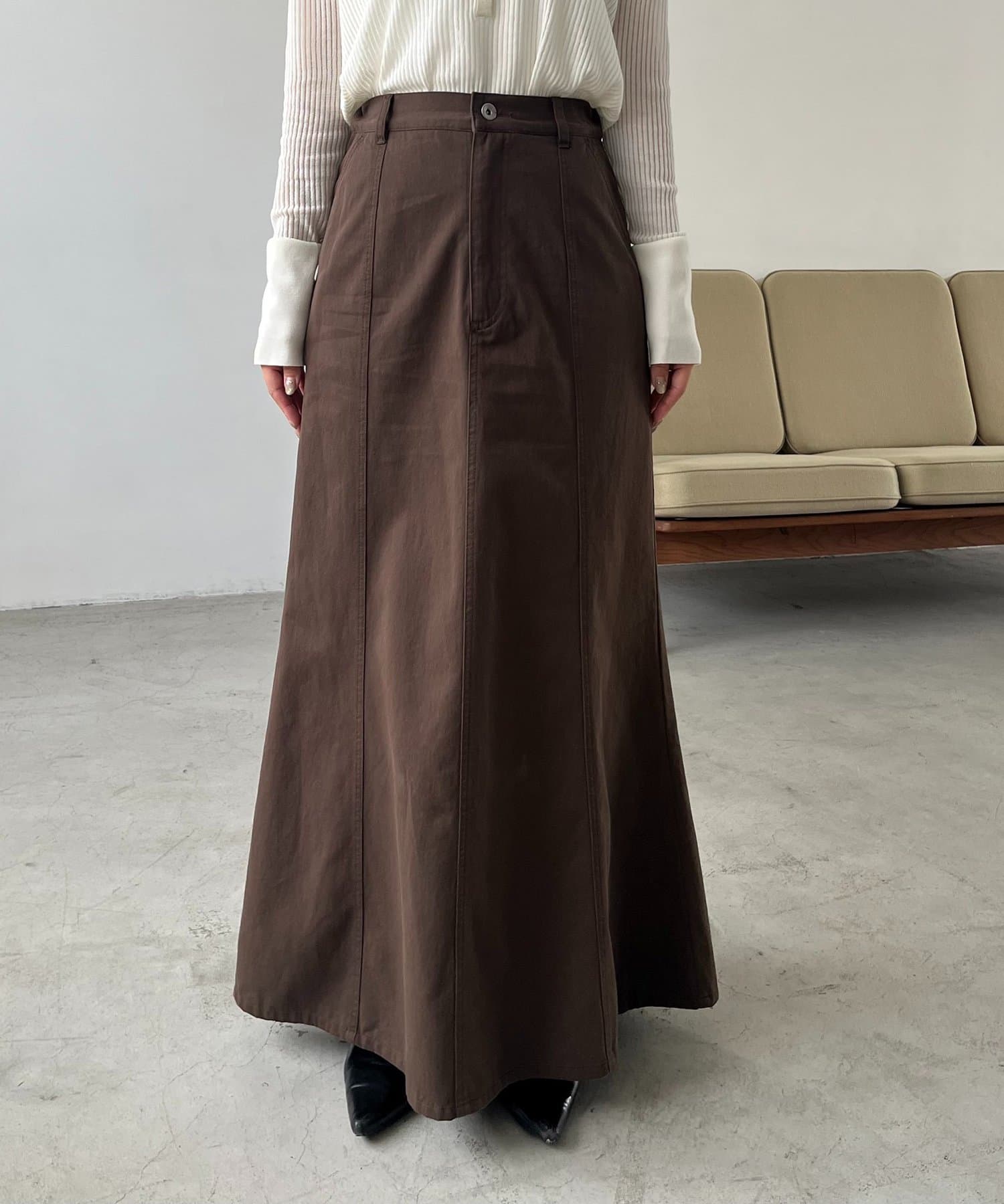 ・膝まではIラインで裾に向かって広がる女性らしいシルエット