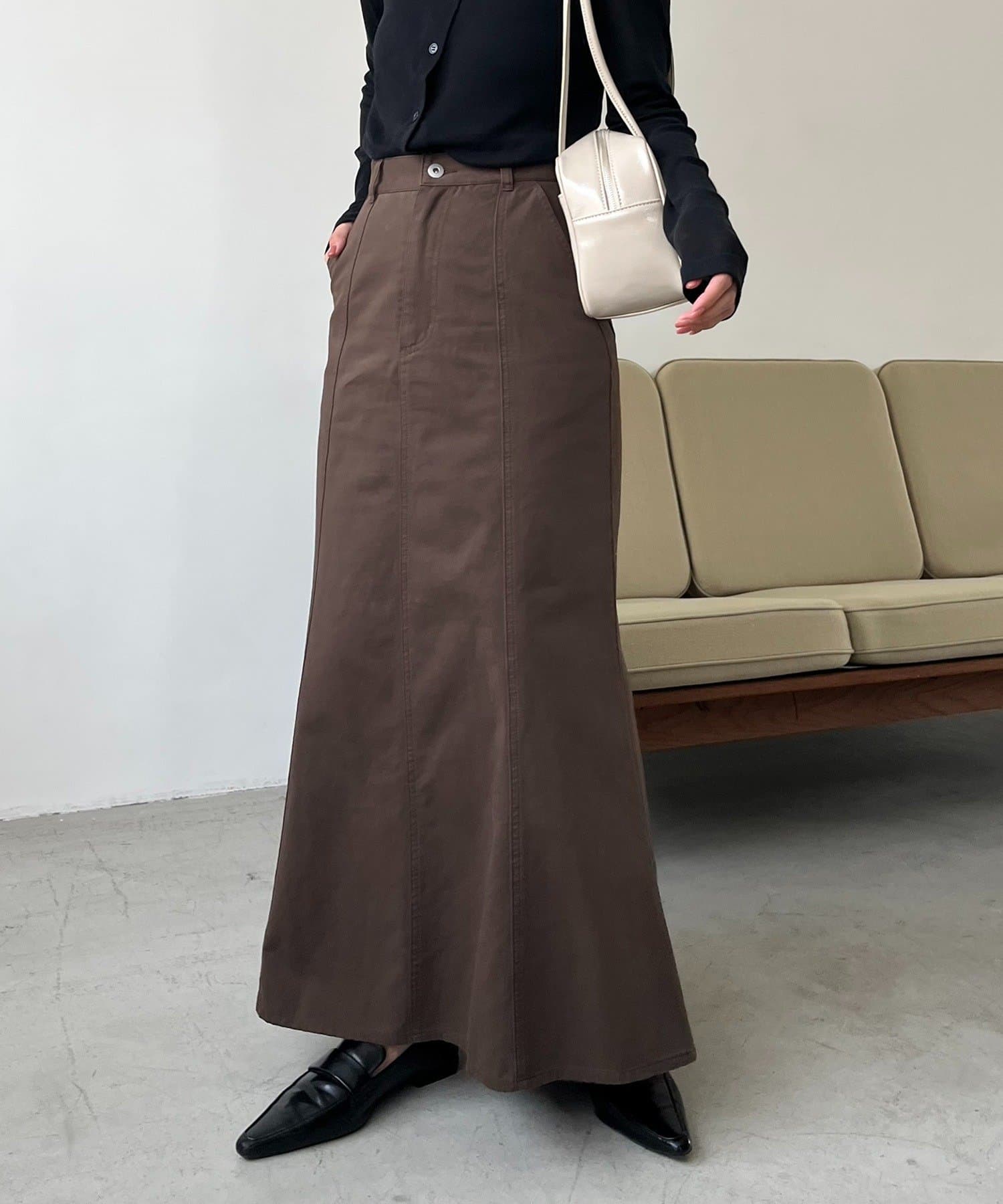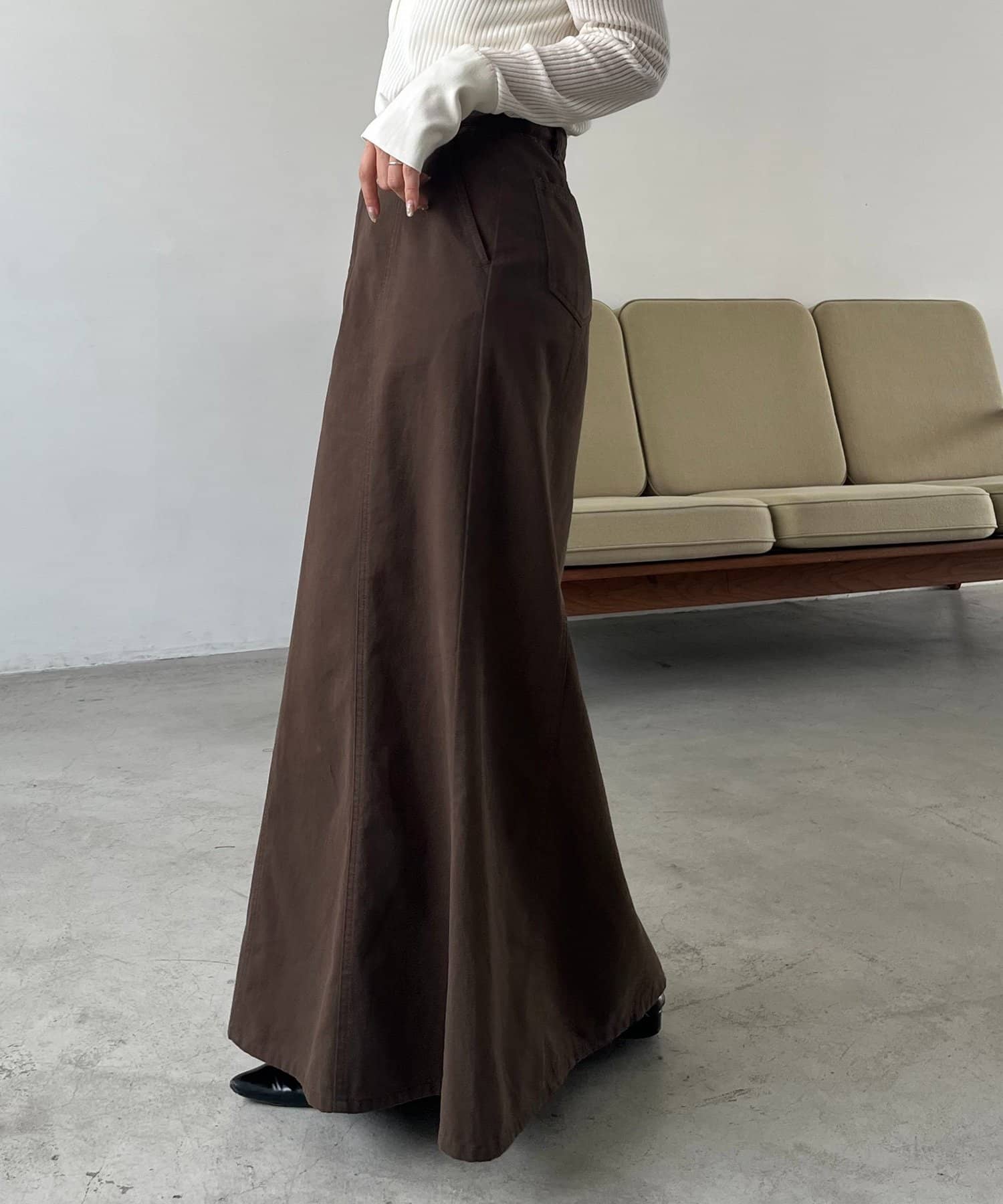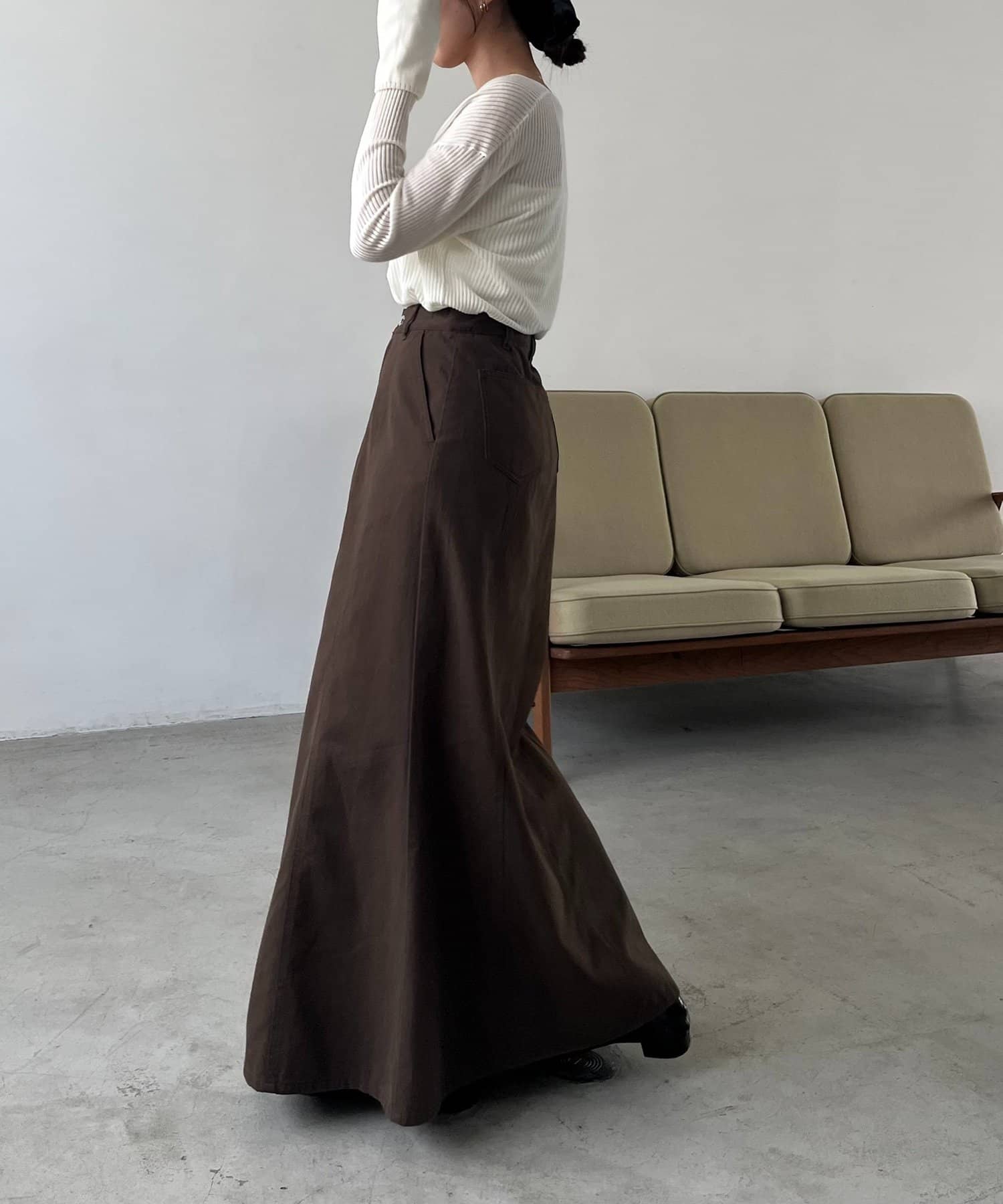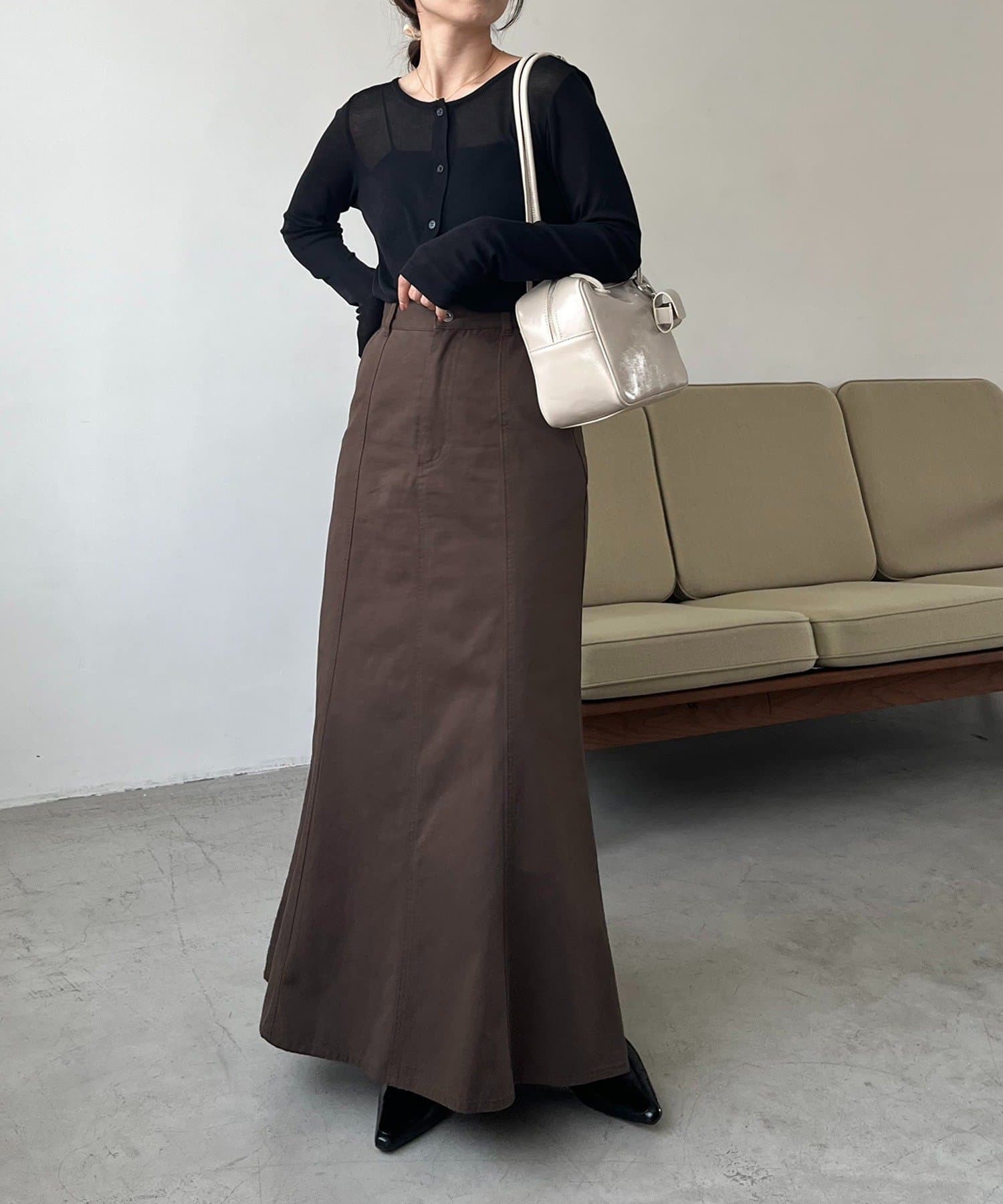 ・膝まではIラインで裾に向かって広がる女性らしいシルエット