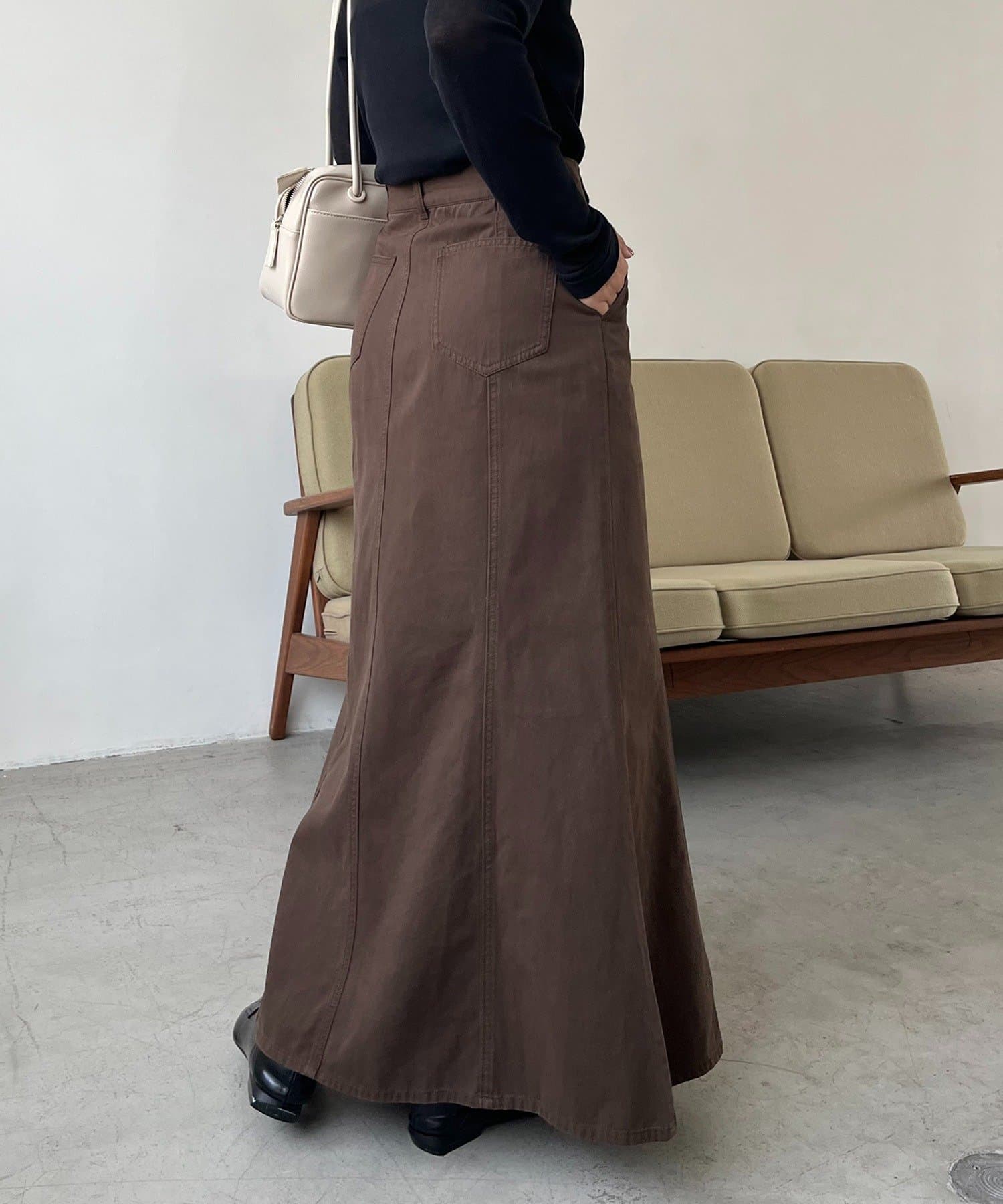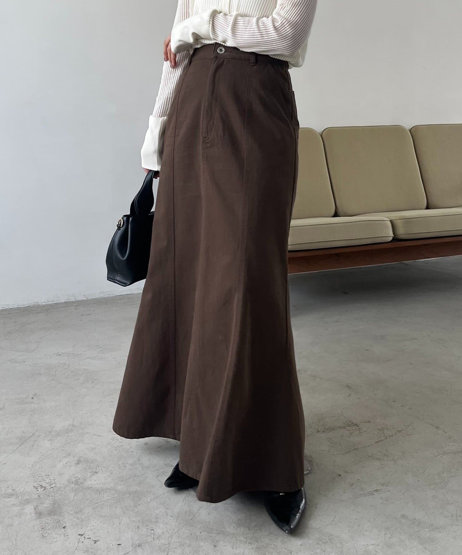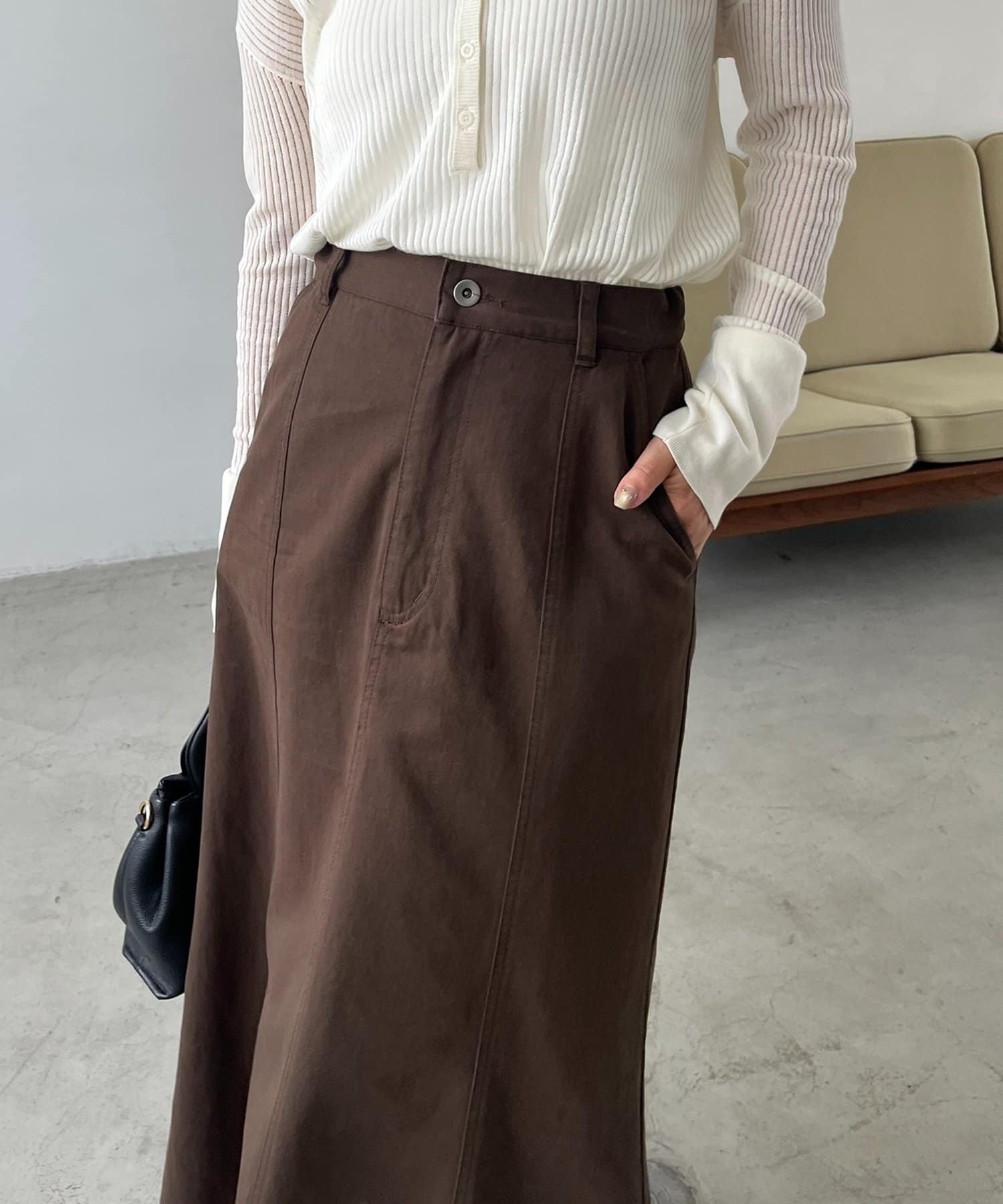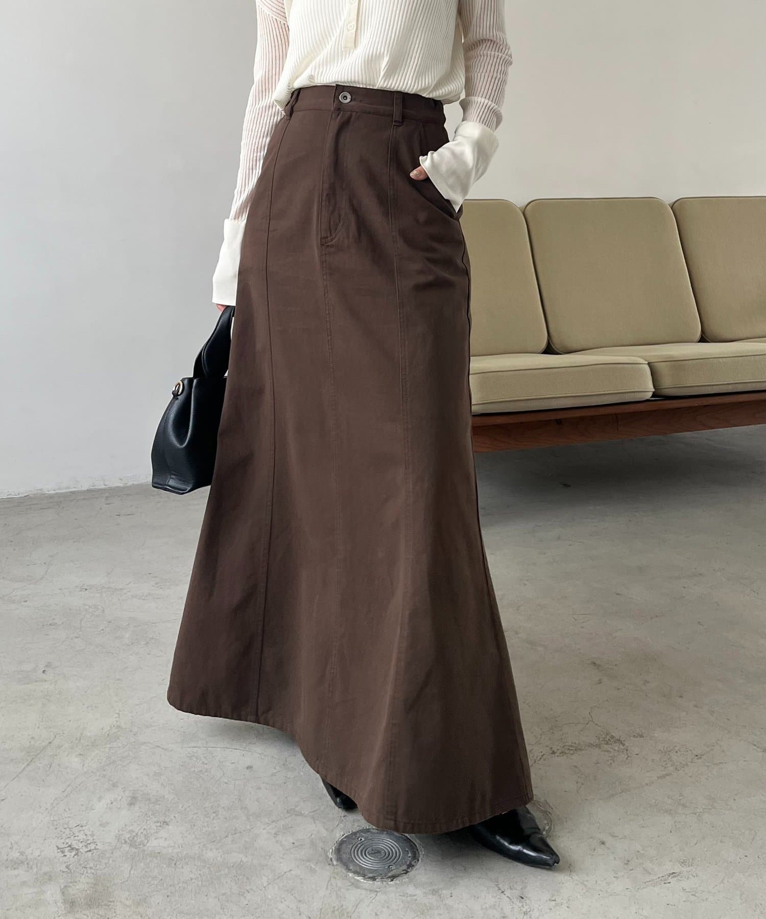 ・膝まではIラインで裾に向かって広がる女性らしいシルエット