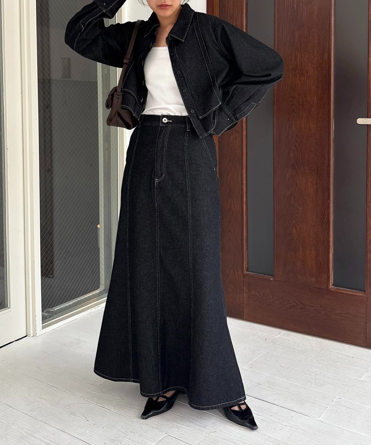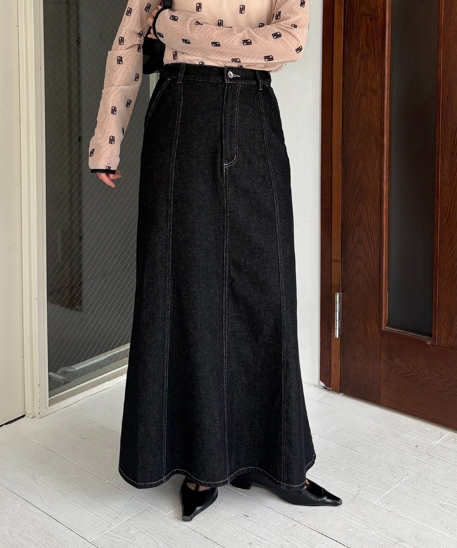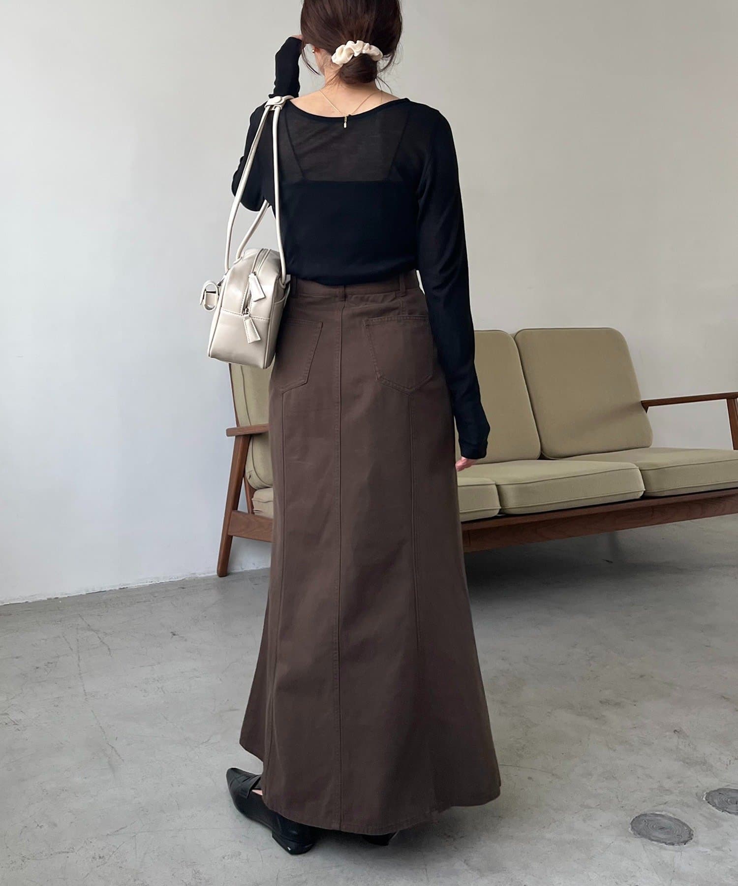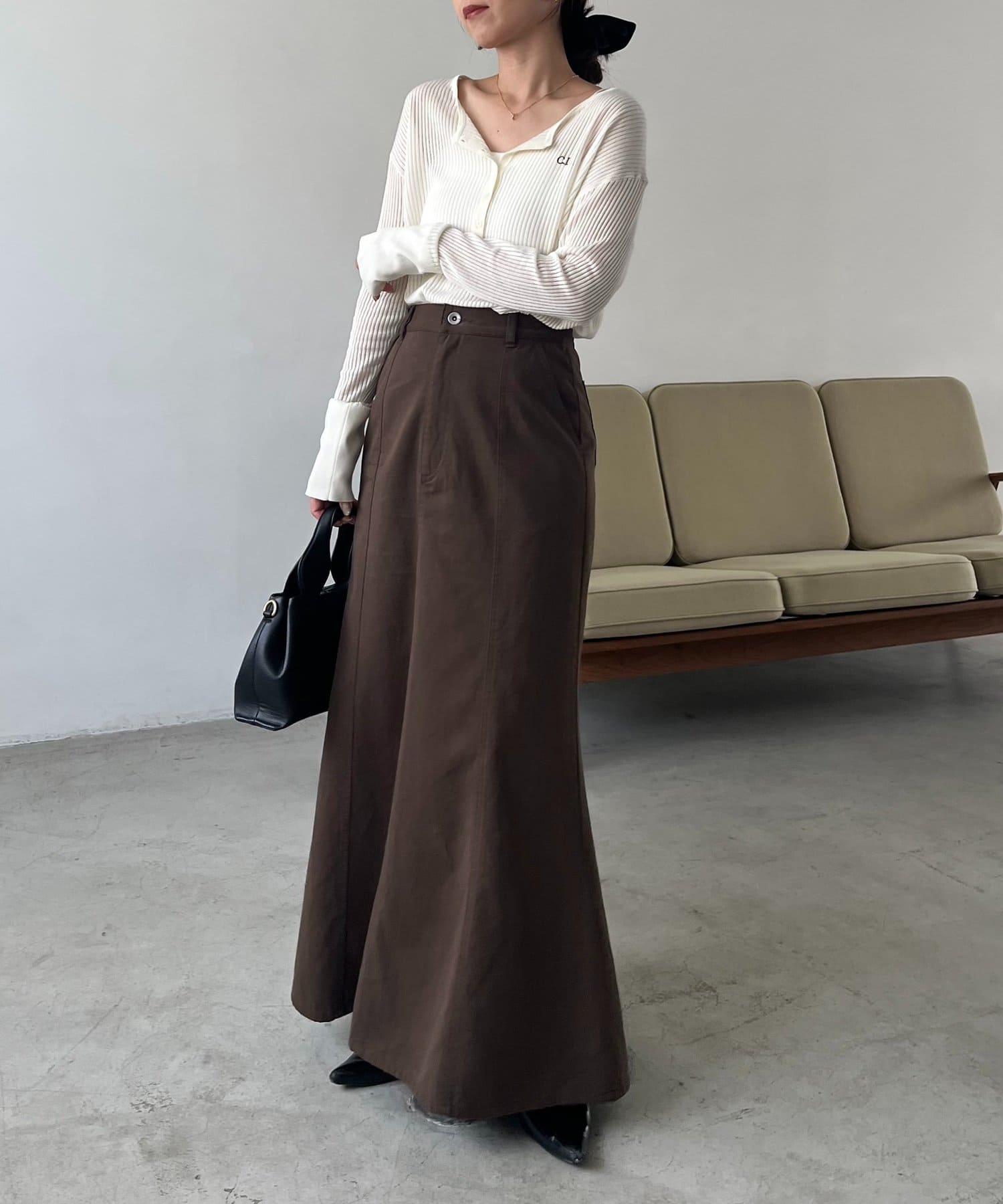 ・膝まではIラインで裾に向かって広がる女性らしいシルエット