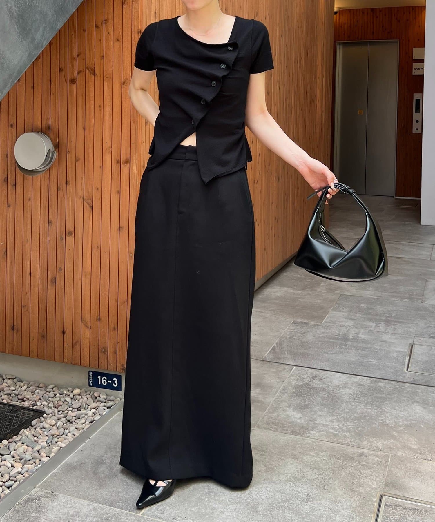 ・マキシスカート合わせの女性らしいスタイリングも◎