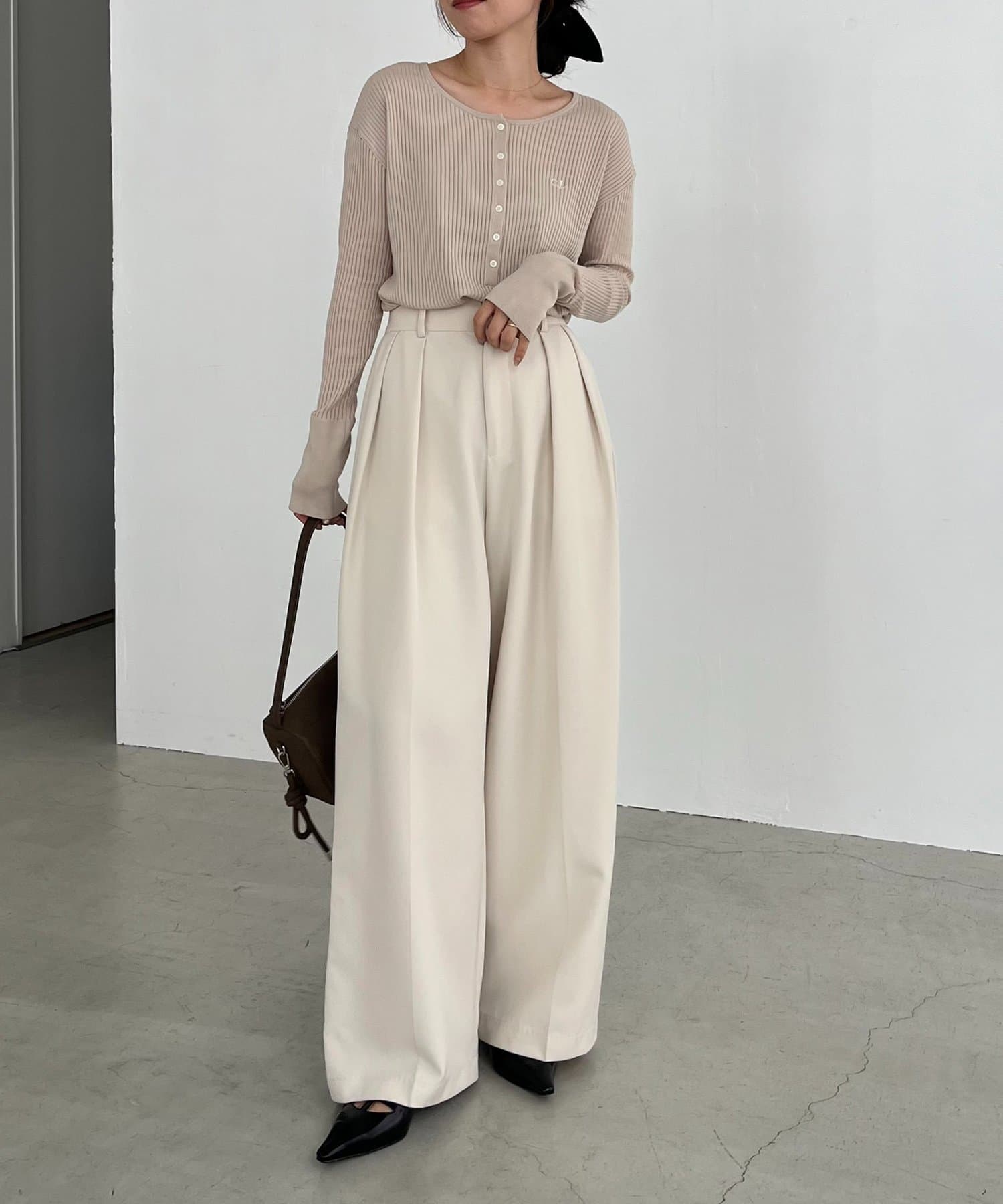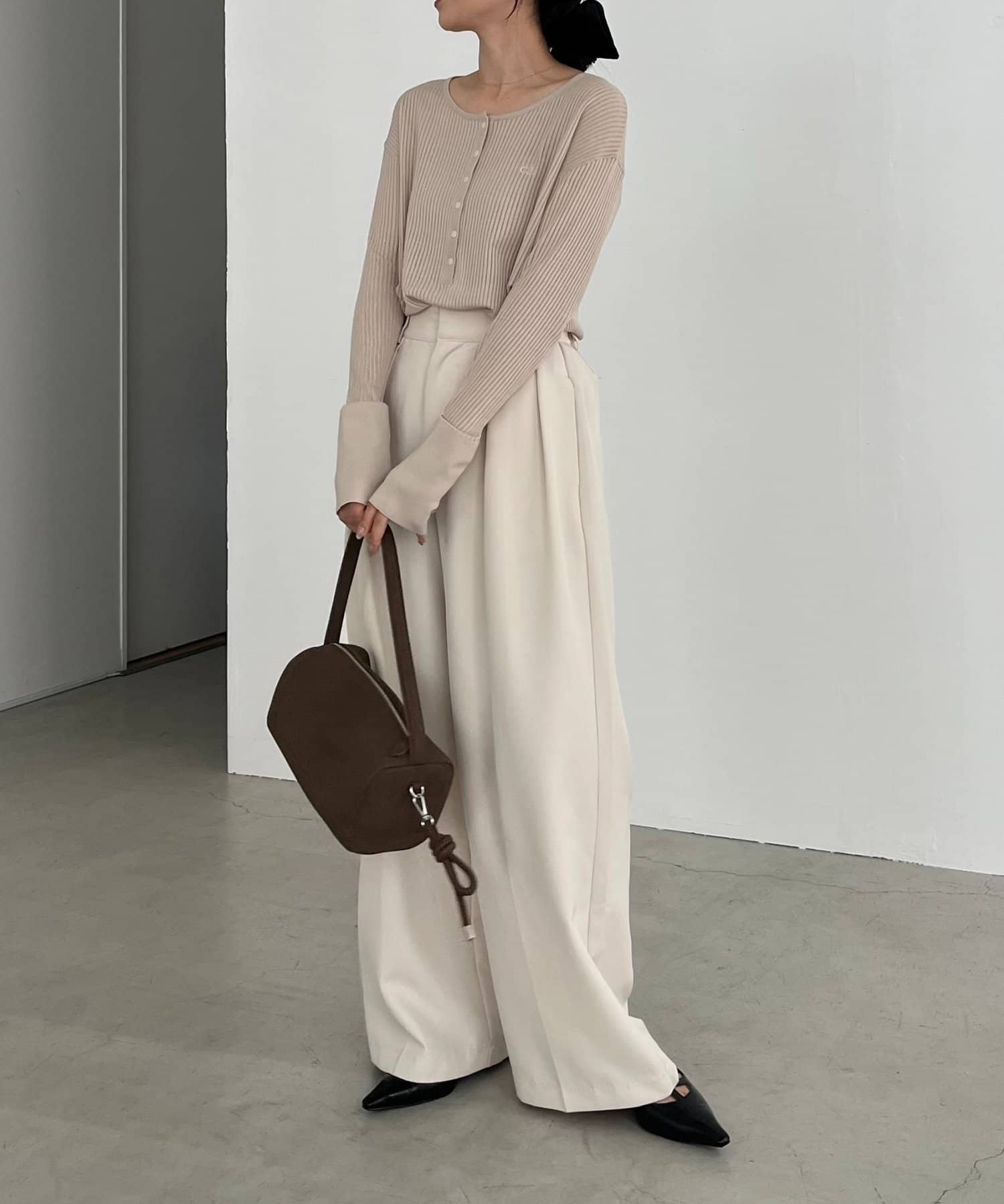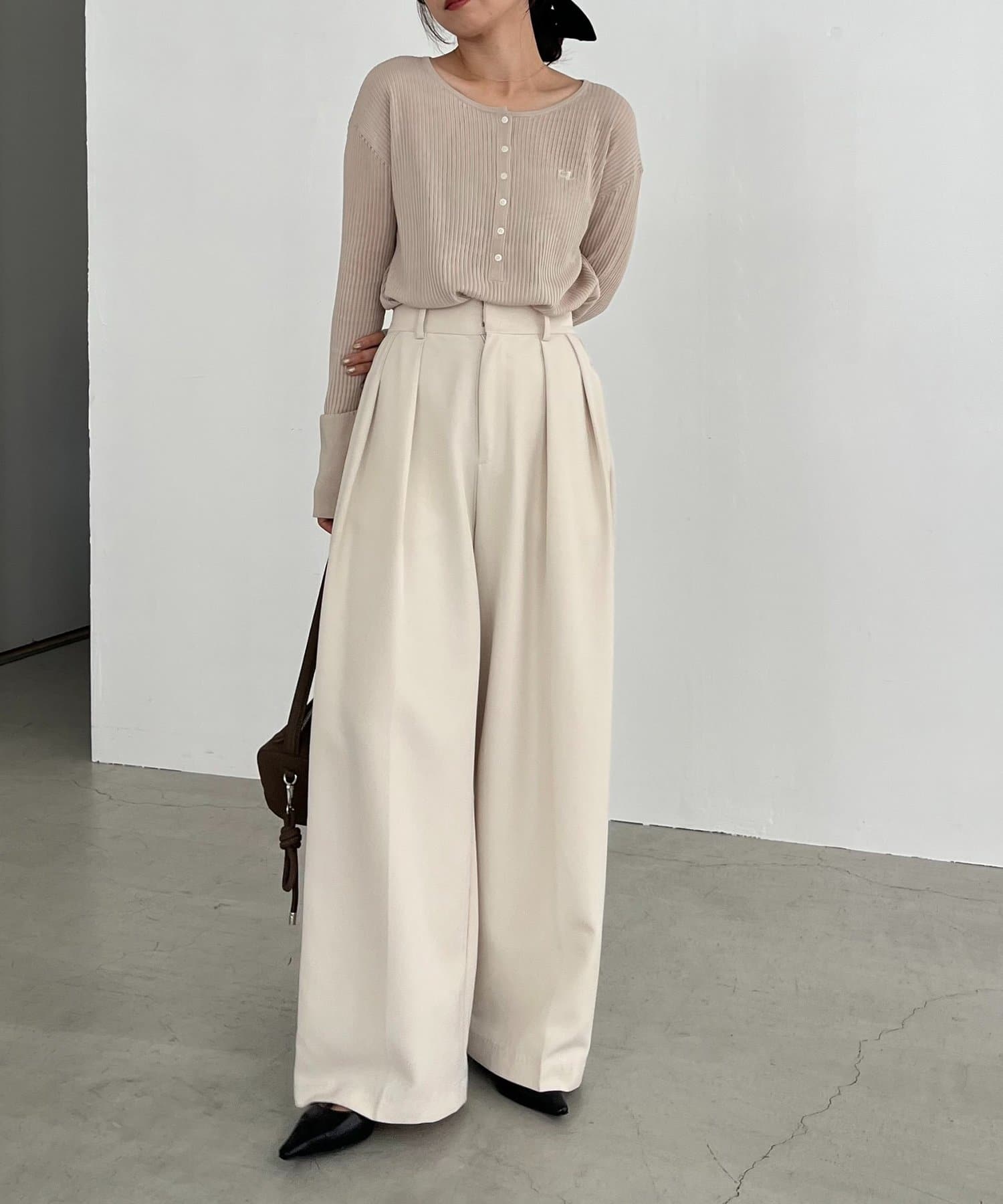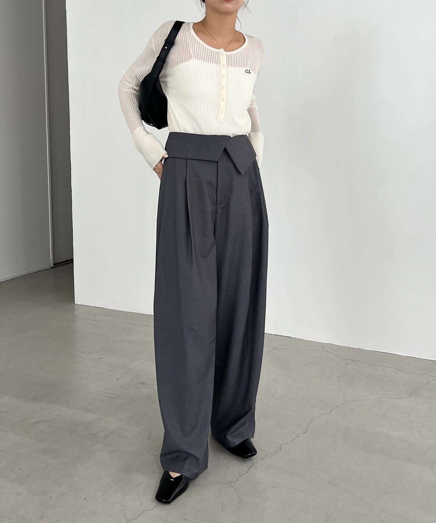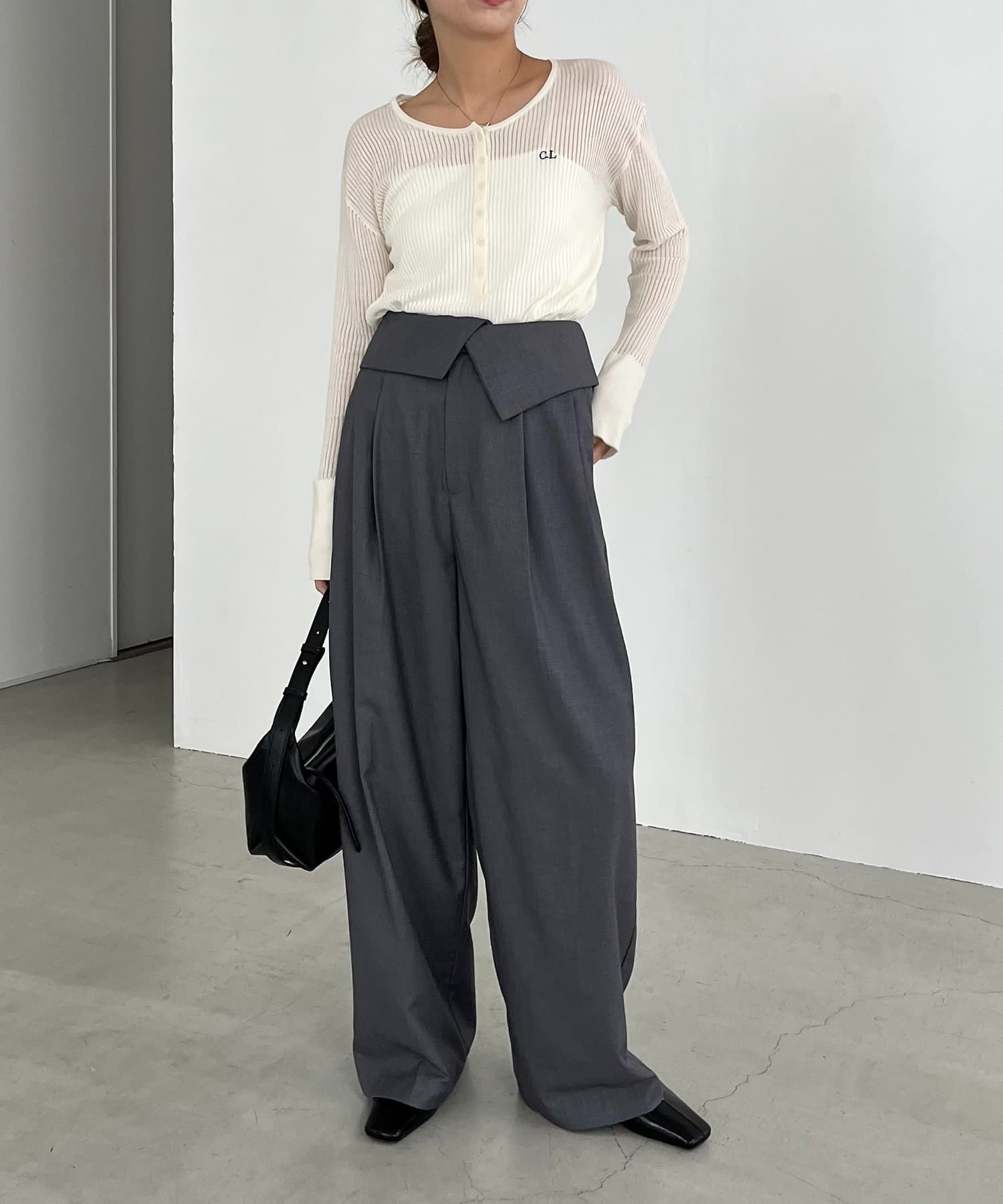 【オフホワイト着用アイテム①】ウエスト折返しワイドパンツ