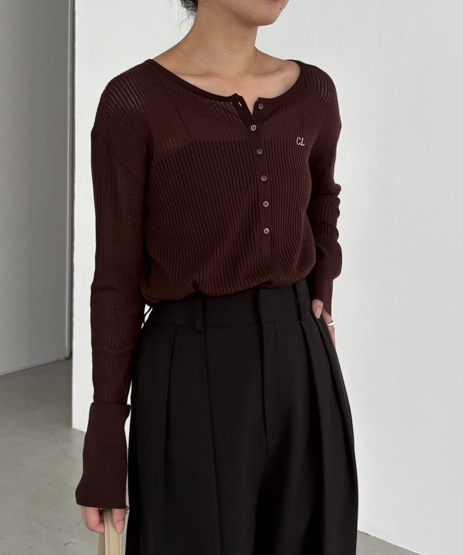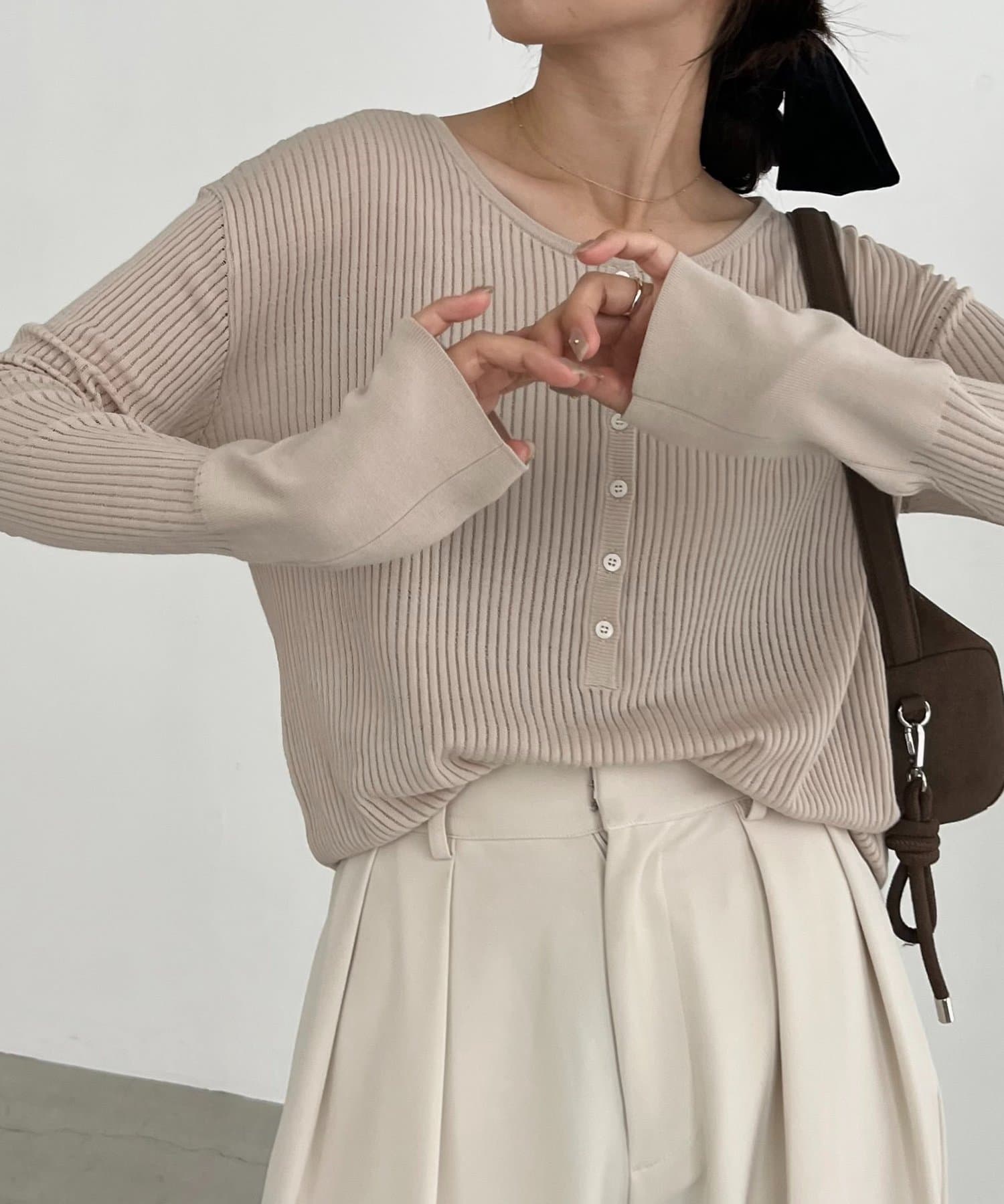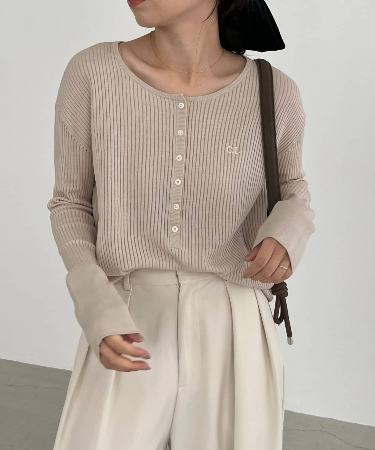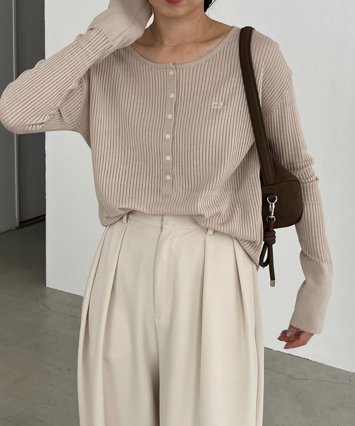 ・ネック周りは広めに取ってヘンリーのボタンを開けれるので顔周りがすっきり見え