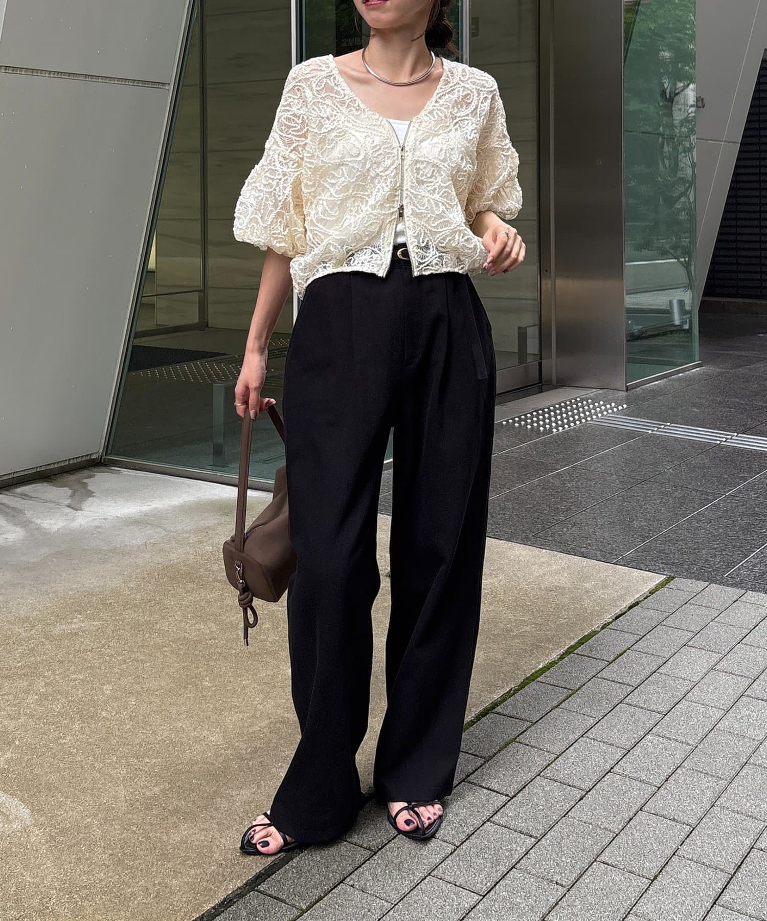 ※この製品に使用しているレースは、糸及び素材の特徴上、引っ掛け・引っ掛かりにより糸が飛び出したり、ひきつれが生じやすい性質を持っております。