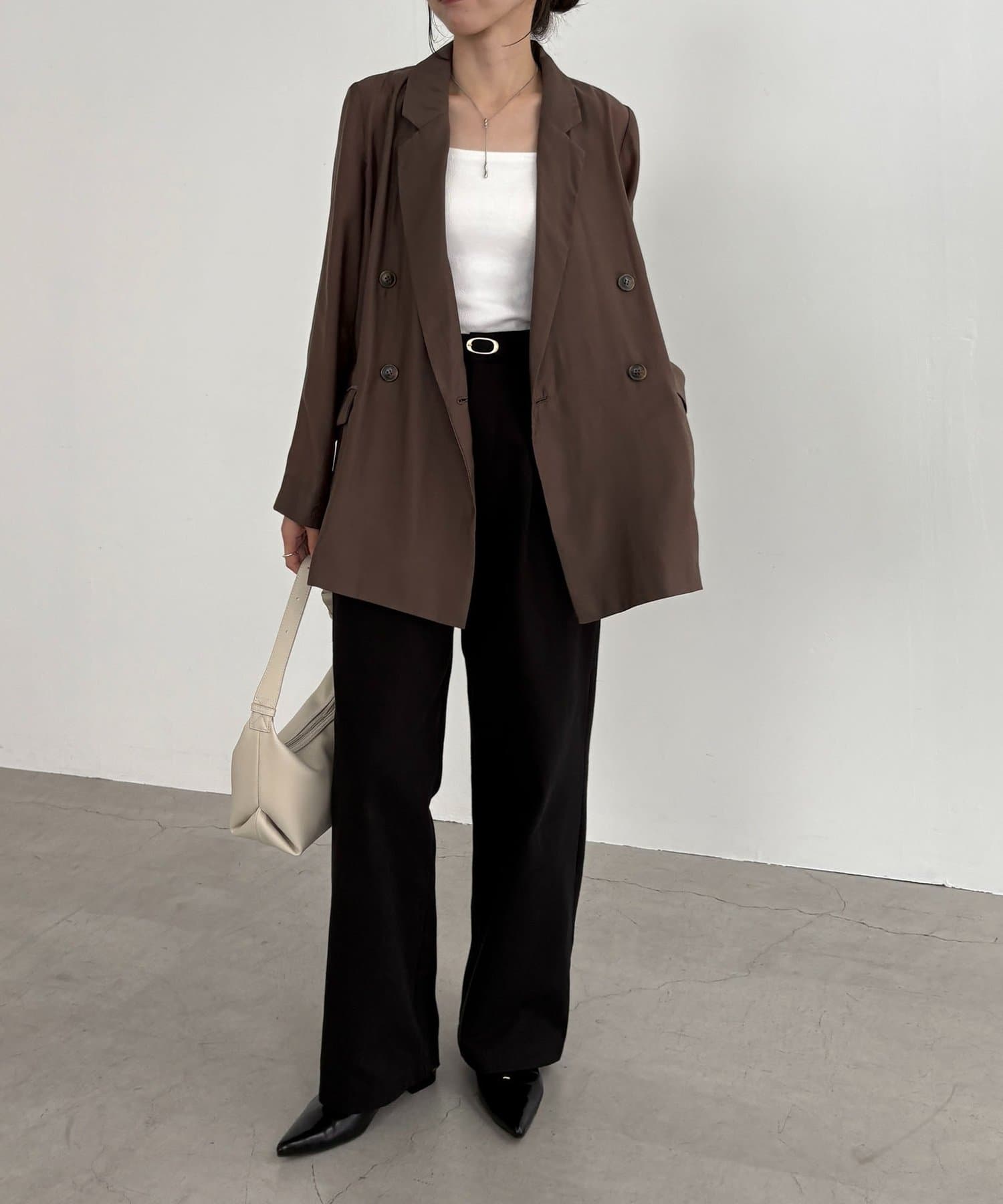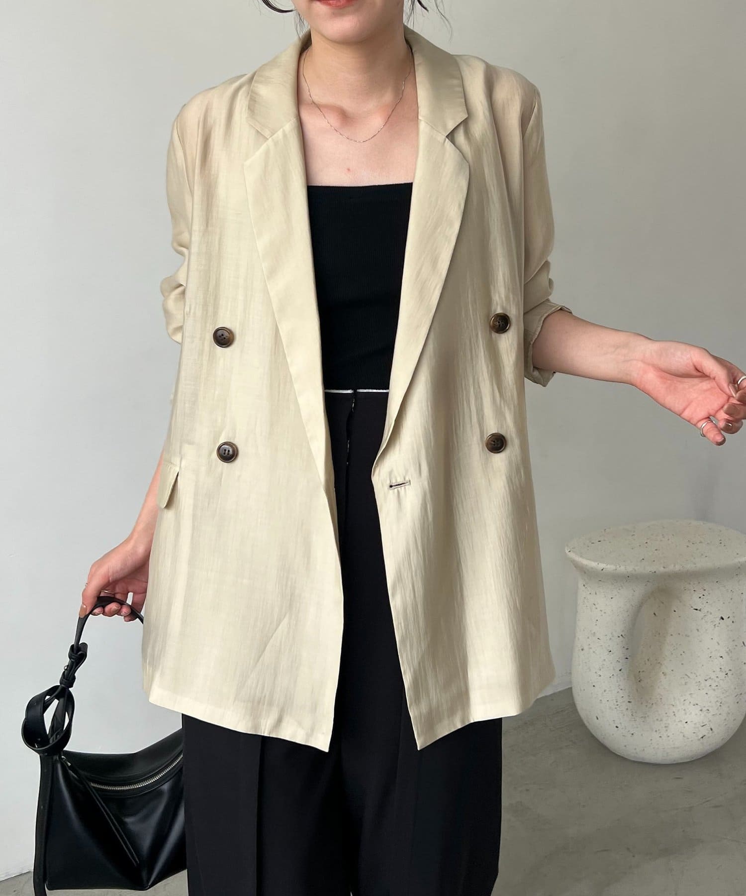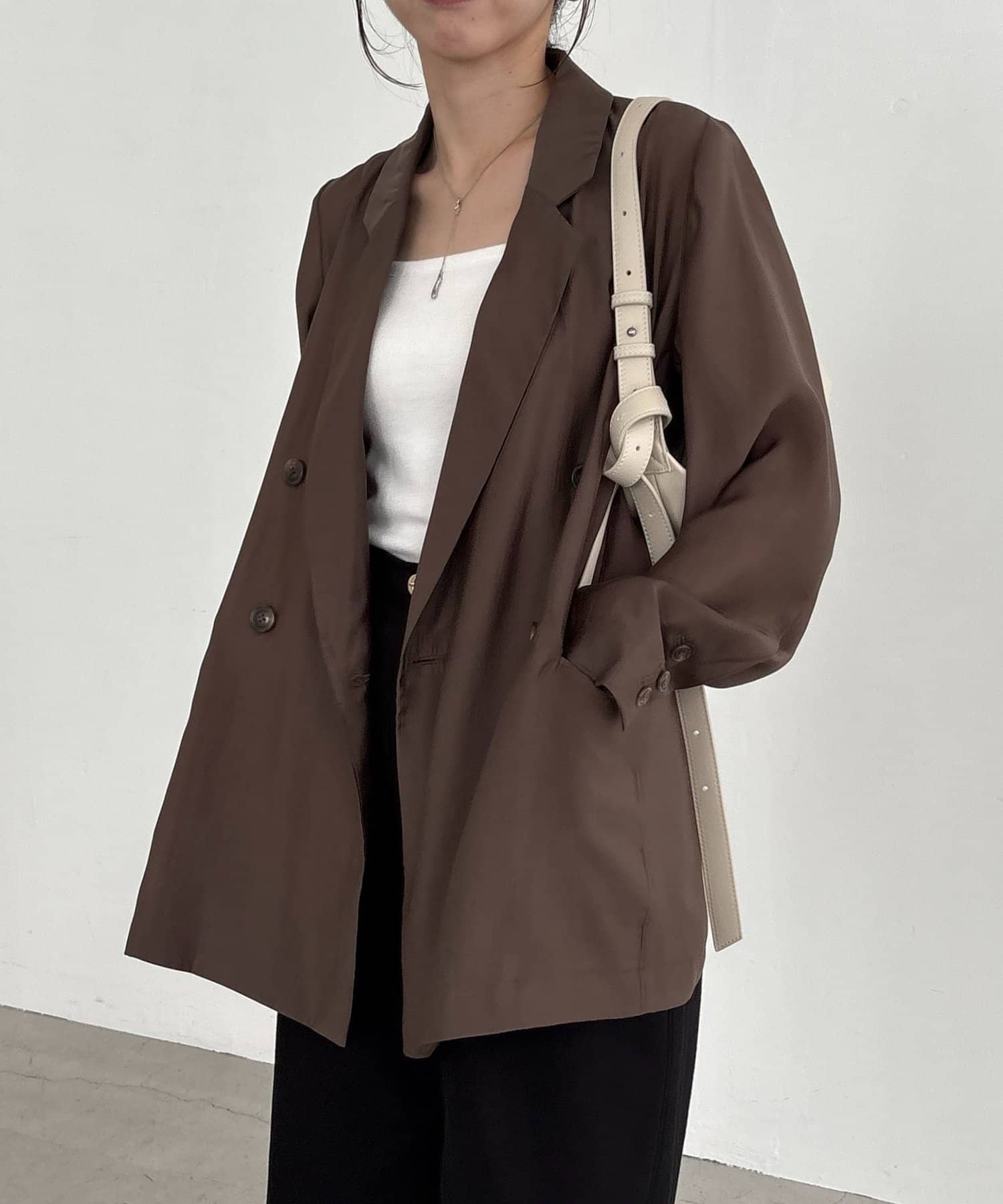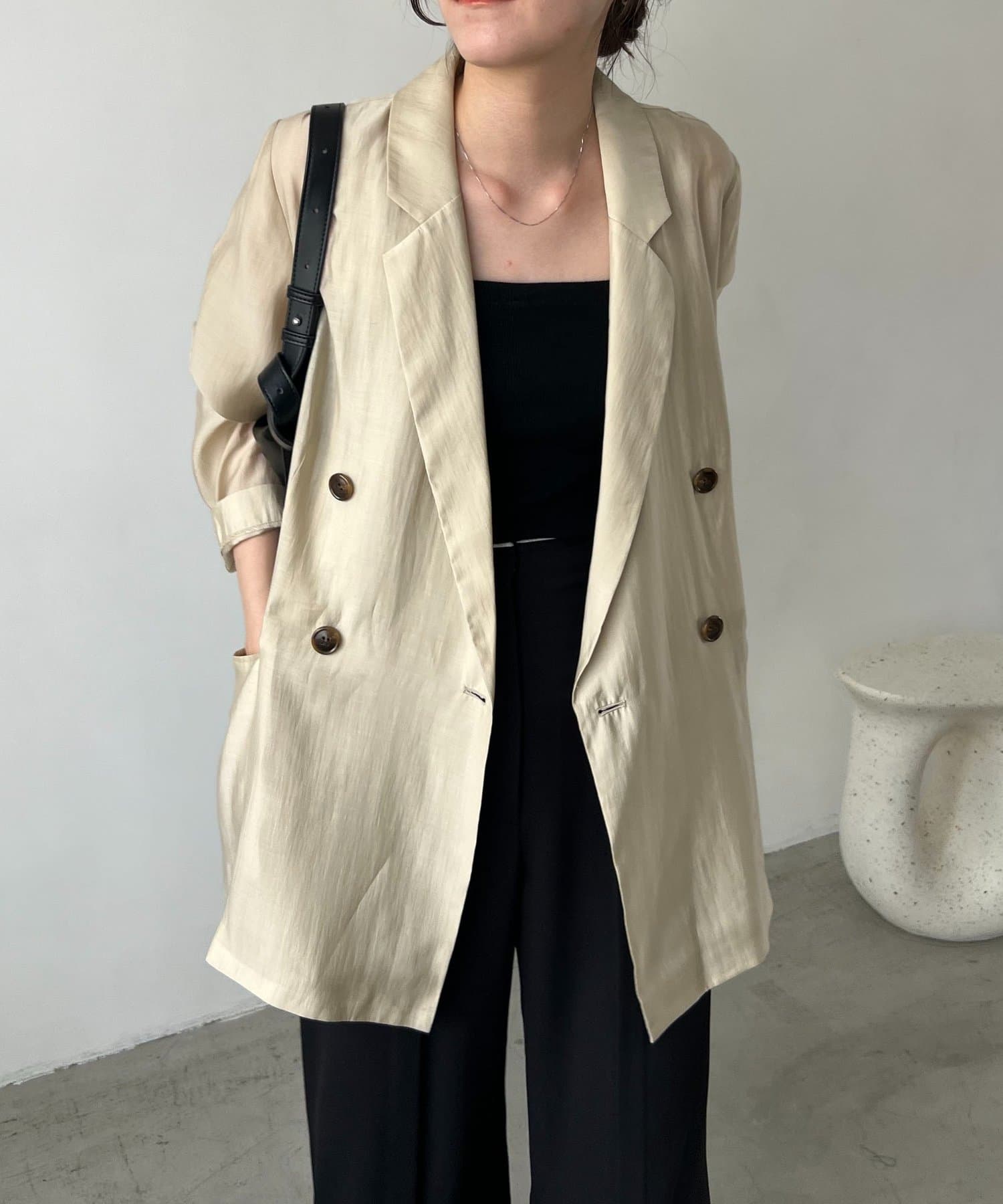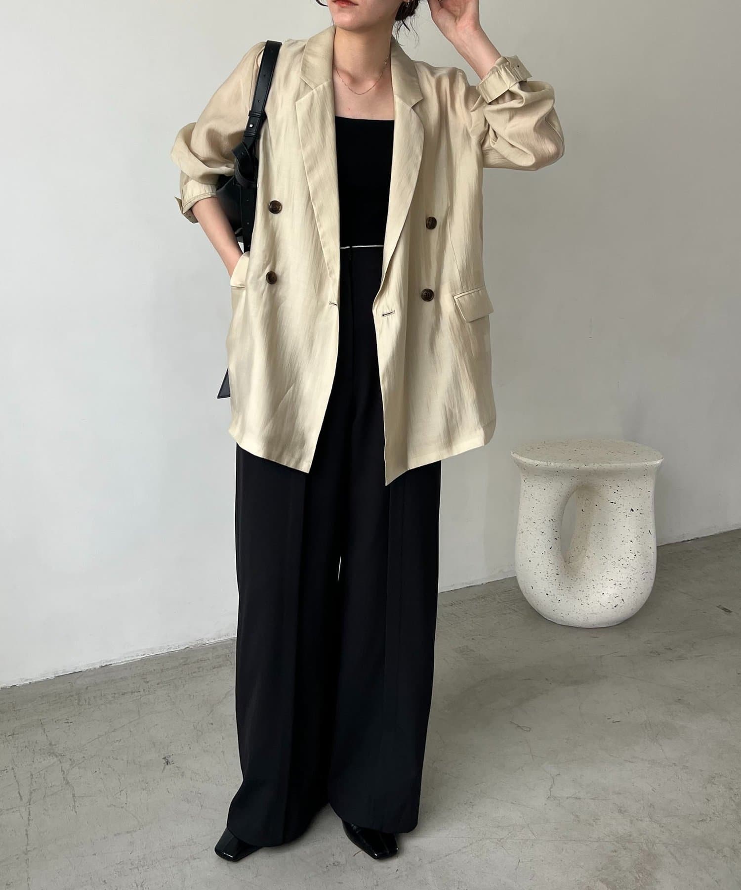・ダブルボタンでゆとりがありこなれた雰囲気に仕上がる1枚