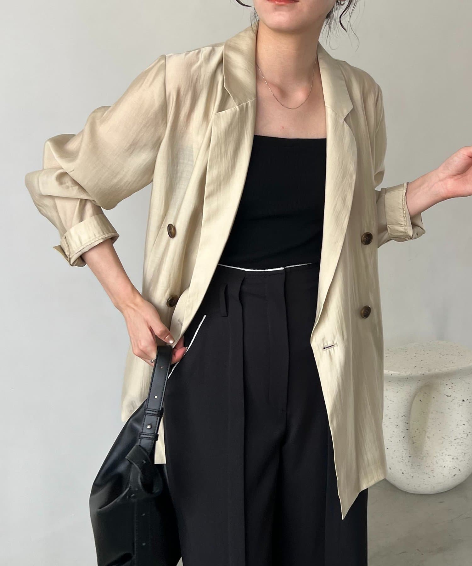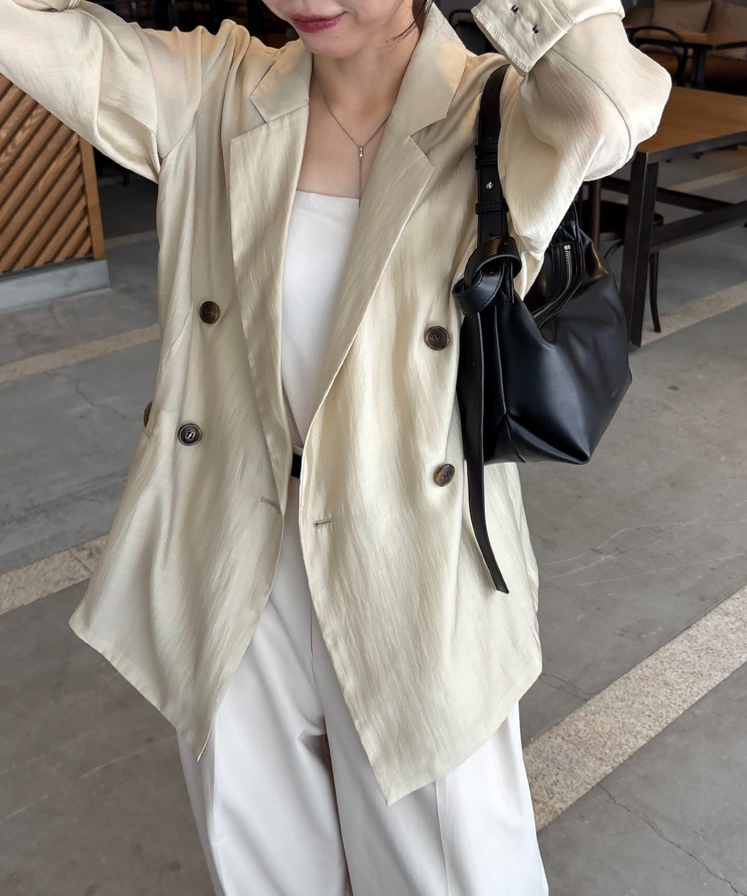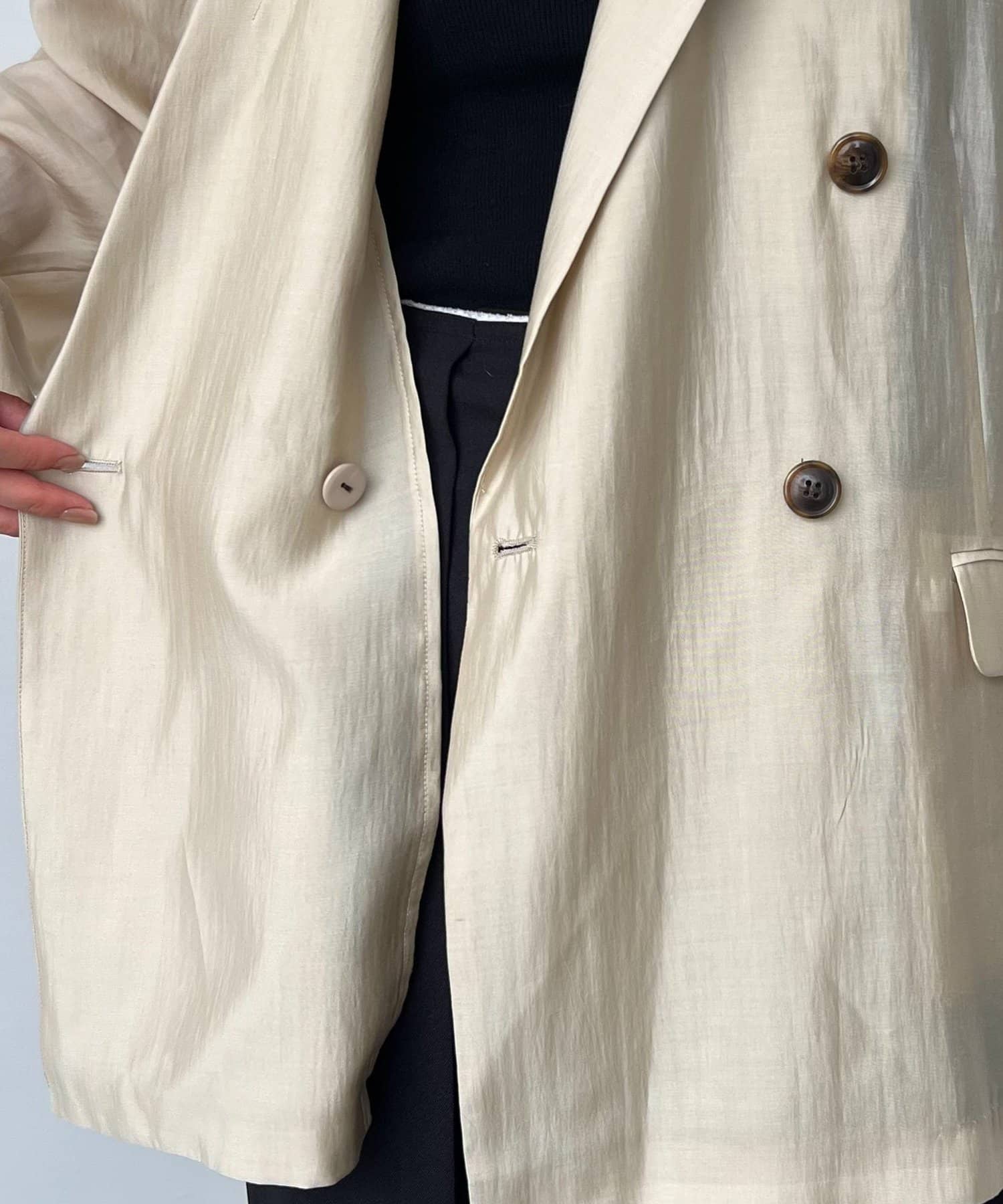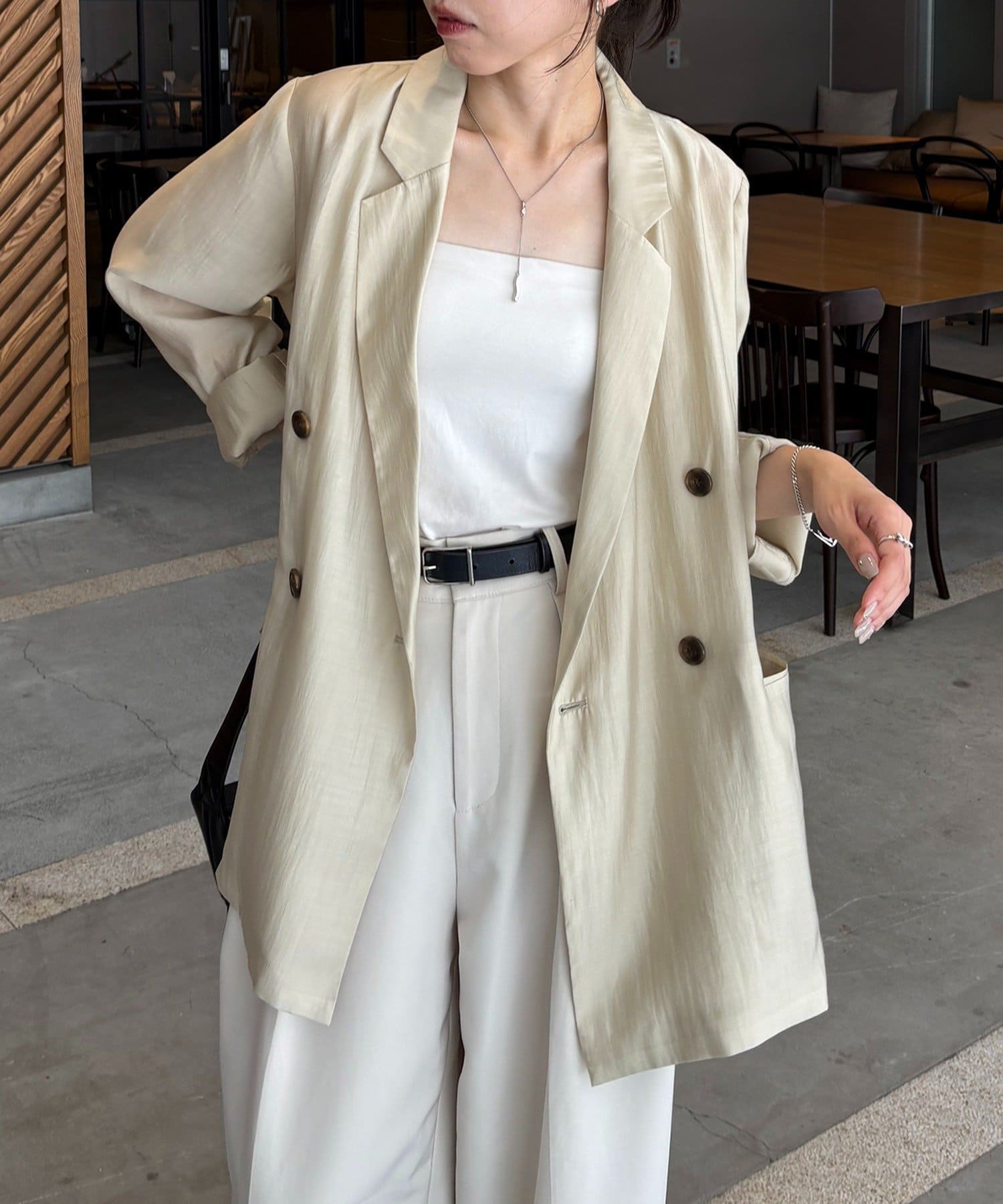 ・ダブルボタンでゆとりがありこなれた雰囲気に仕上がる1枚