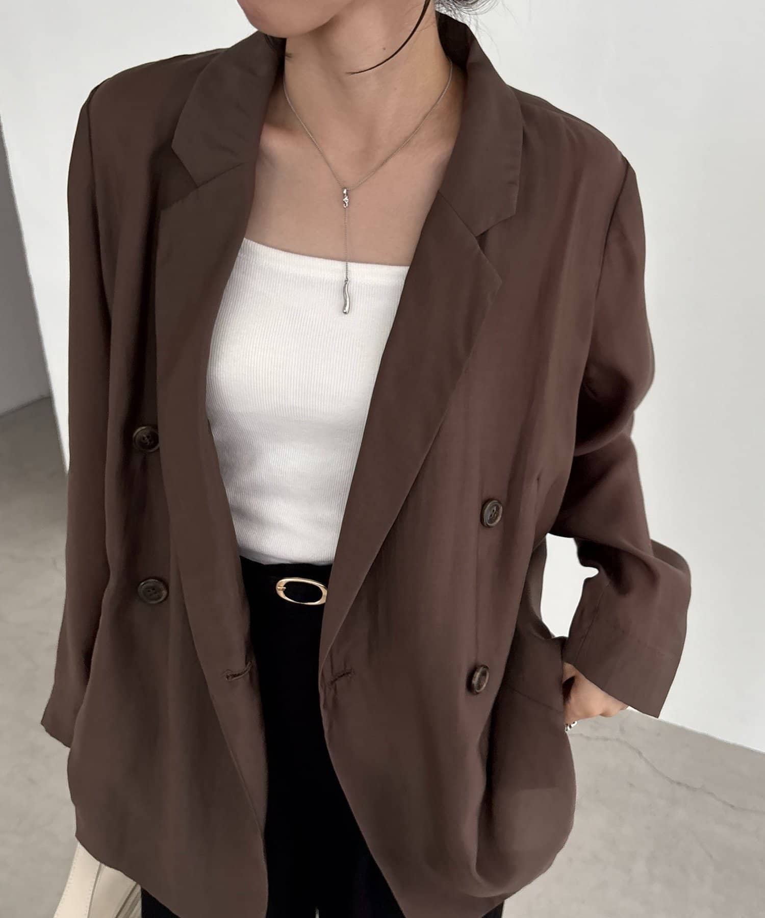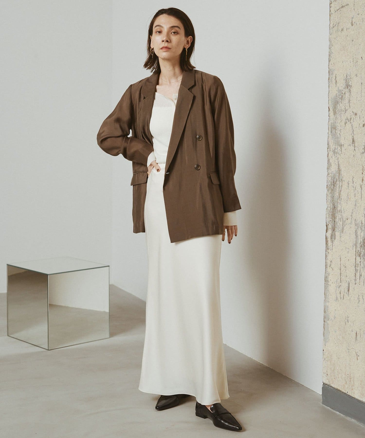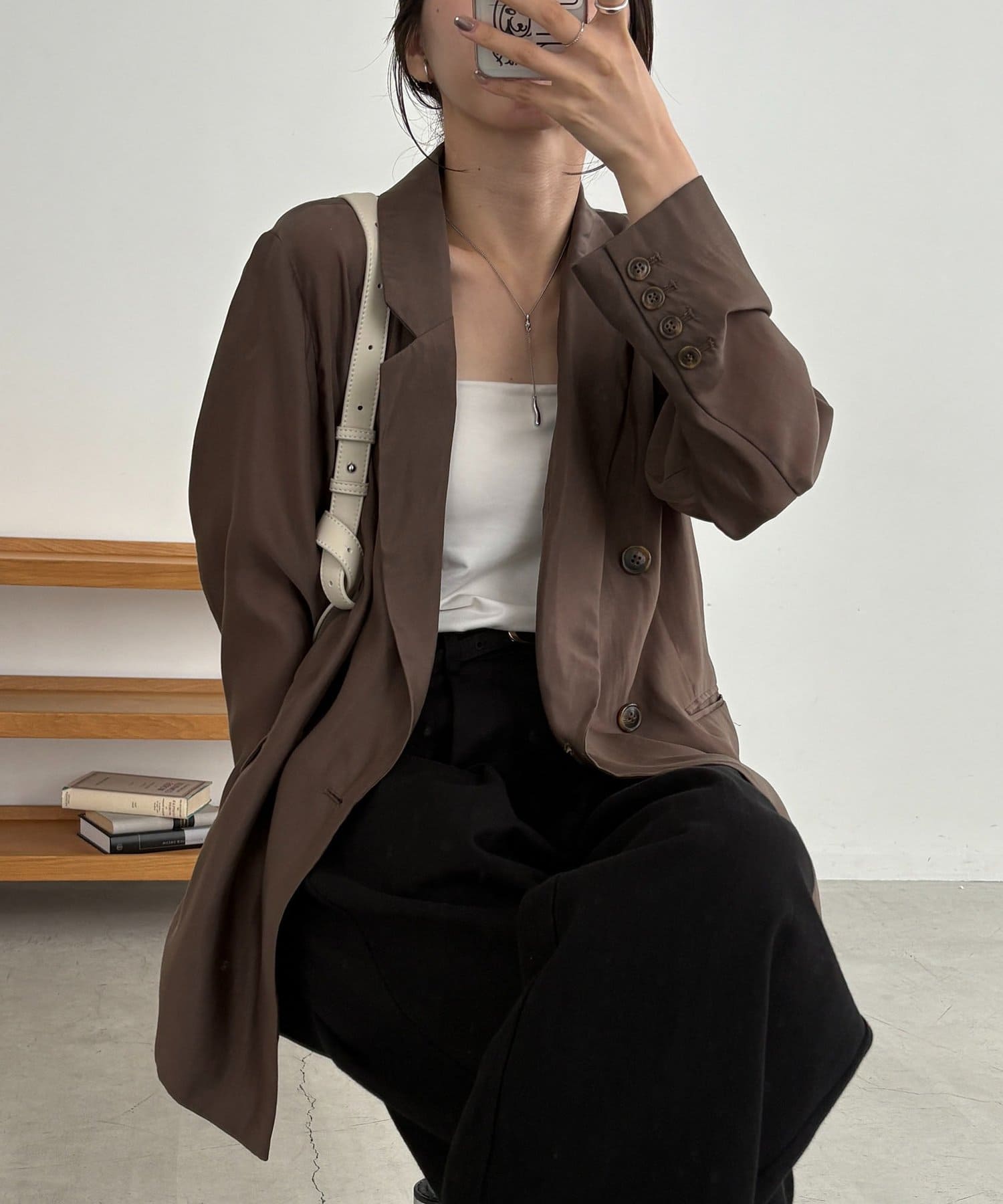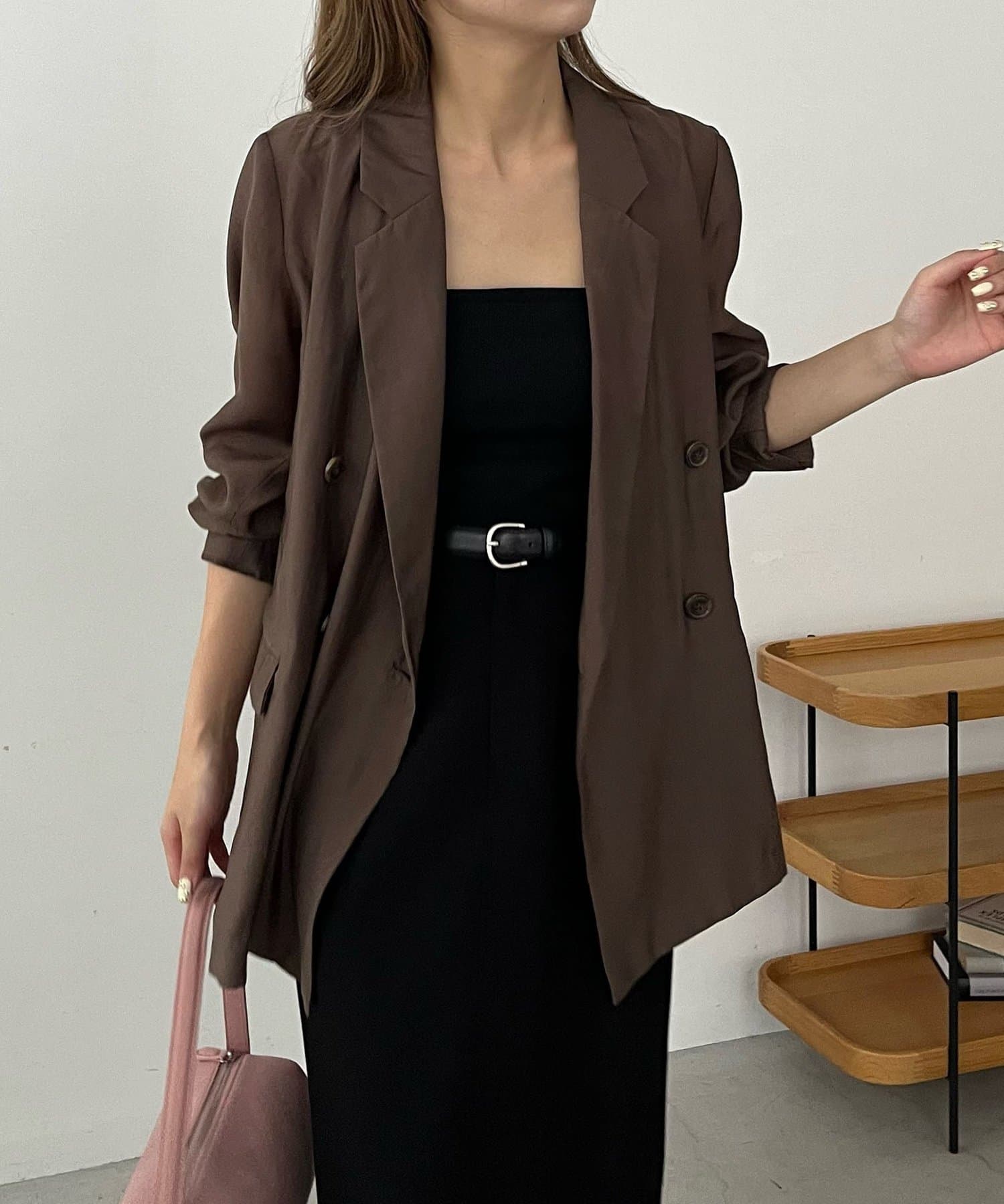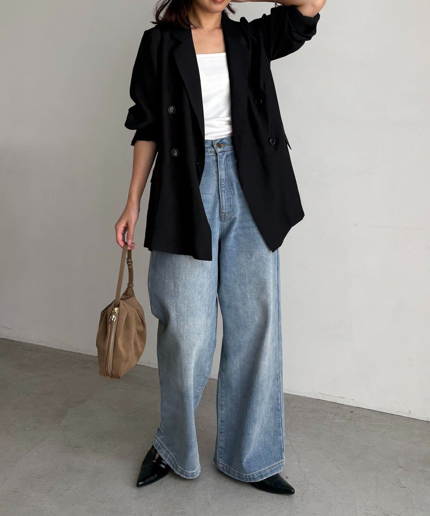 ・ダブルボタンでゆとりがありこなれた雰囲気に仕上がる1枚