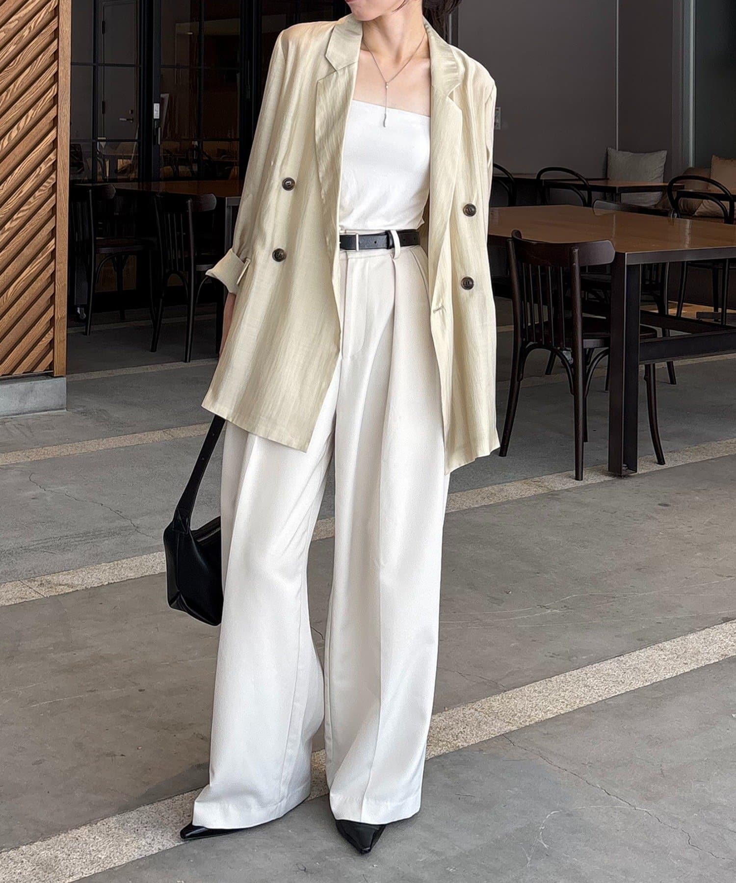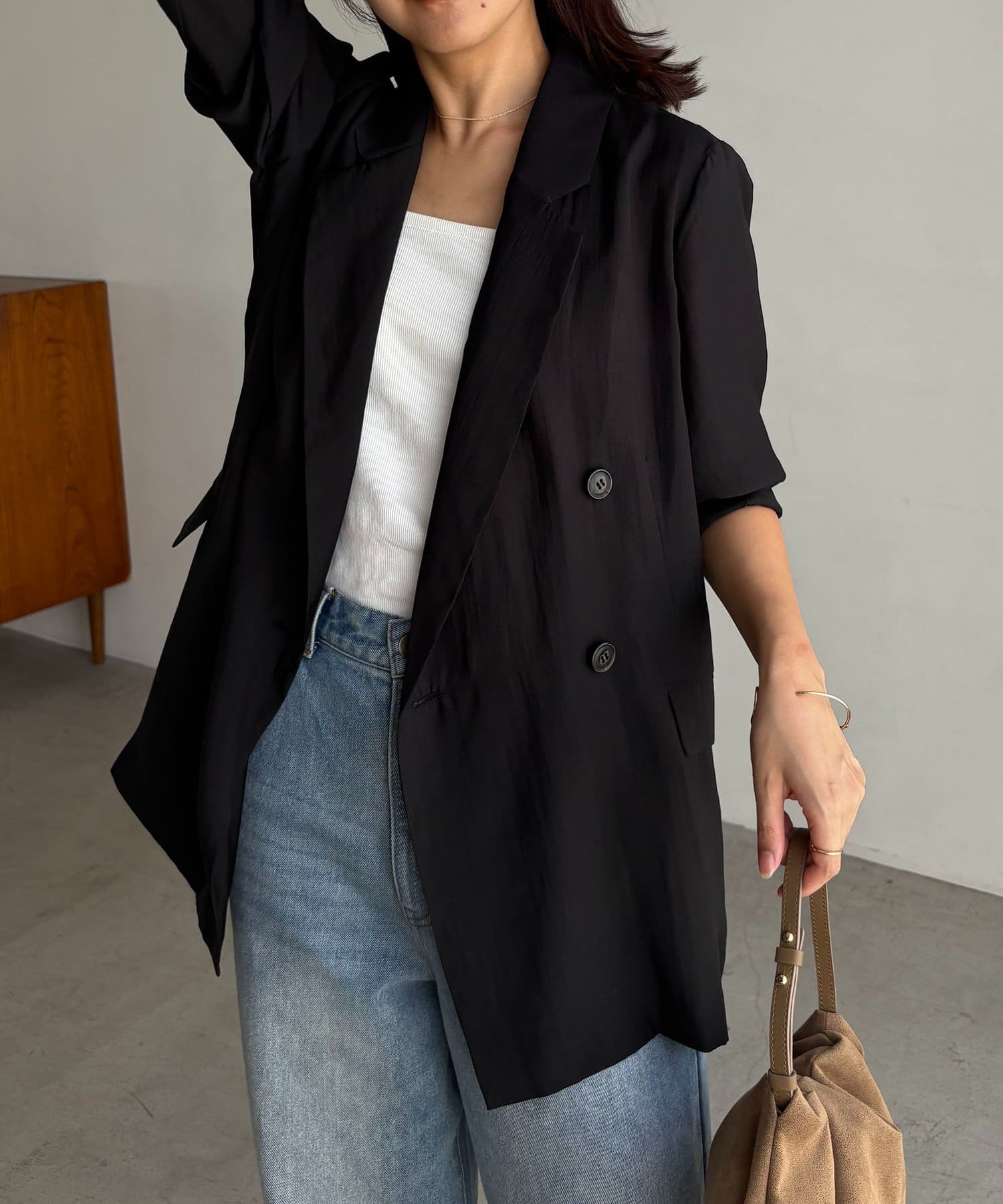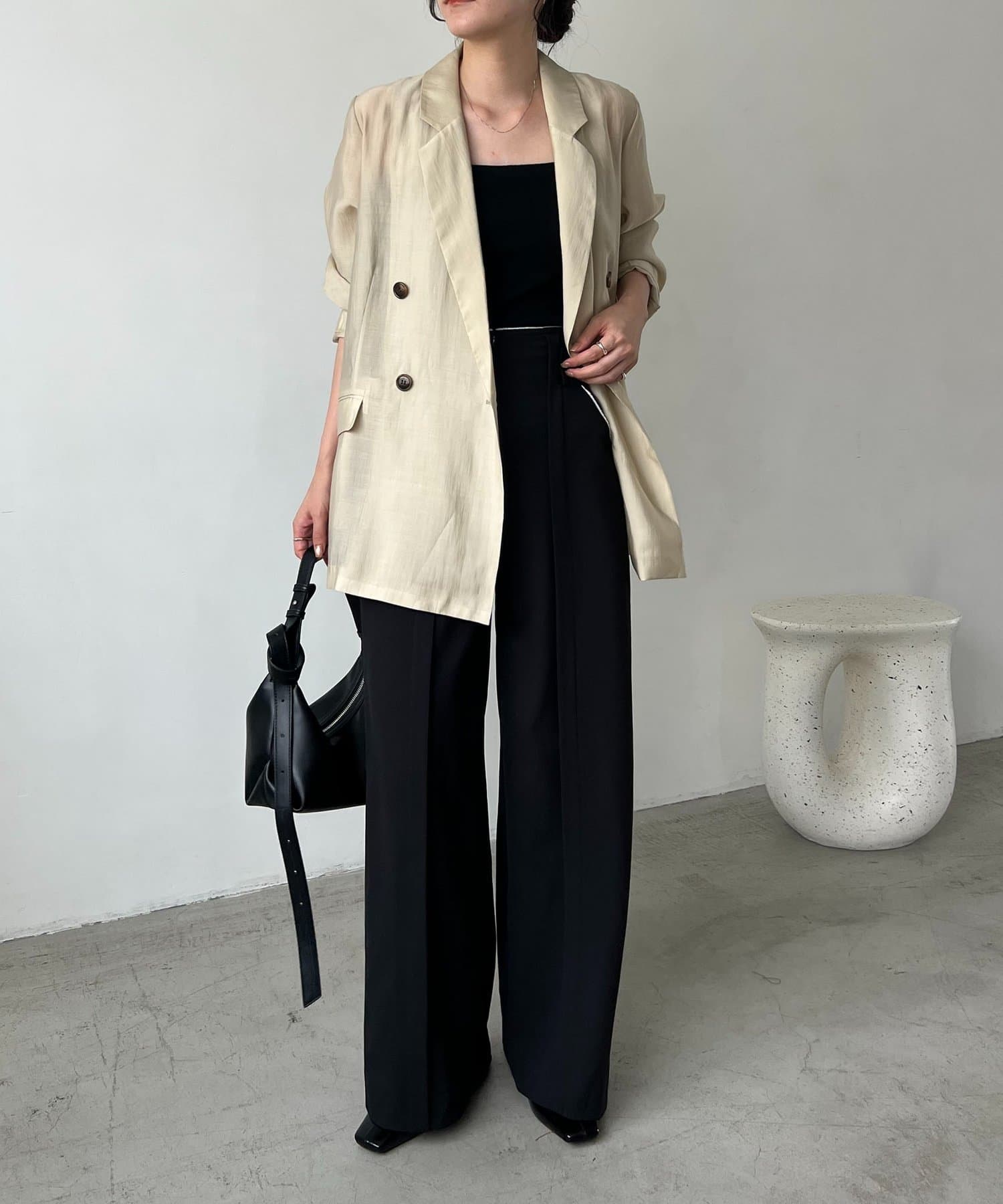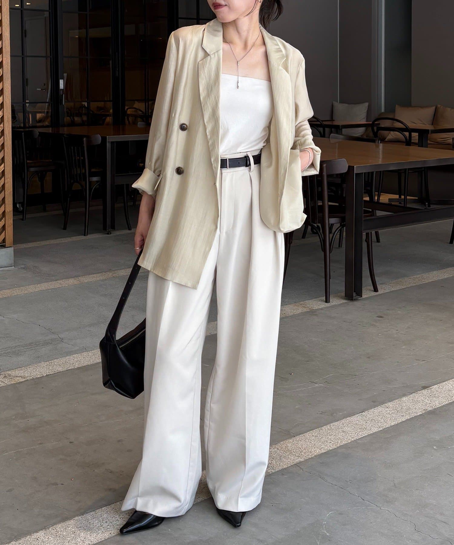 ・ダブルボタンでゆとりがありこなれた雰囲気に仕上がる1枚